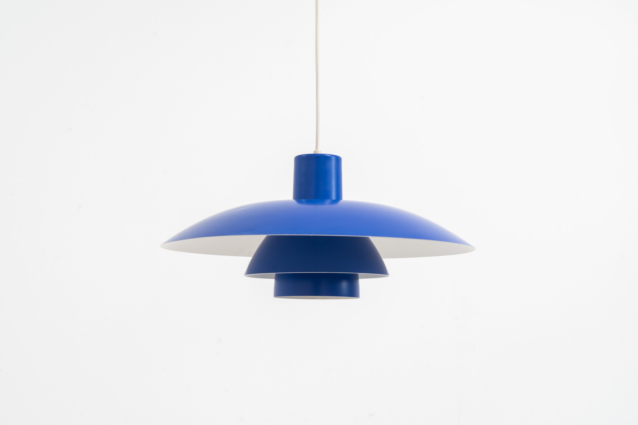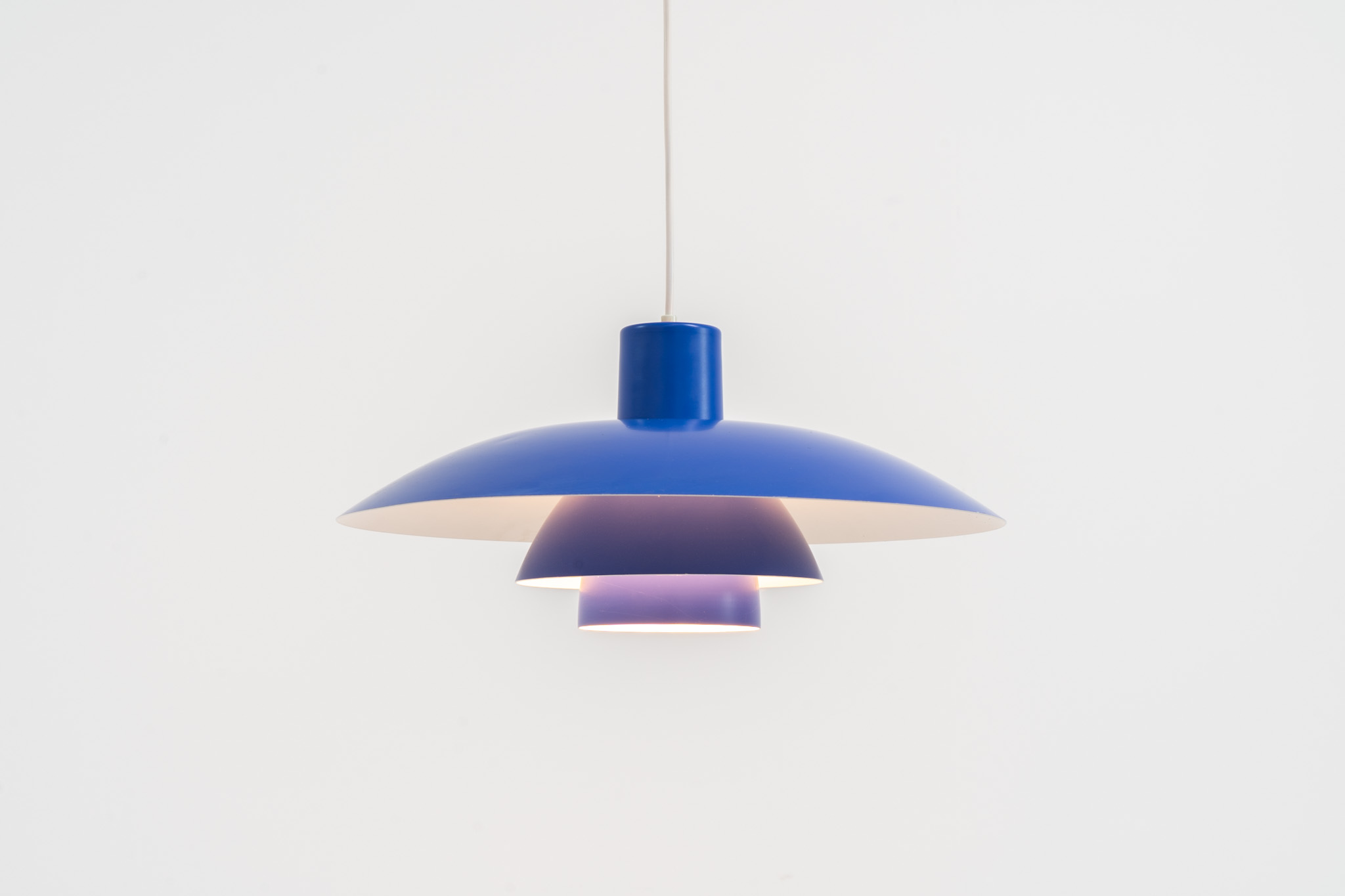 Blue PH4/3 pendant light designed by Poul Henningsen for Louis Poulsen (Denmark, 1960s).