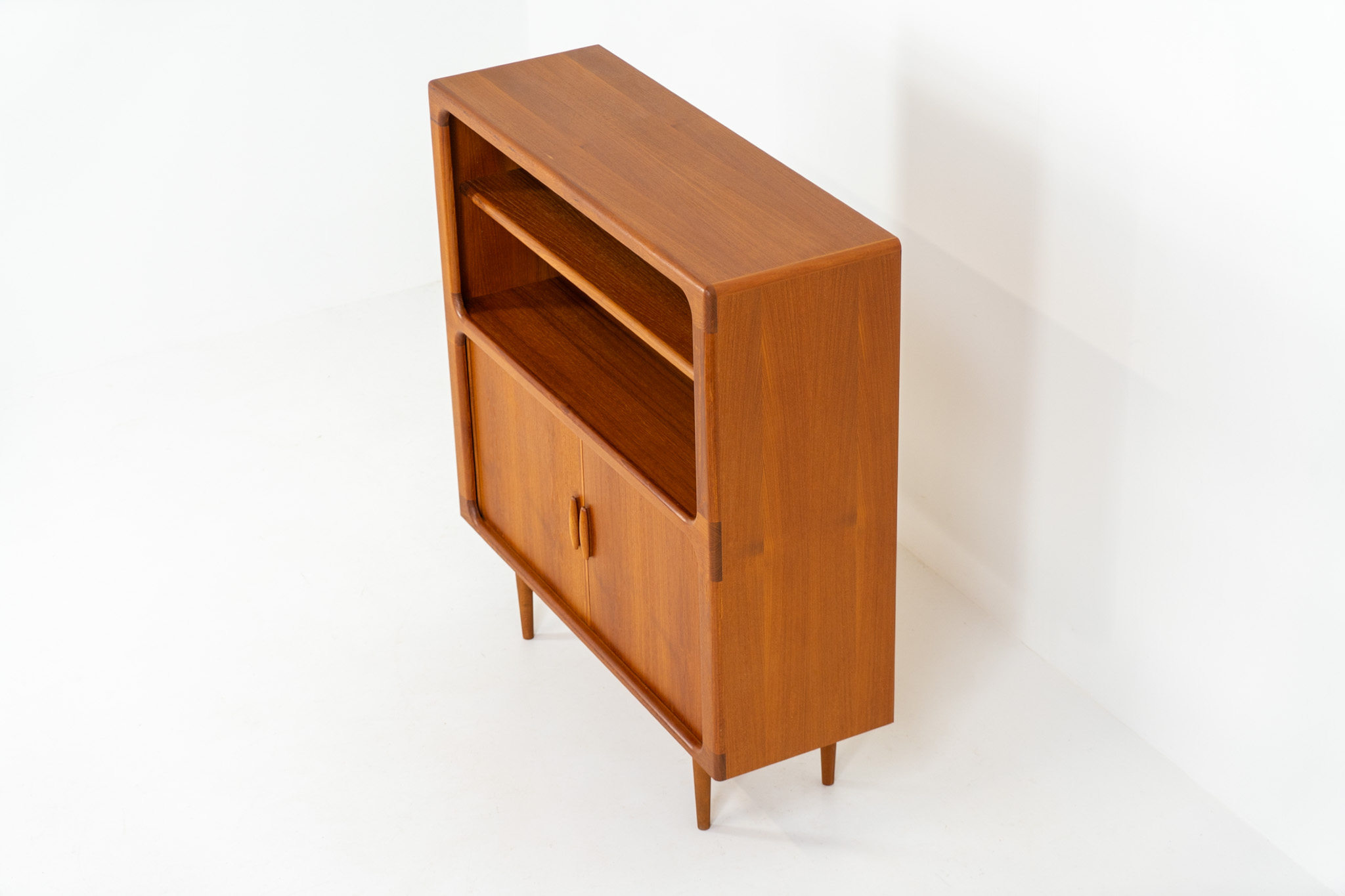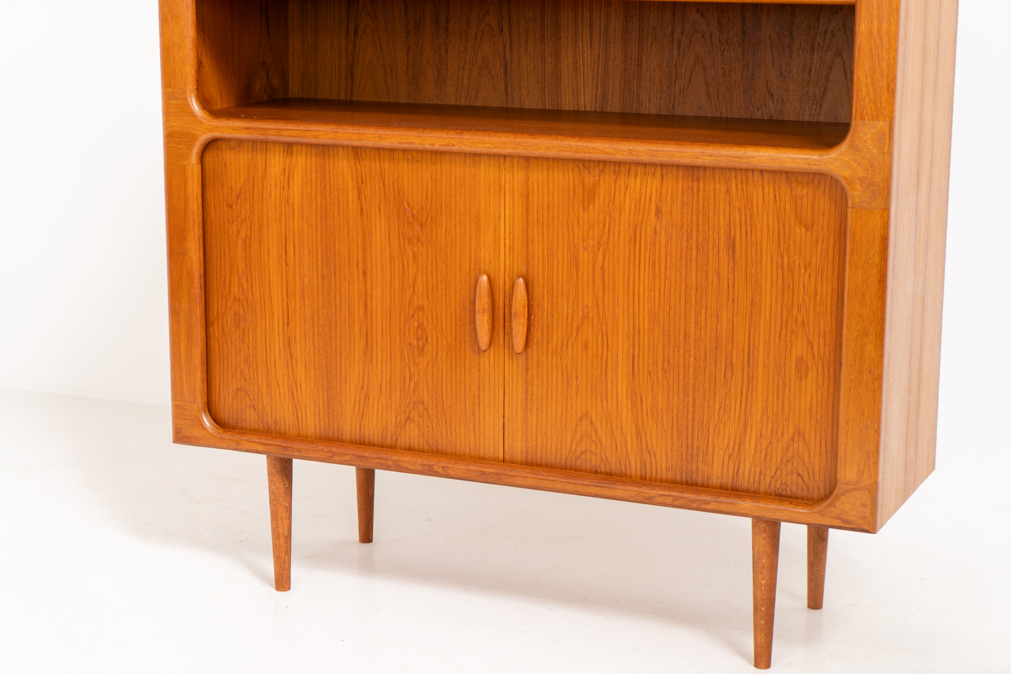 Beautiful bookcase in teak by Svend Dyrlund with tambour doors (Denmark, 1960s).