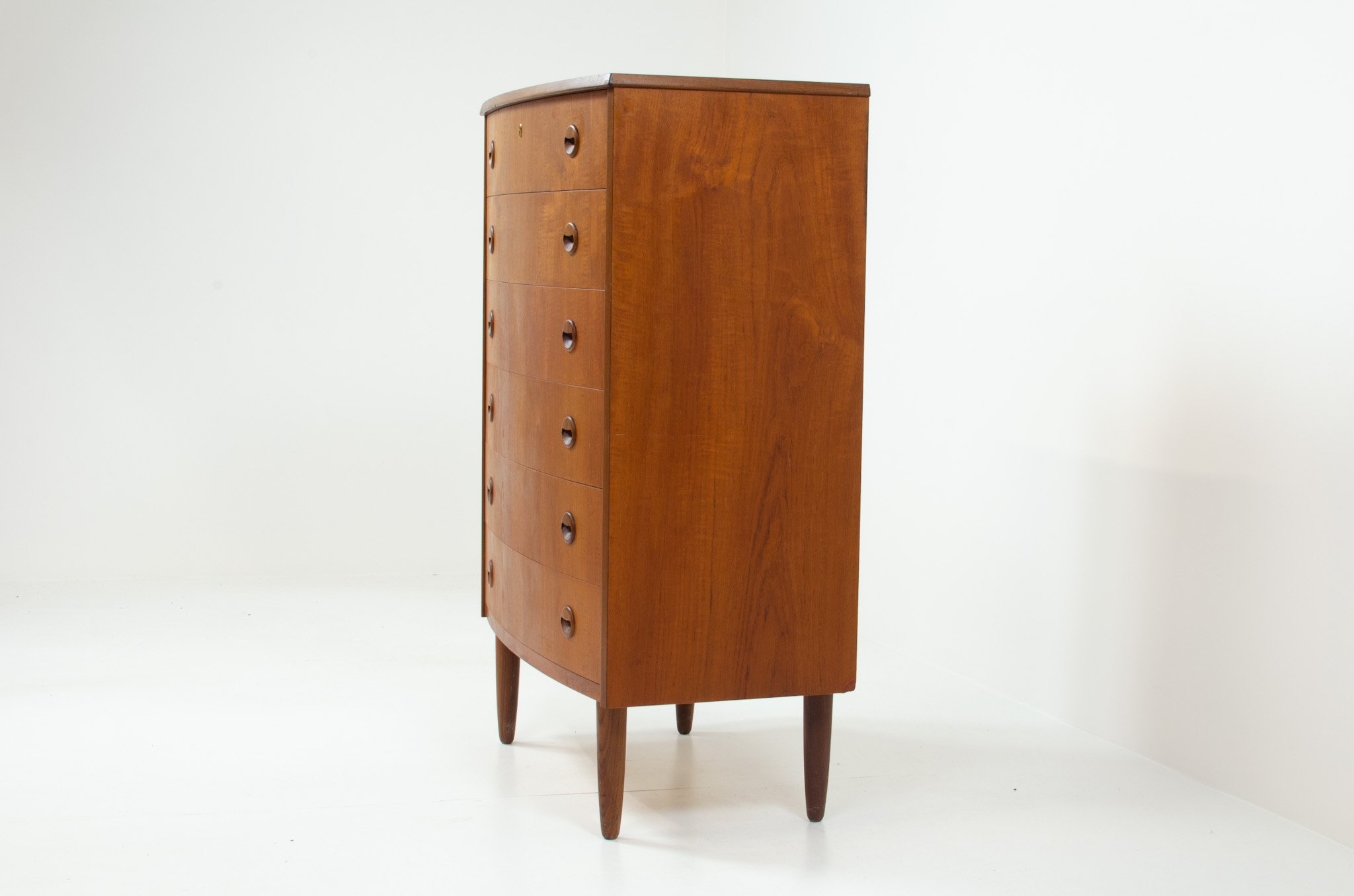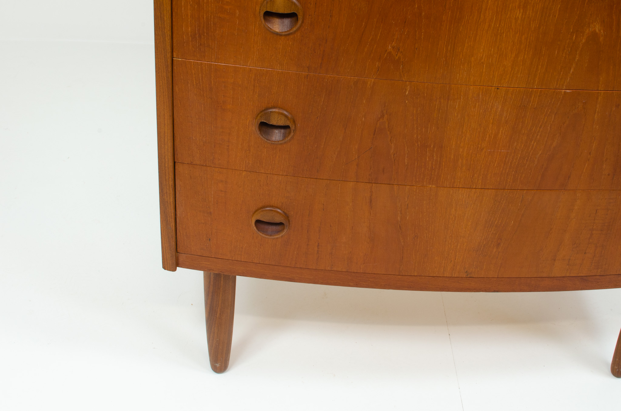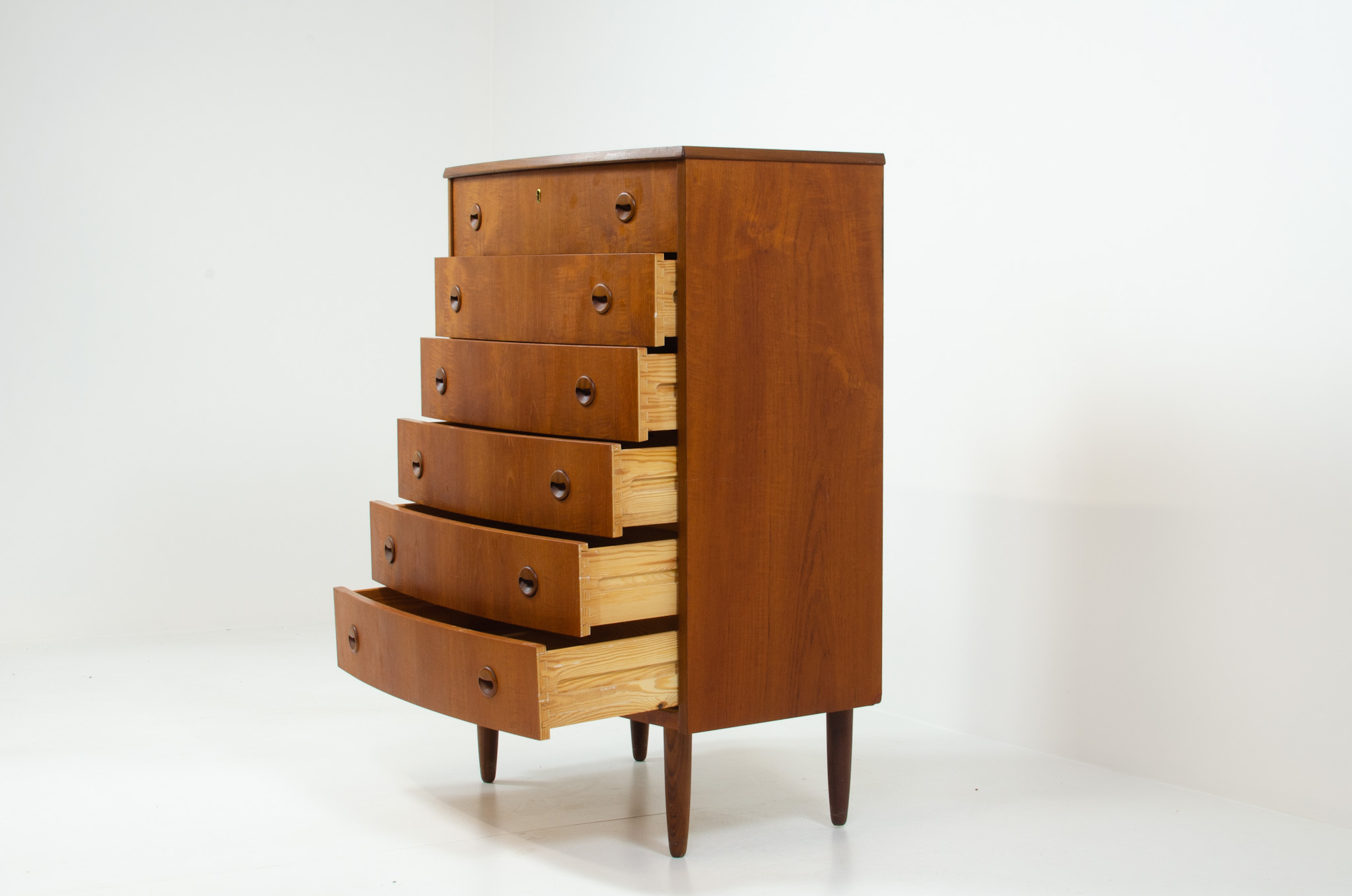 Stunning bow front tallboy dresser by Kai Kristiansen (Denmark, 1960s).