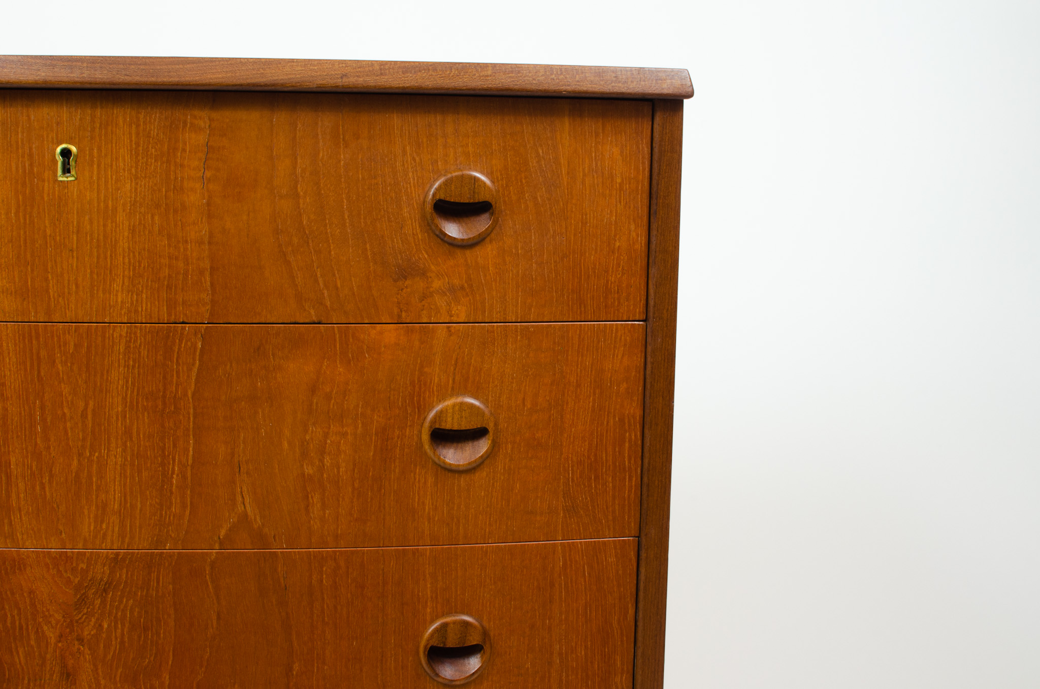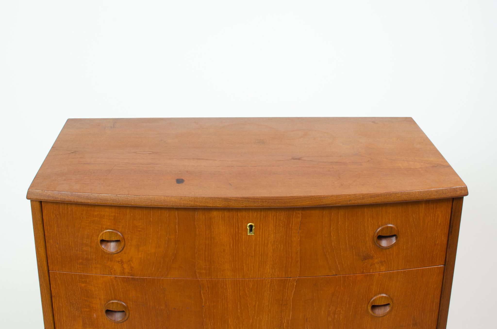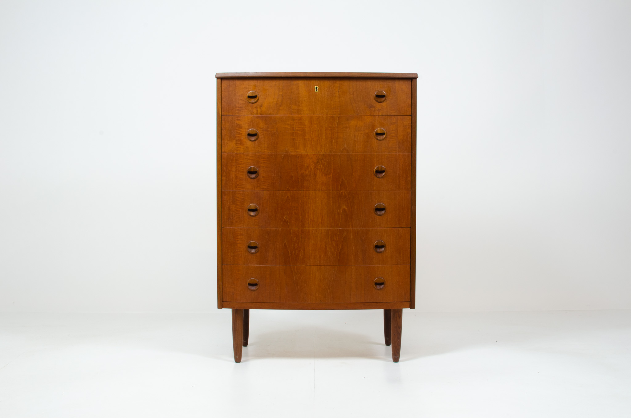 Stunning bow front tallboy dresser by Kai Kristiansen (Denmark, 1960s).