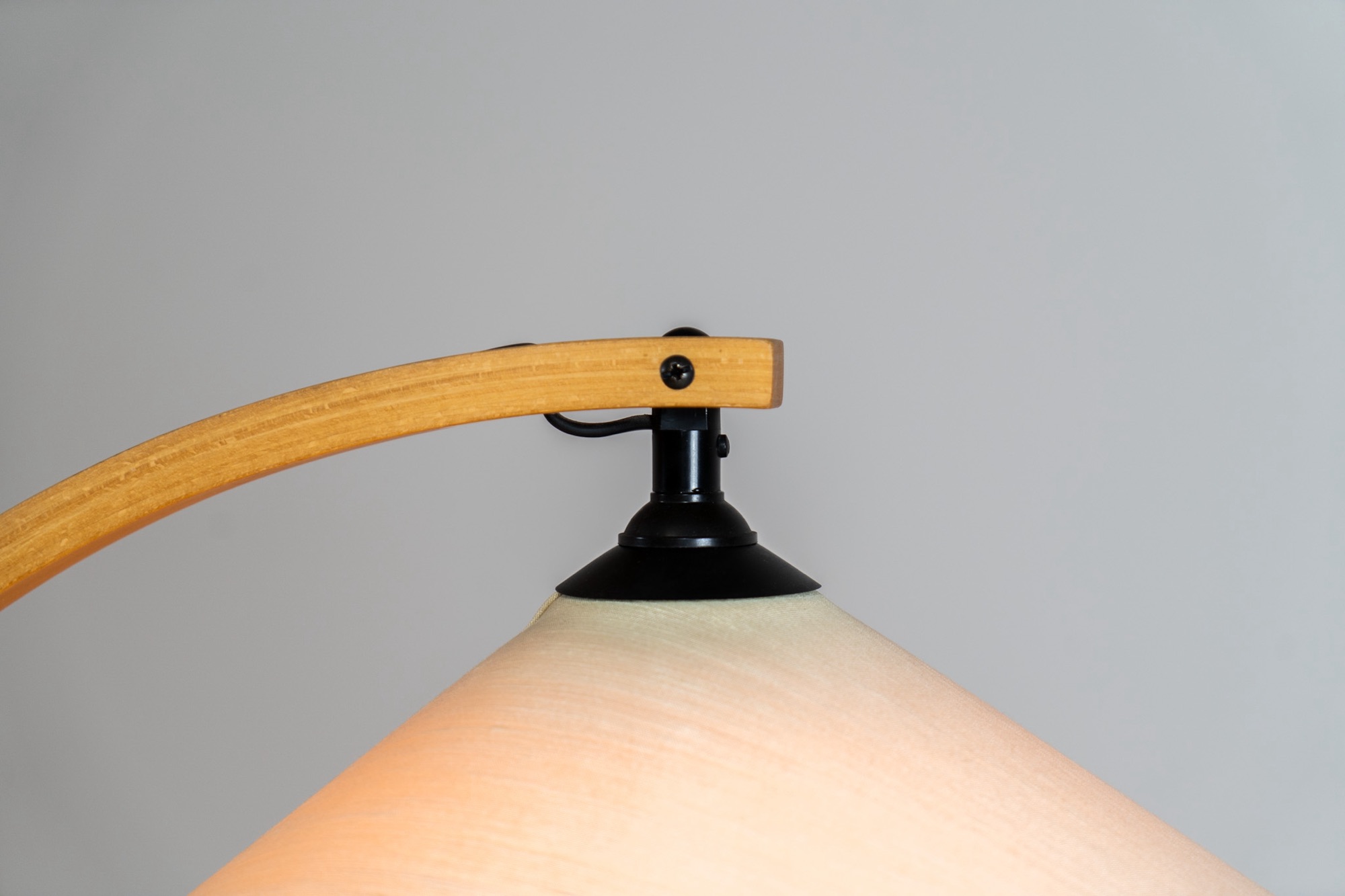 It features a nicely curved beech wood stand and a cast iron base, engraved with ‘Caprani Light’. A very elegant and hard to find piece!