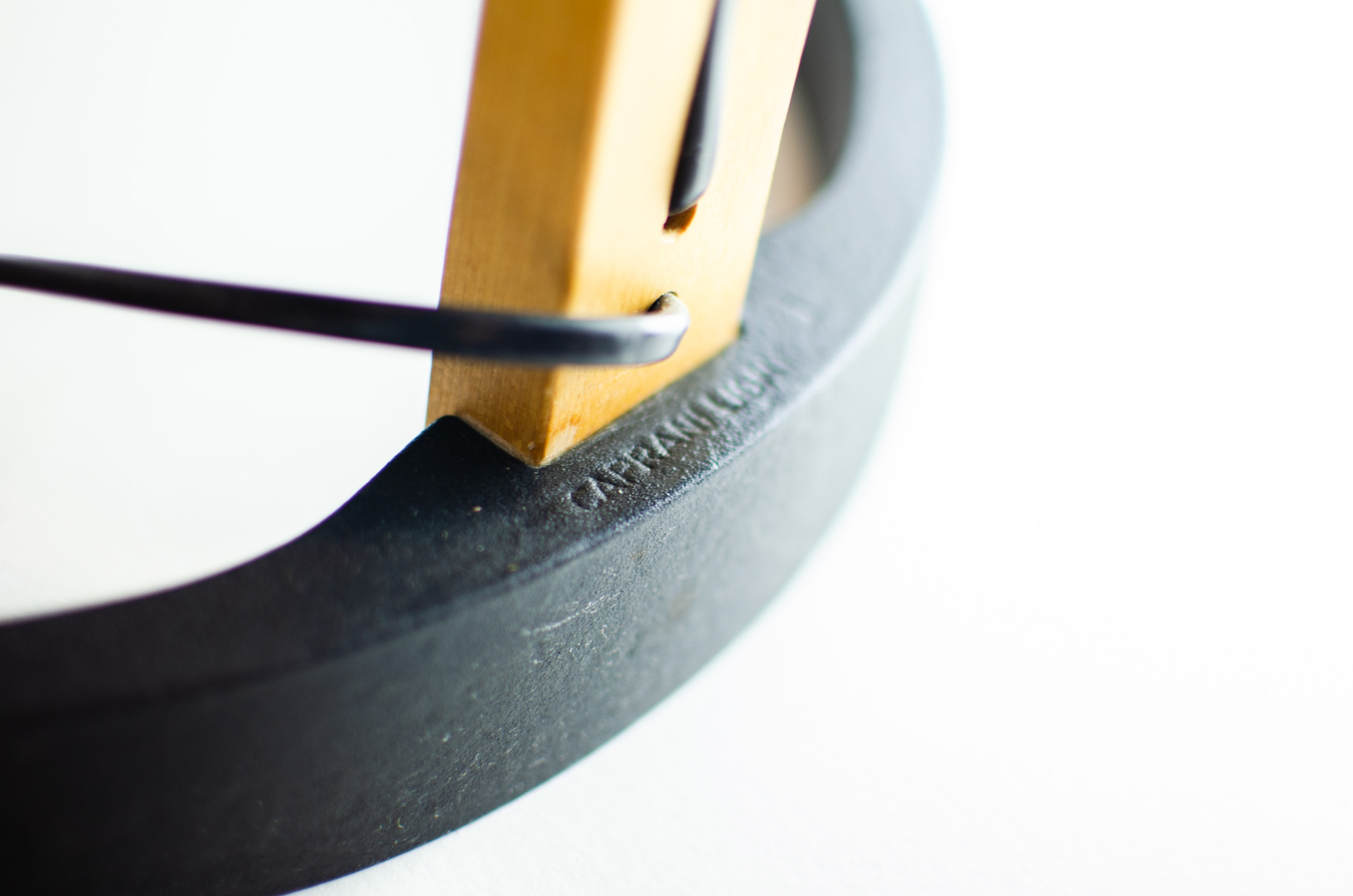 It features a nicely curved beech wood stand and a cast iron base, engraved with ‘Caprani Light’. A very elegant and hard to find piece!