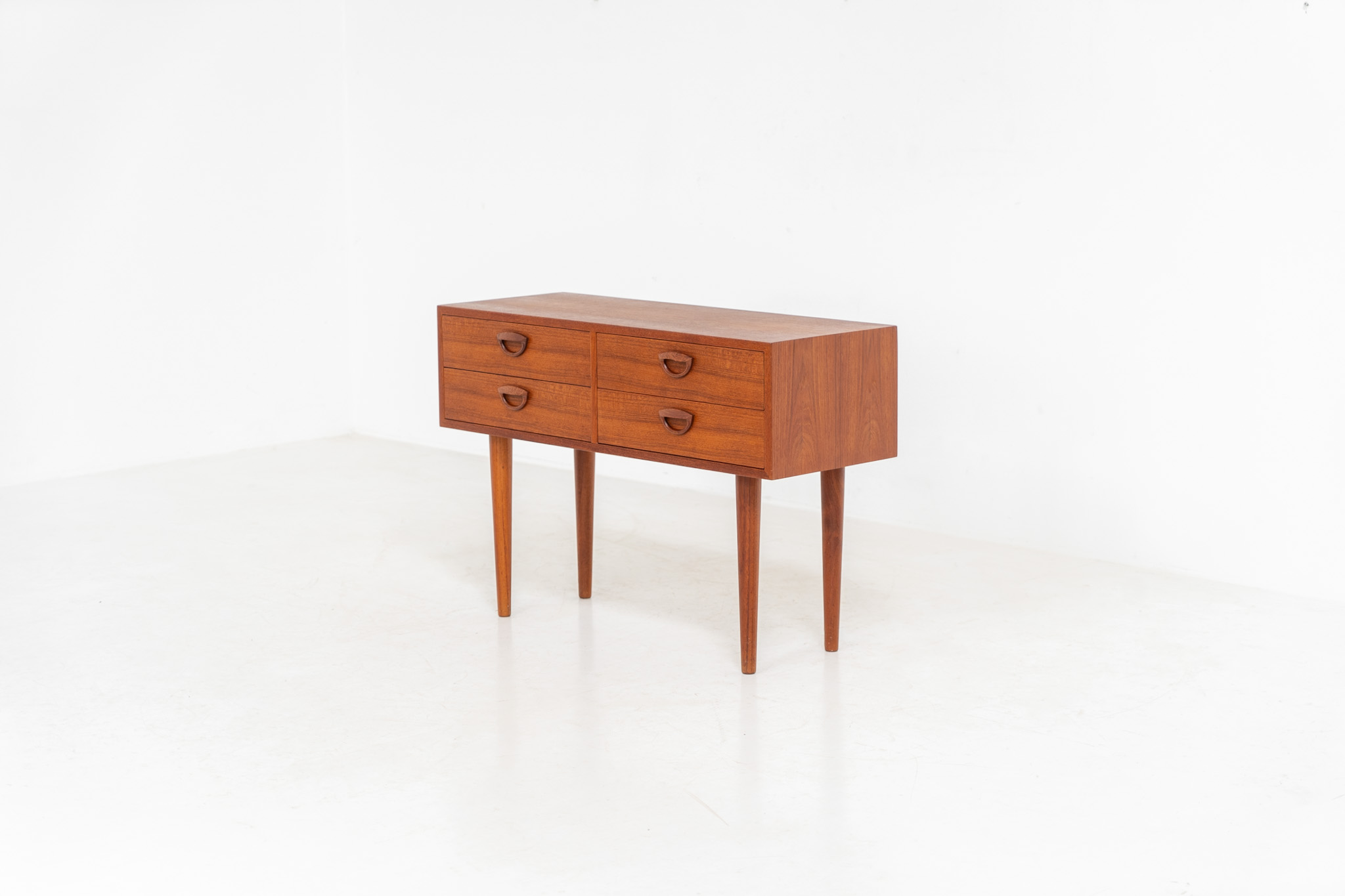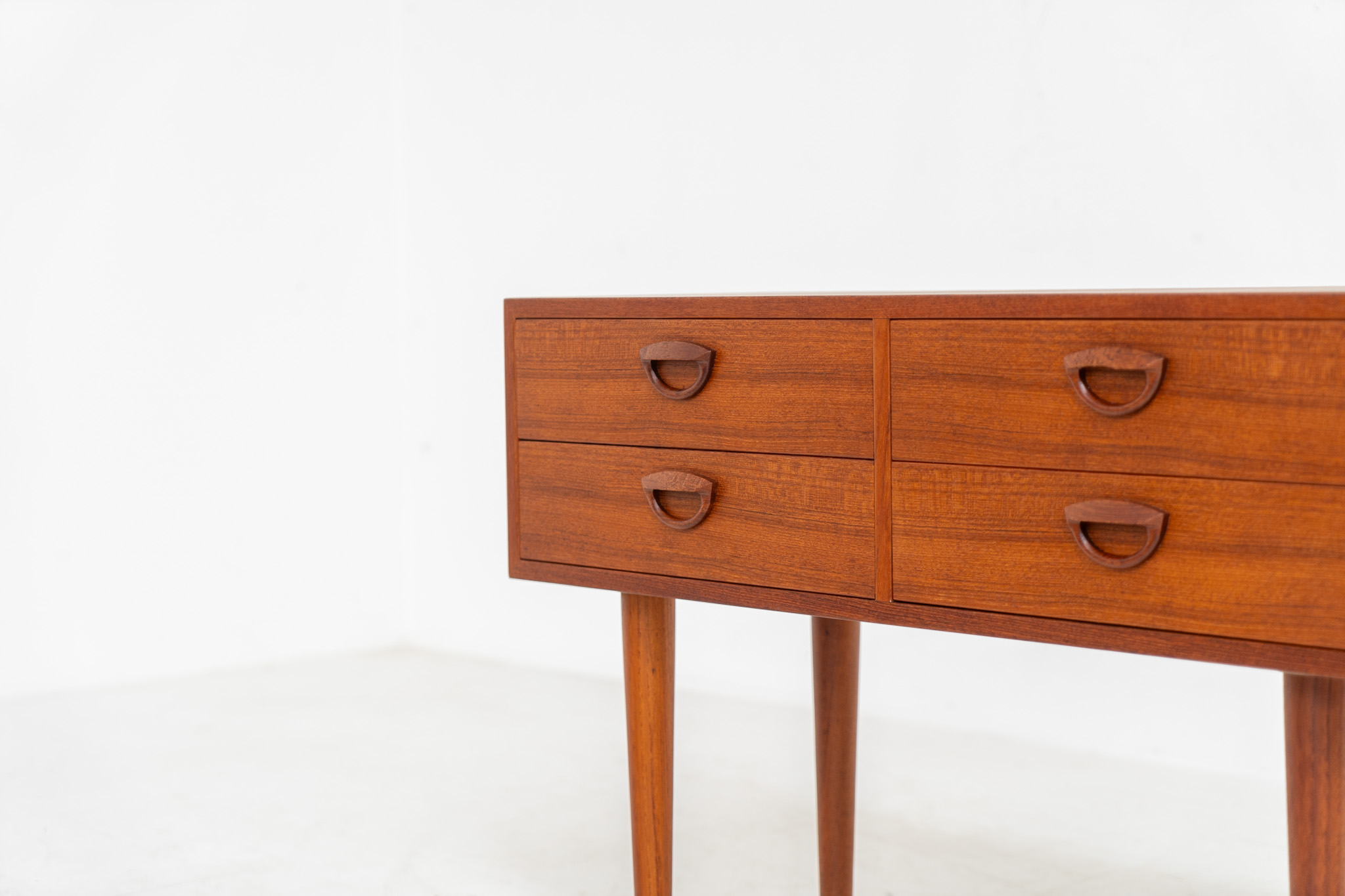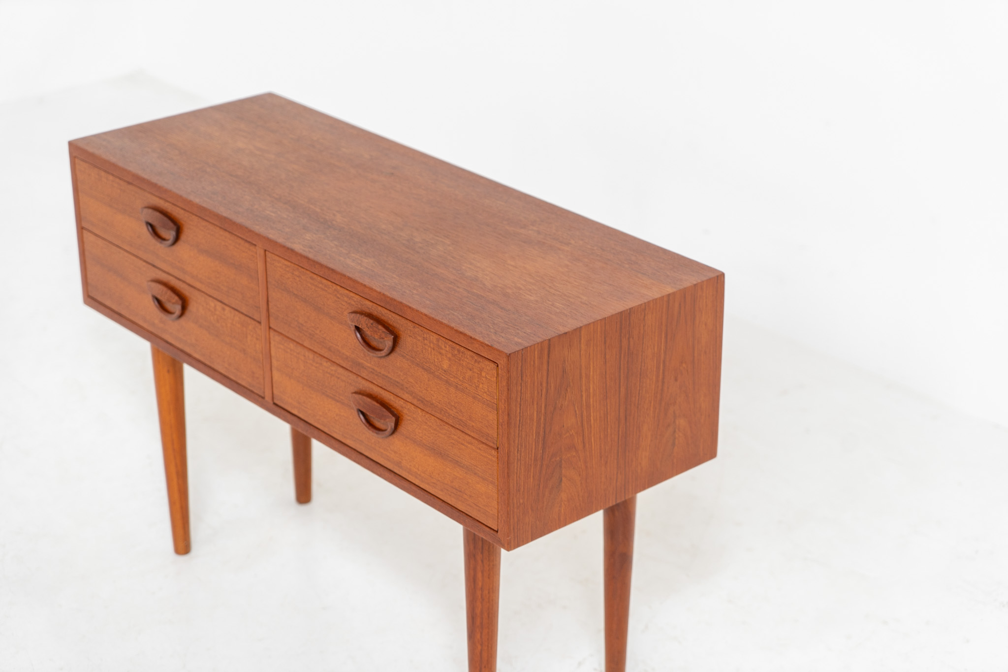 this beautiful chest is made out of teak and features 4 drawers with Kristiansen’s signature carved ‘eye’ pulls and is supported by long tapered legs.