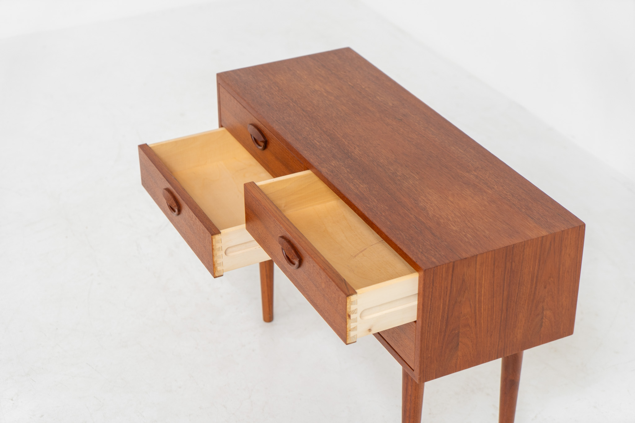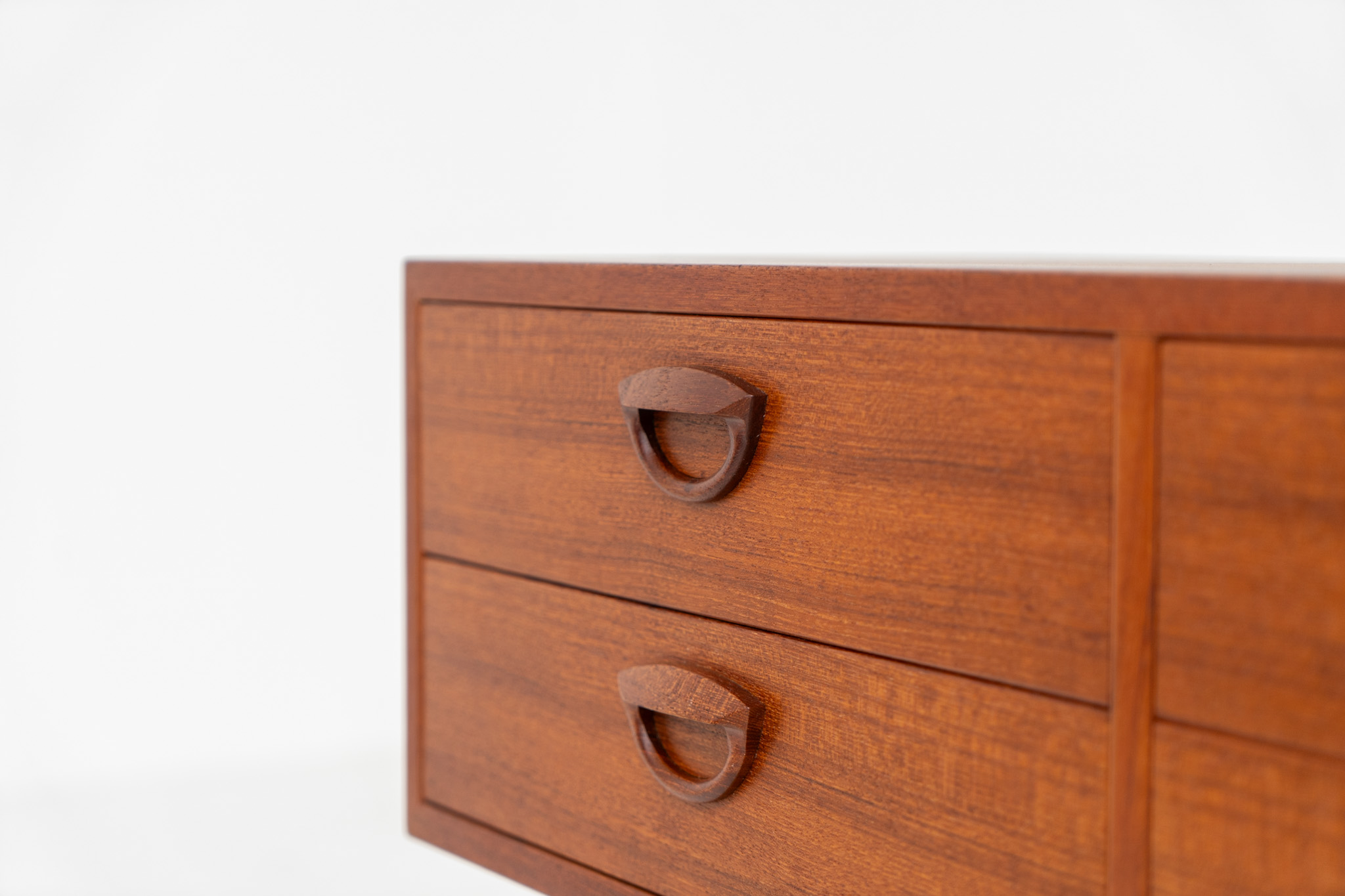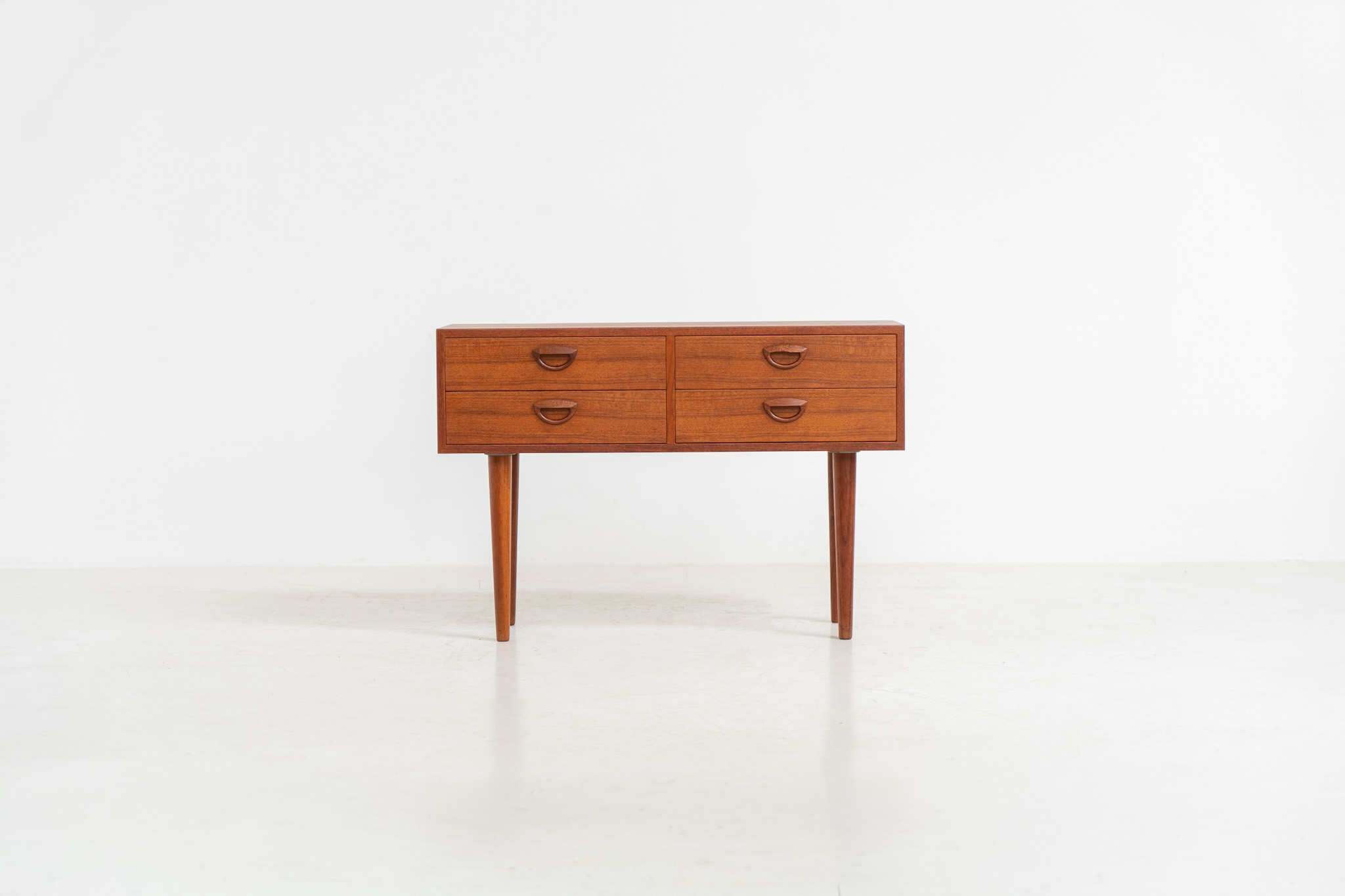 this beautiful chest is made out of teak and features 4 drawers with Kristiansen’s signature carved ‘eye’ pulls and is supported by long tapered legs.
