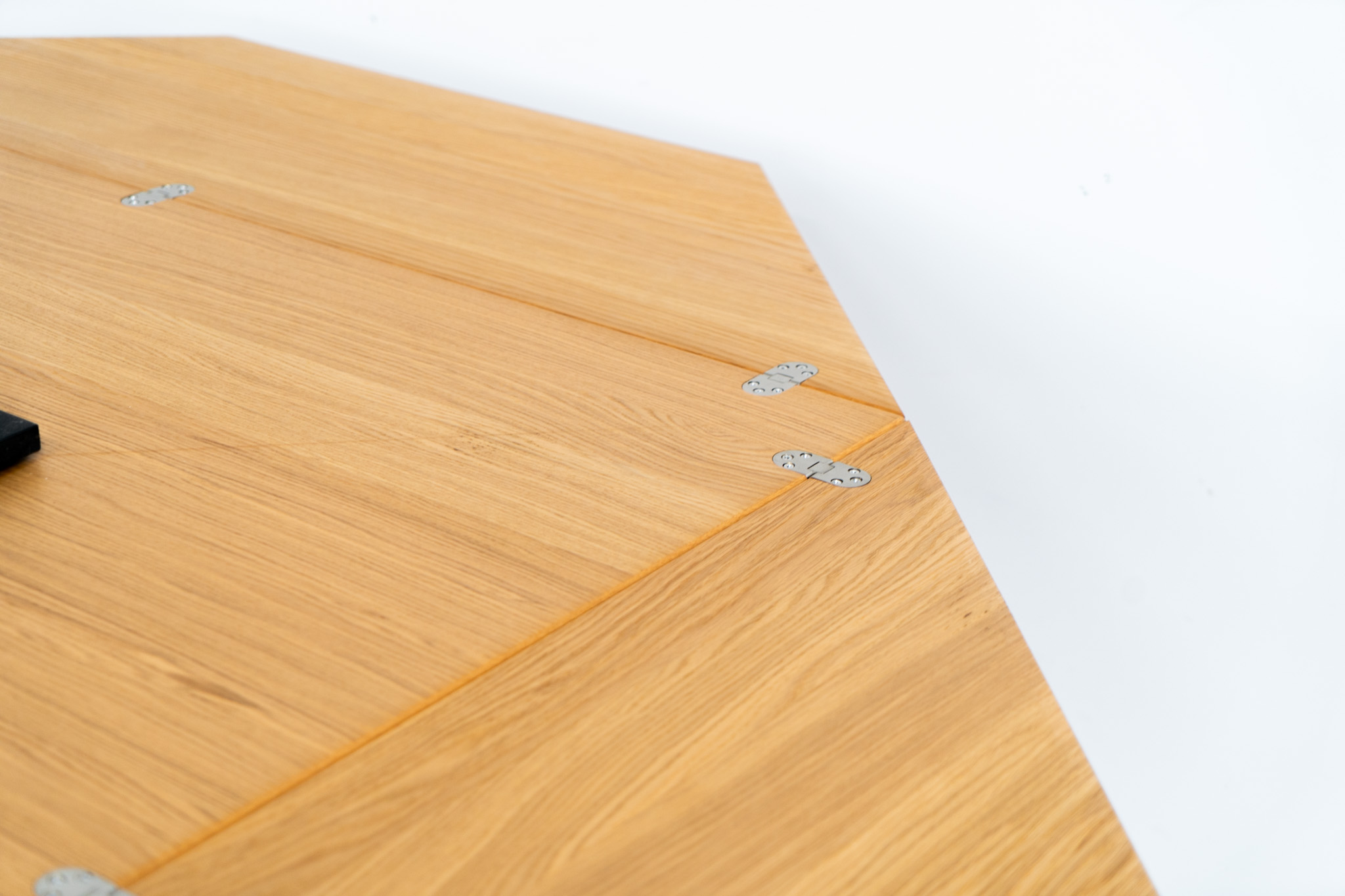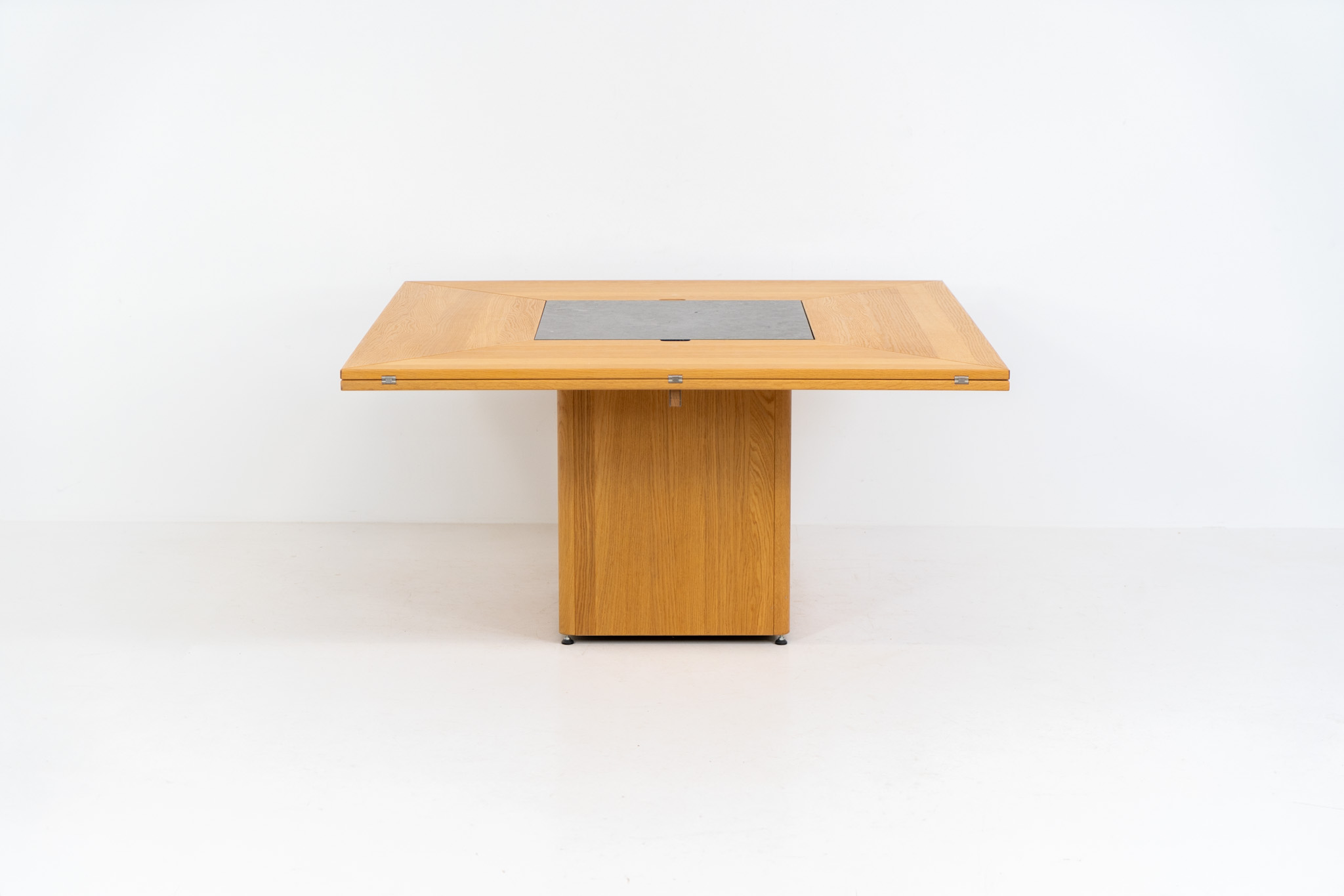 This Belgian icon by Bob Van den Berghe is a masterclass in geometric functionalism. With its signature folding leaves, the Cirkante transforms from a solid square into a spacious octagon, expanding capacity from 8 to 12 people in seconds. By erasing the “head of the table” to put every guest at the center of the conversation.