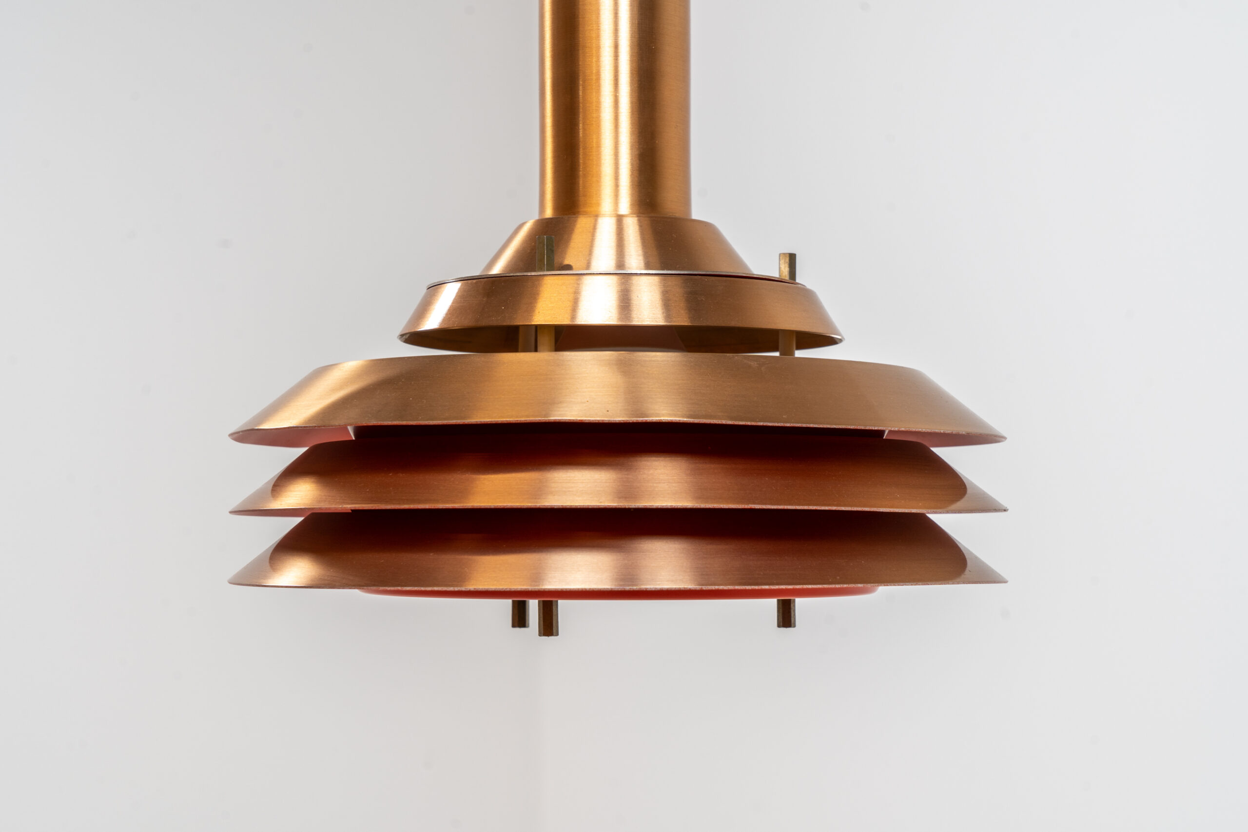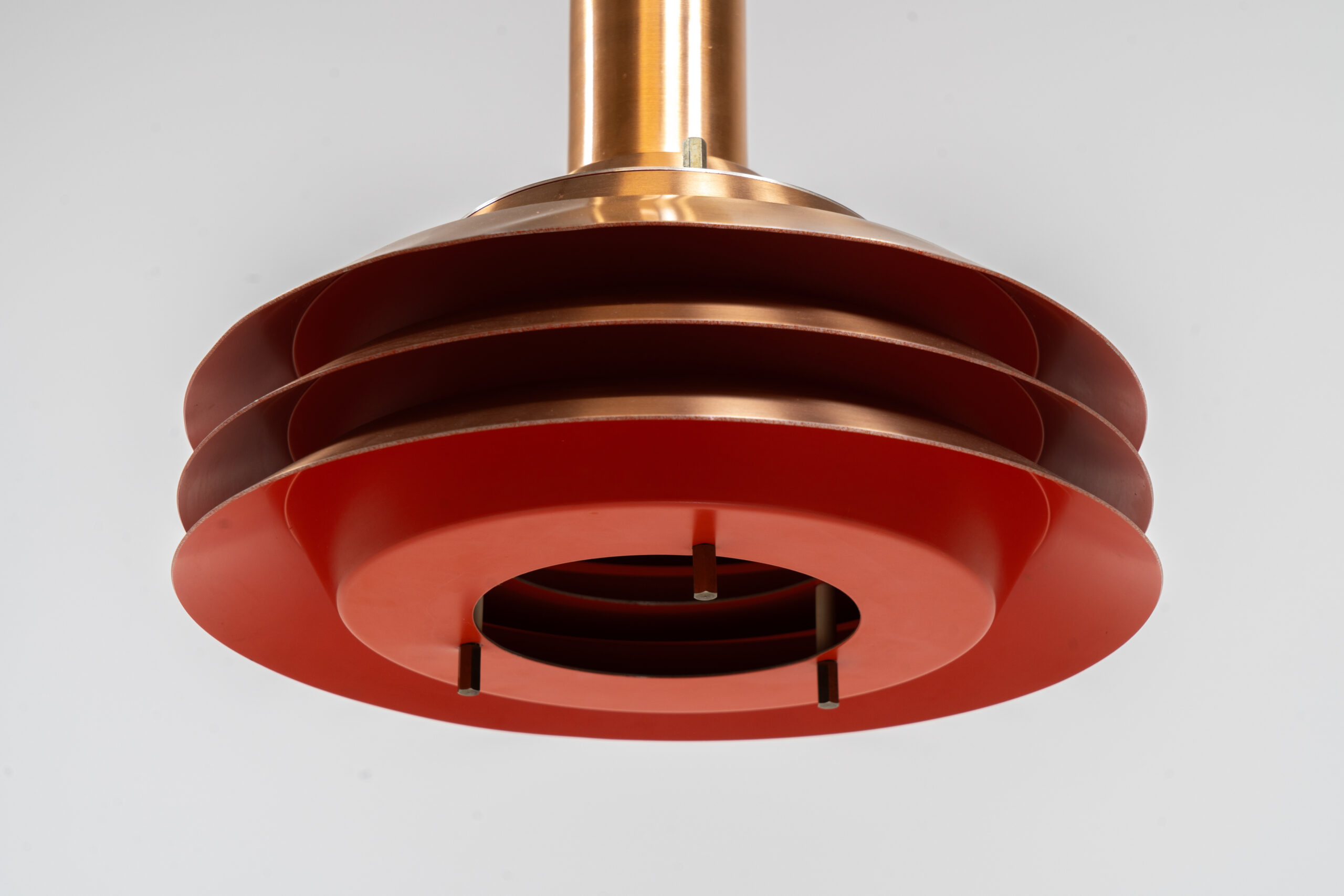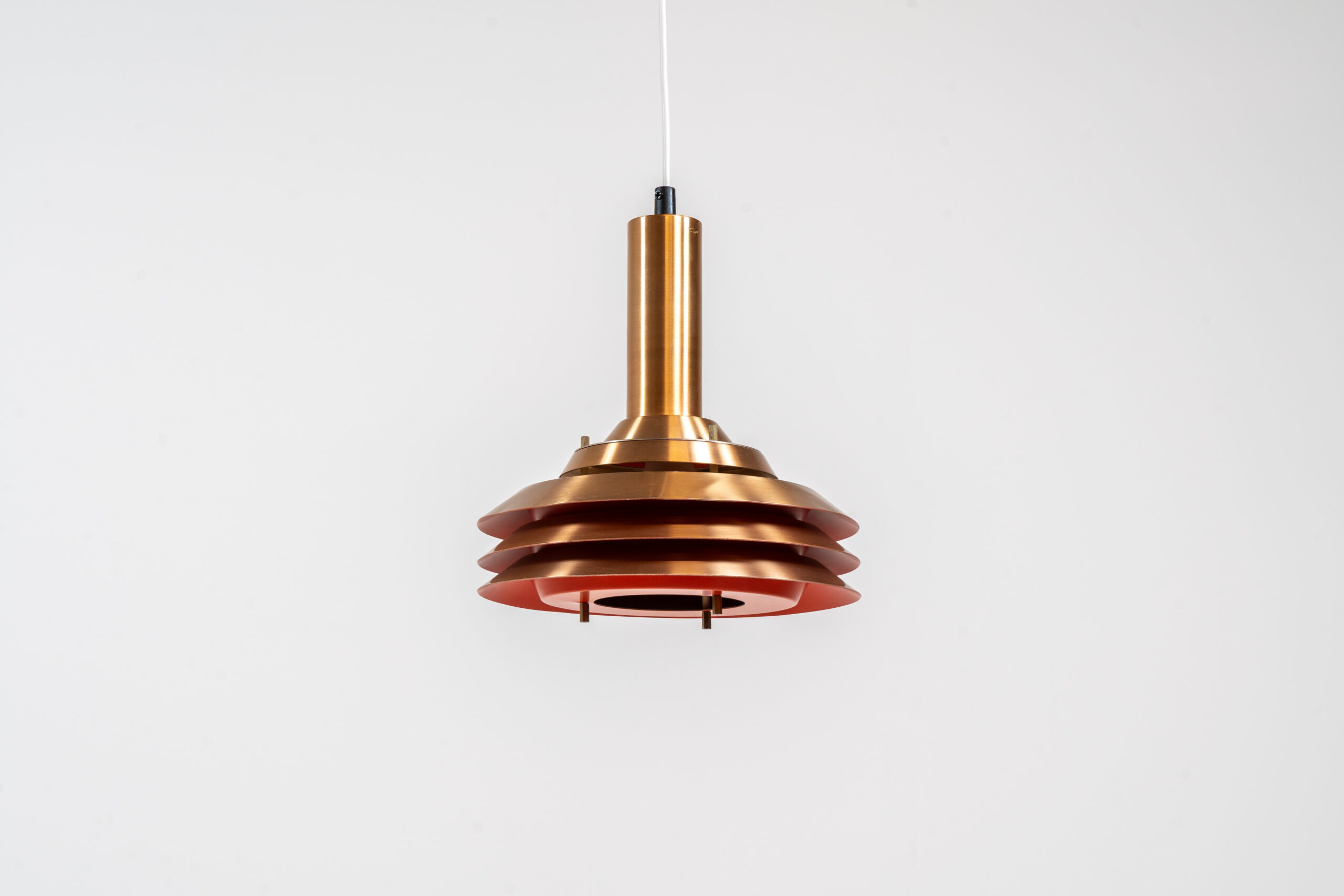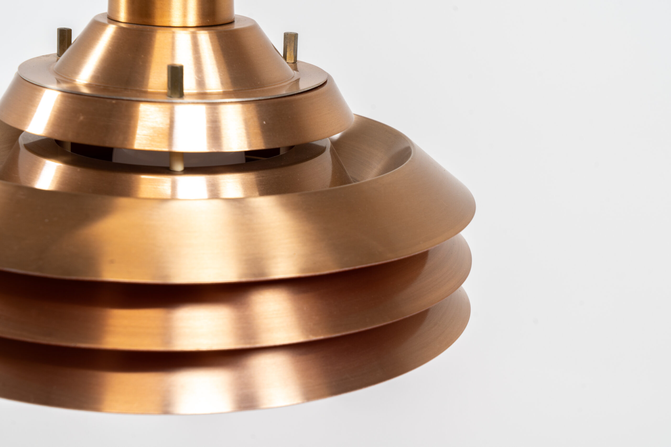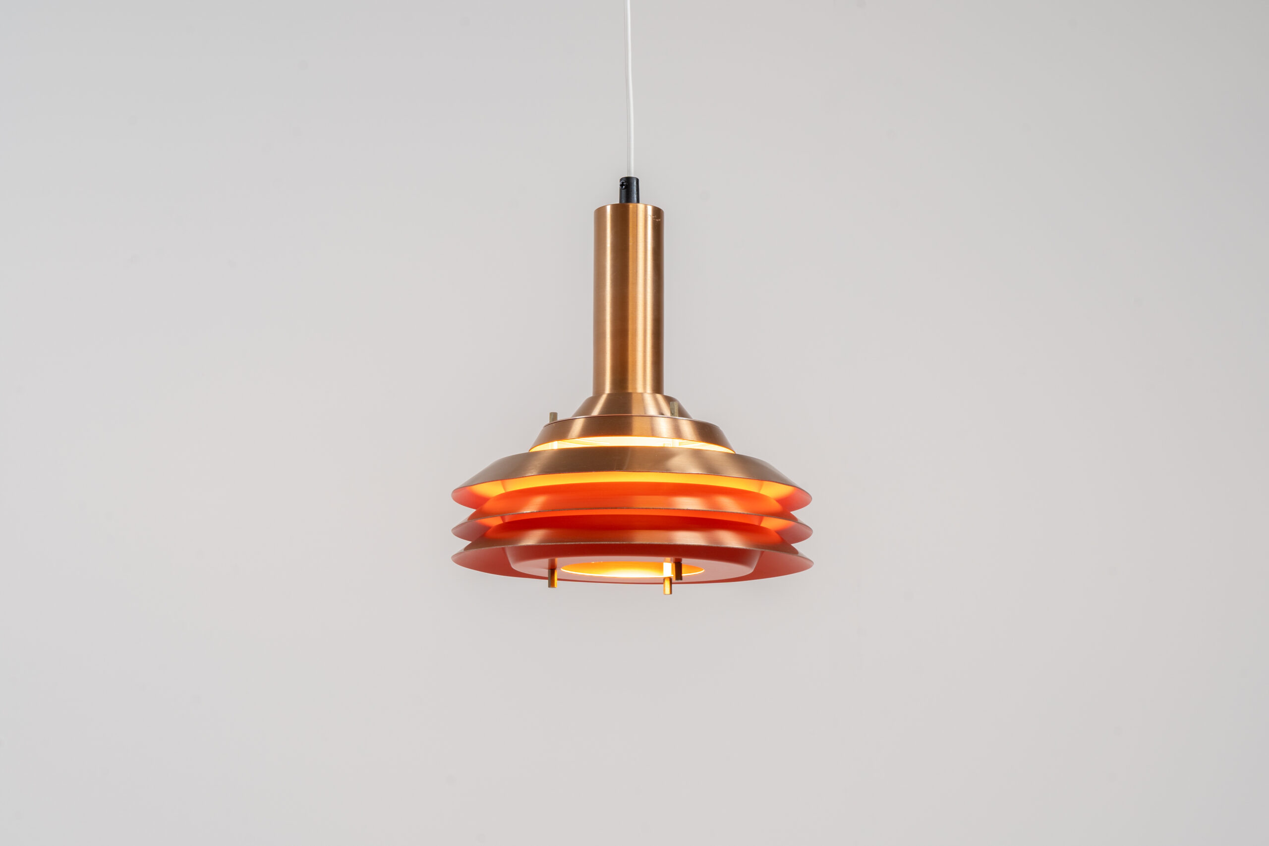 Copper plated Model 705 pendant light by Lyskaer (Denmark, 1960s).