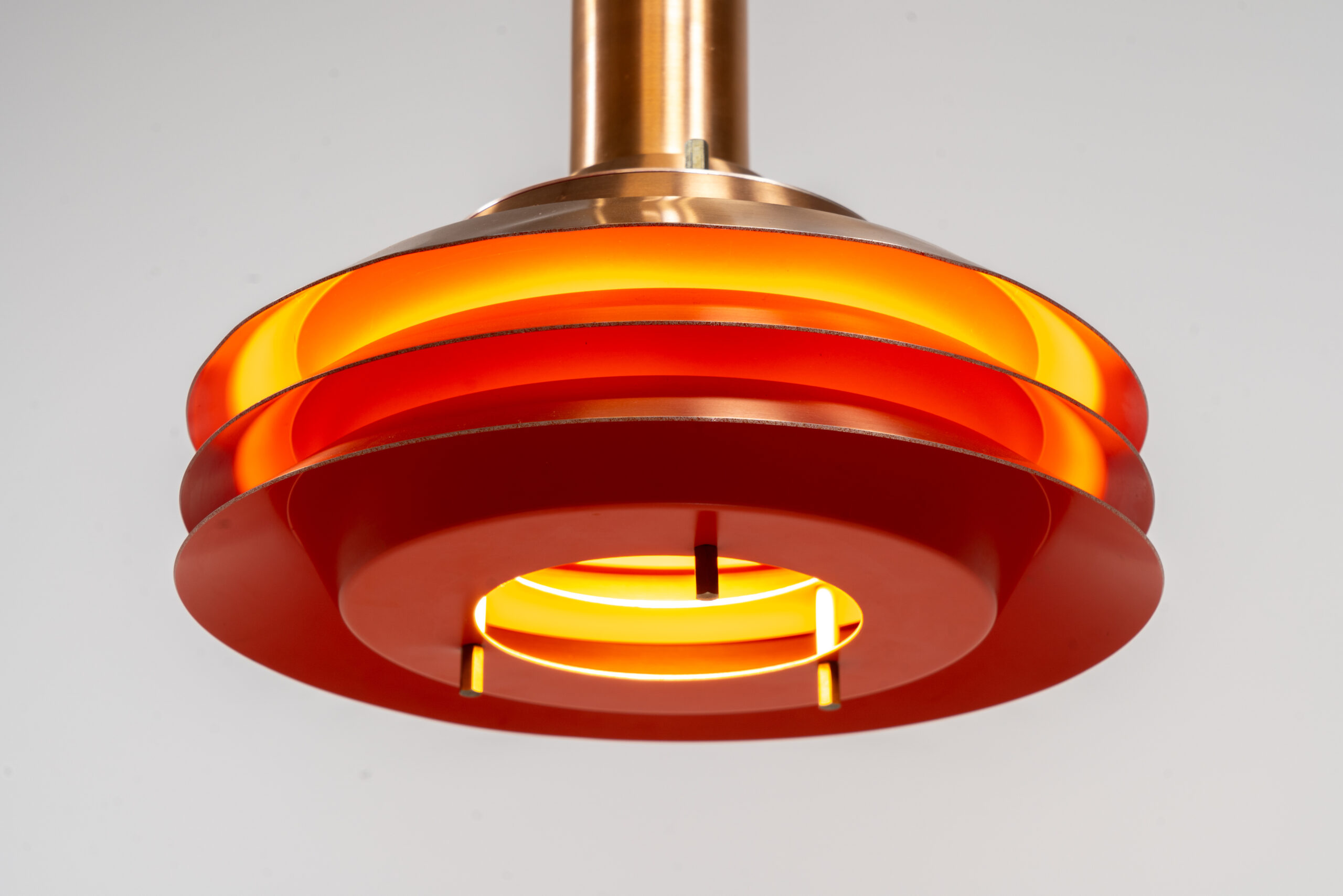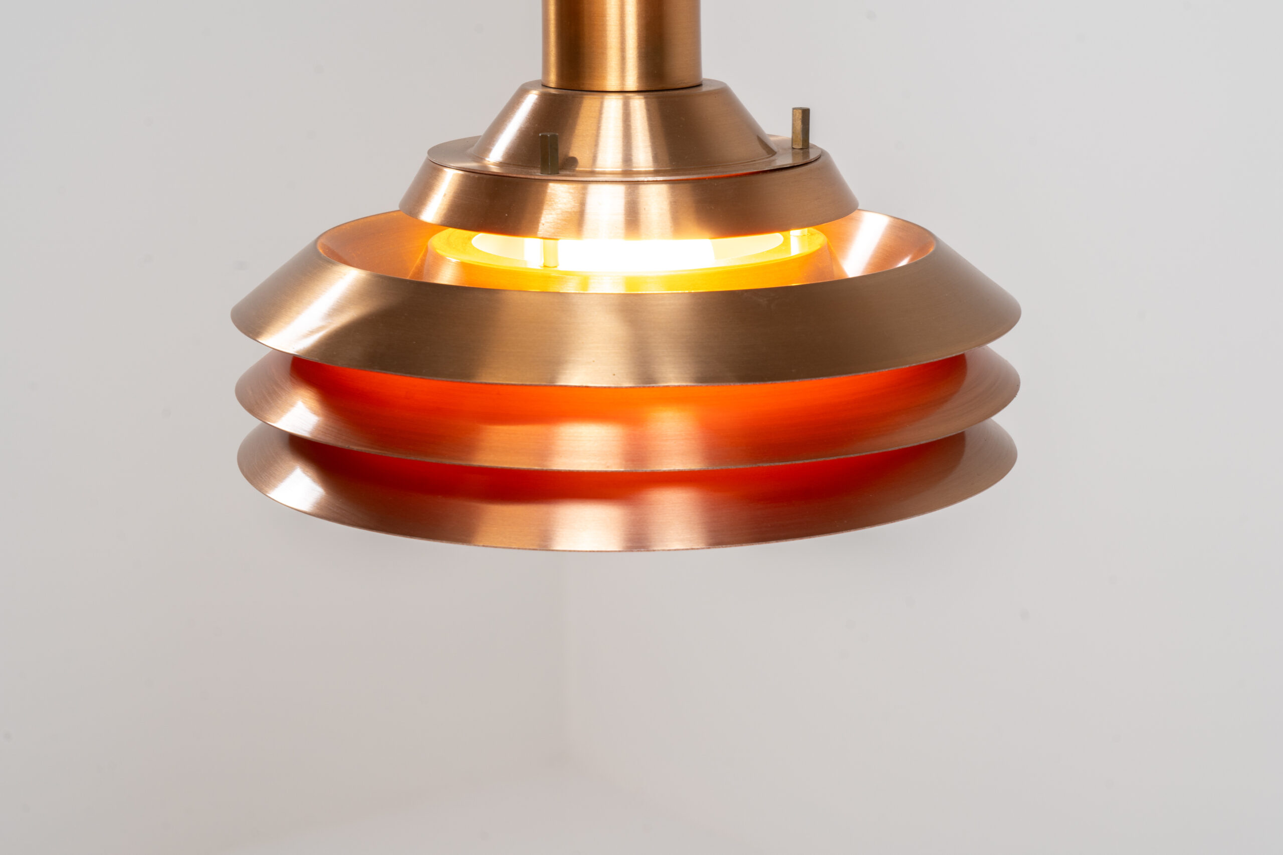 This space age beauty contains 4 aluminium shades with a copper colored exterior. The inside is lacquered in orange, which creates a beautiful and warm light dispersion.