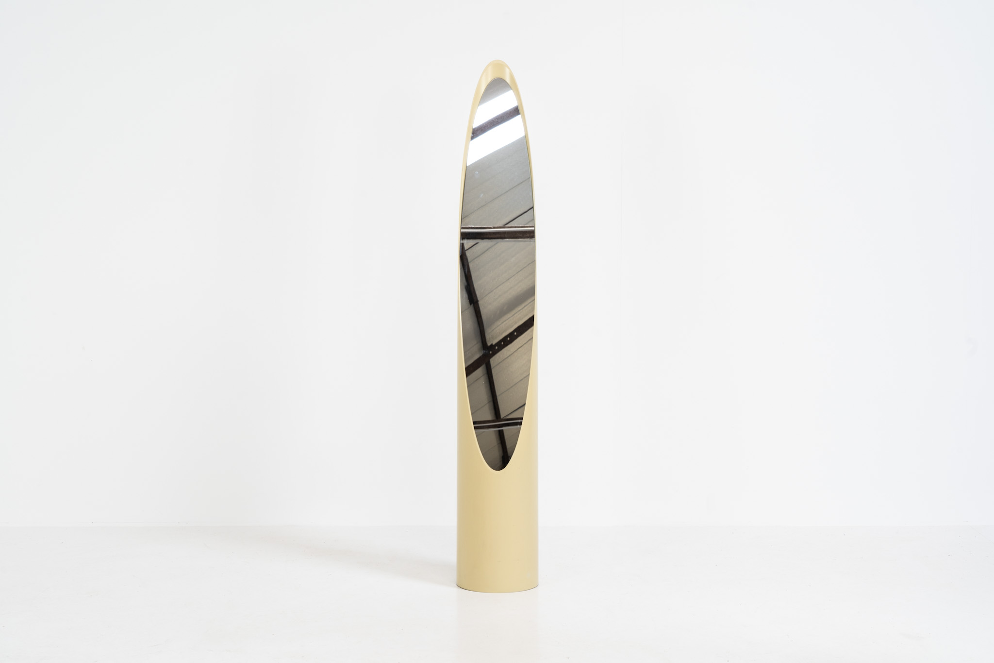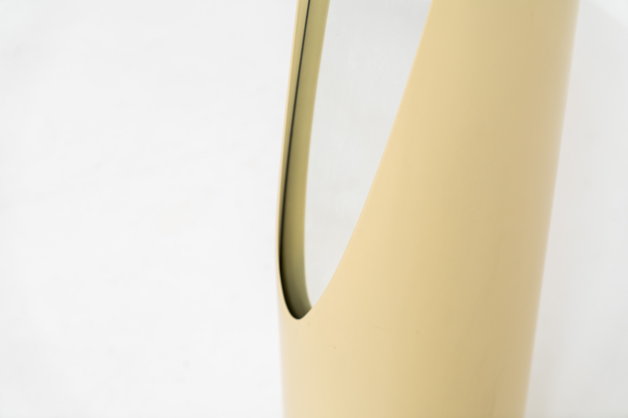 This elegant Unghia mirror, also known as the lipstick mirror is made out of a fiberglass body lacquered in a creamy beige color.
