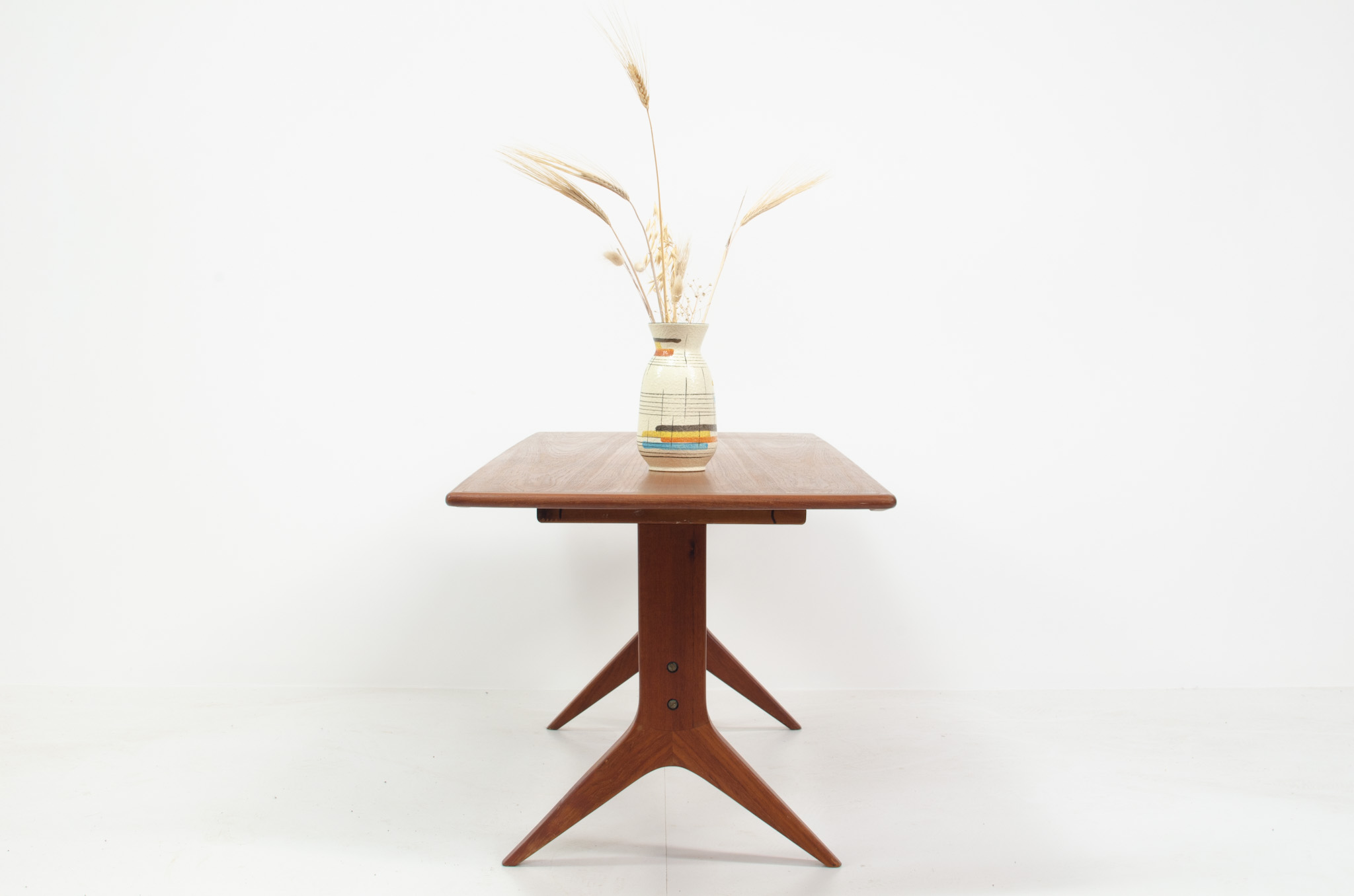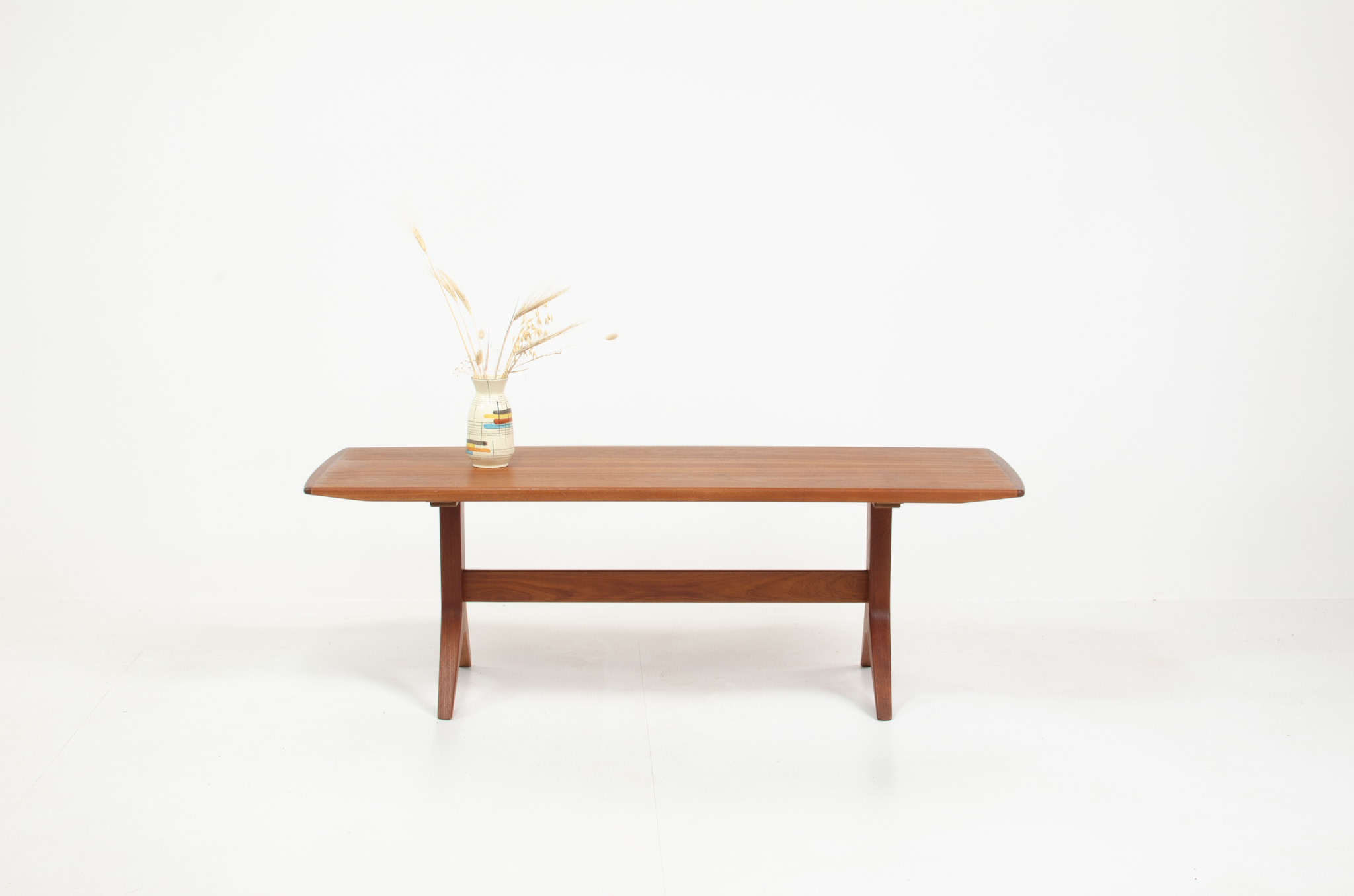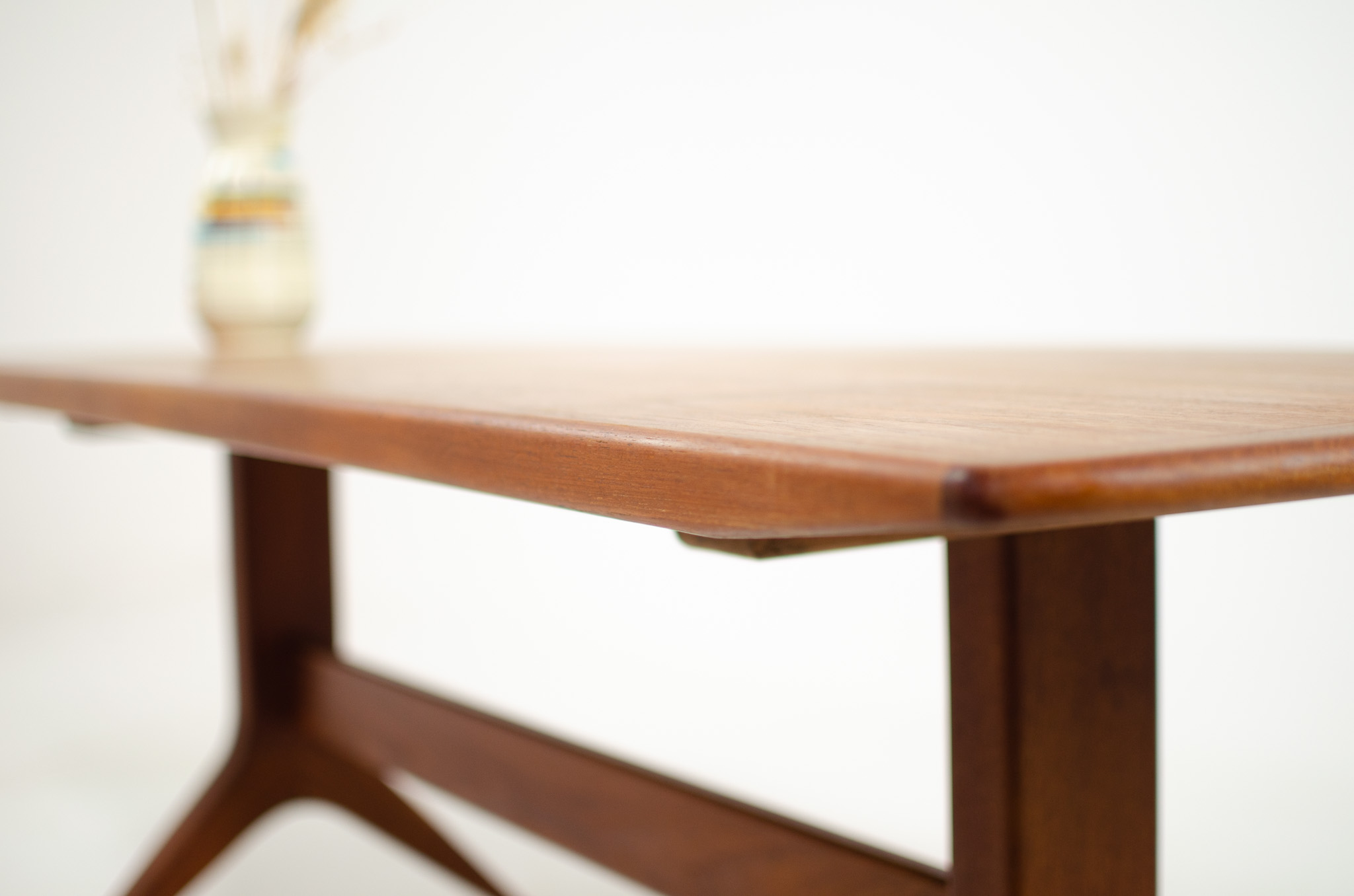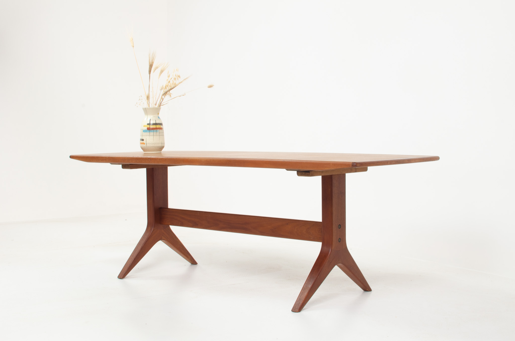 Stunning solid teak scissor legs and a large teak table top with a nice and natural woodgrain.