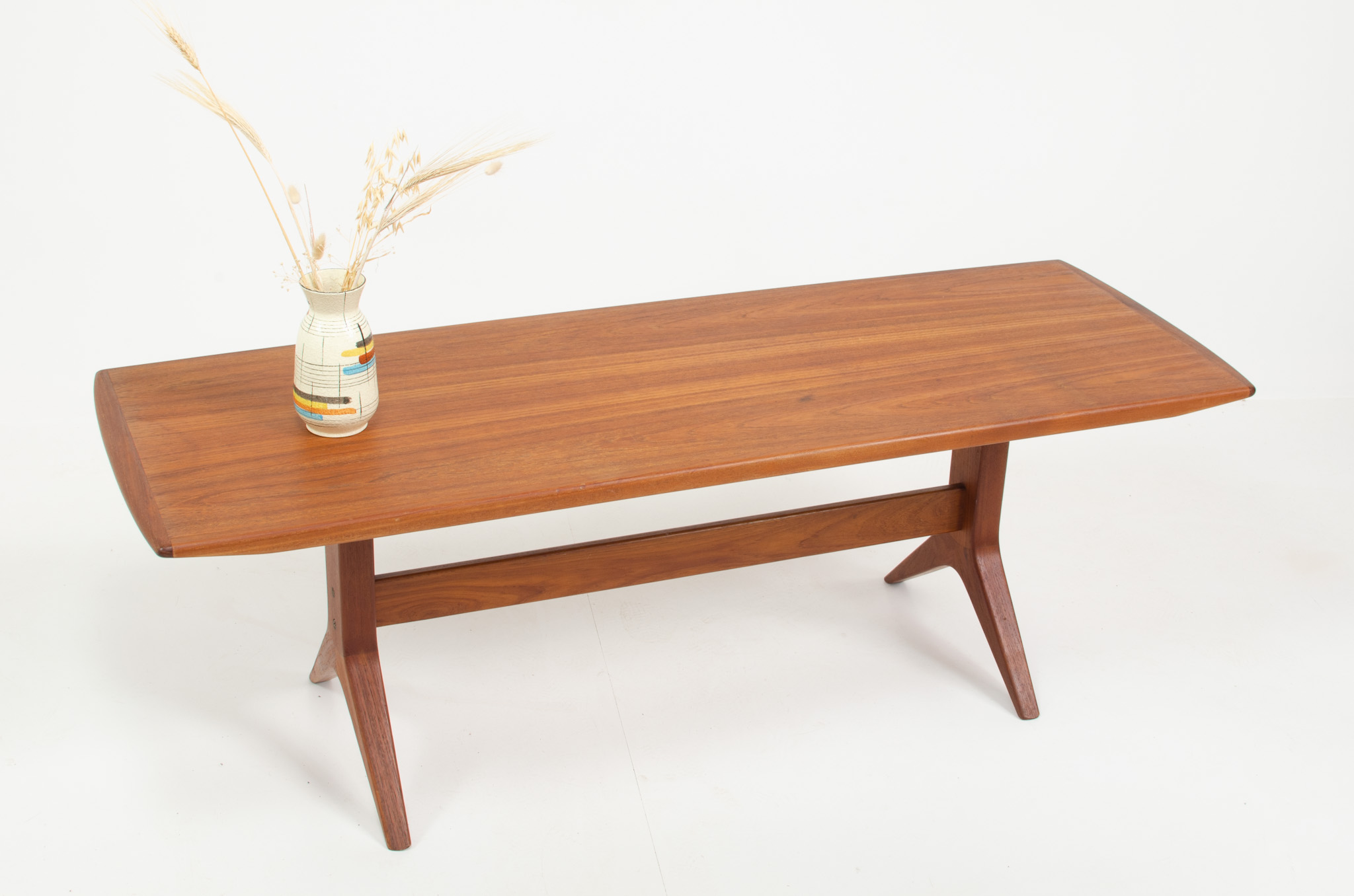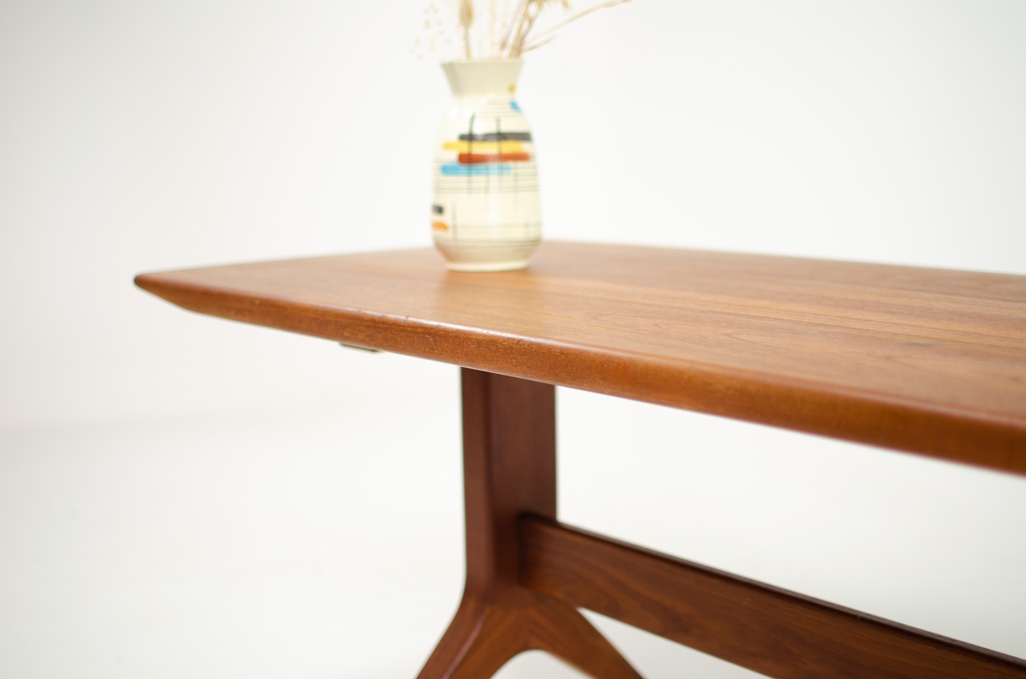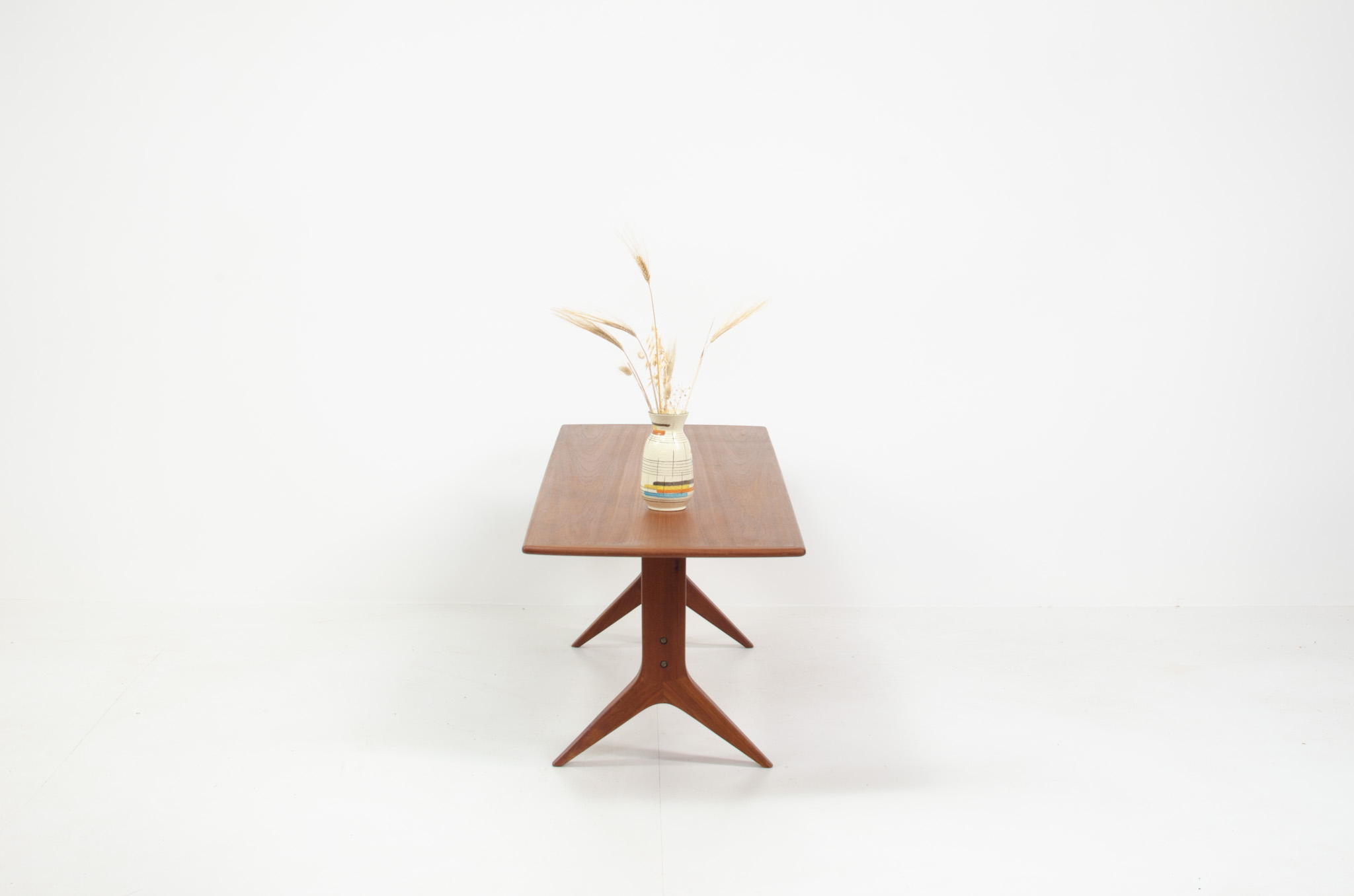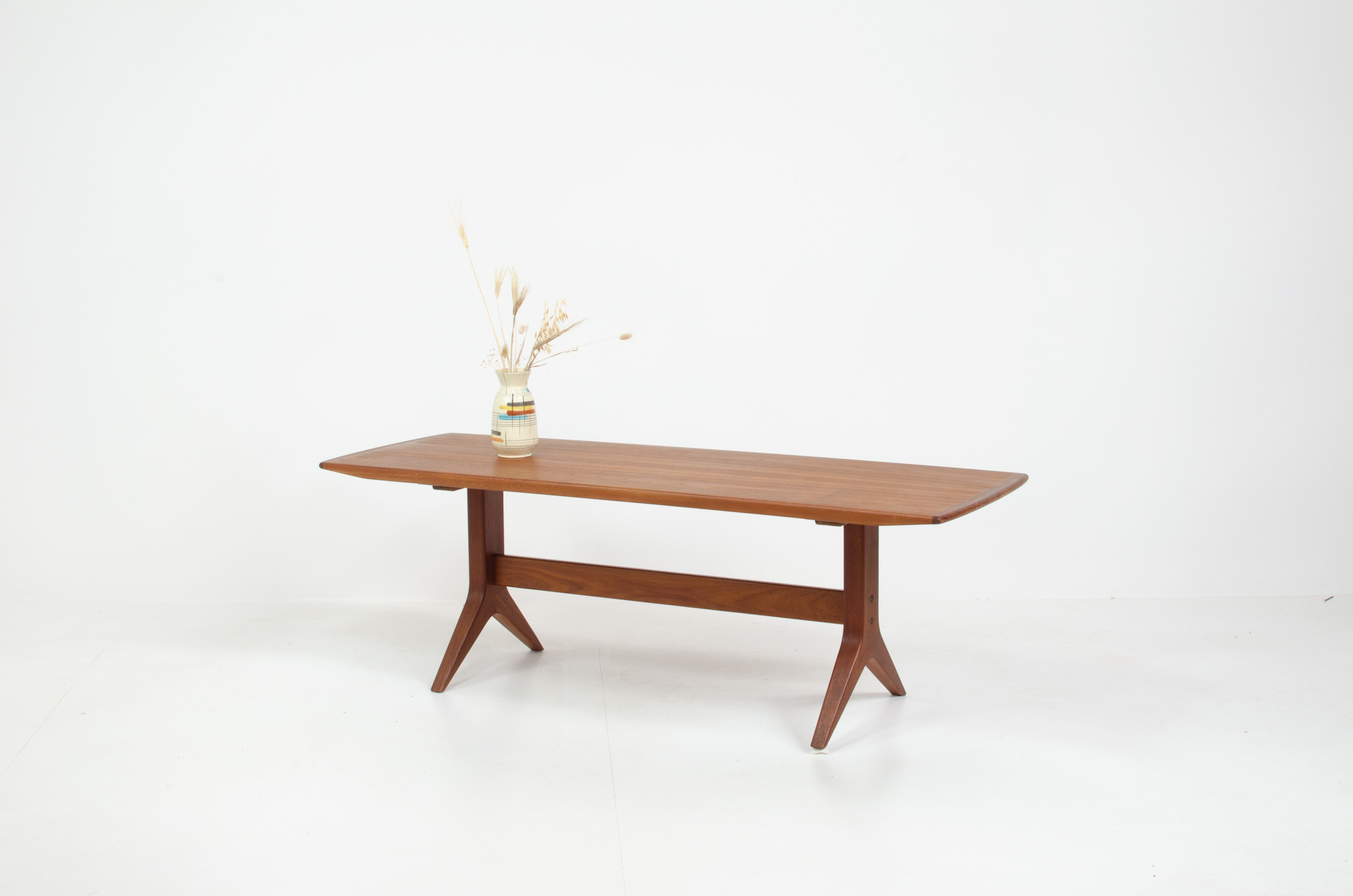 Stunning solid teak scissor legs and a large teak table top with a nice and natural woodgrain.