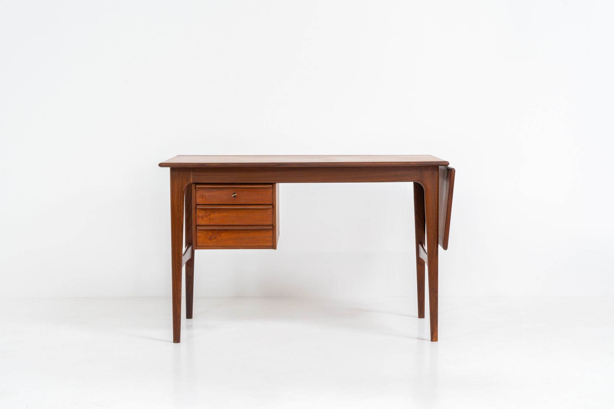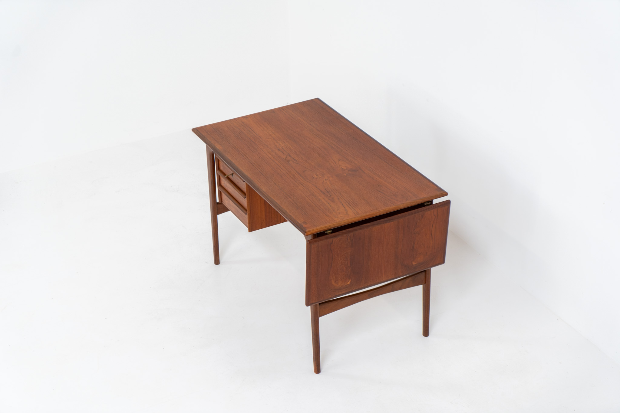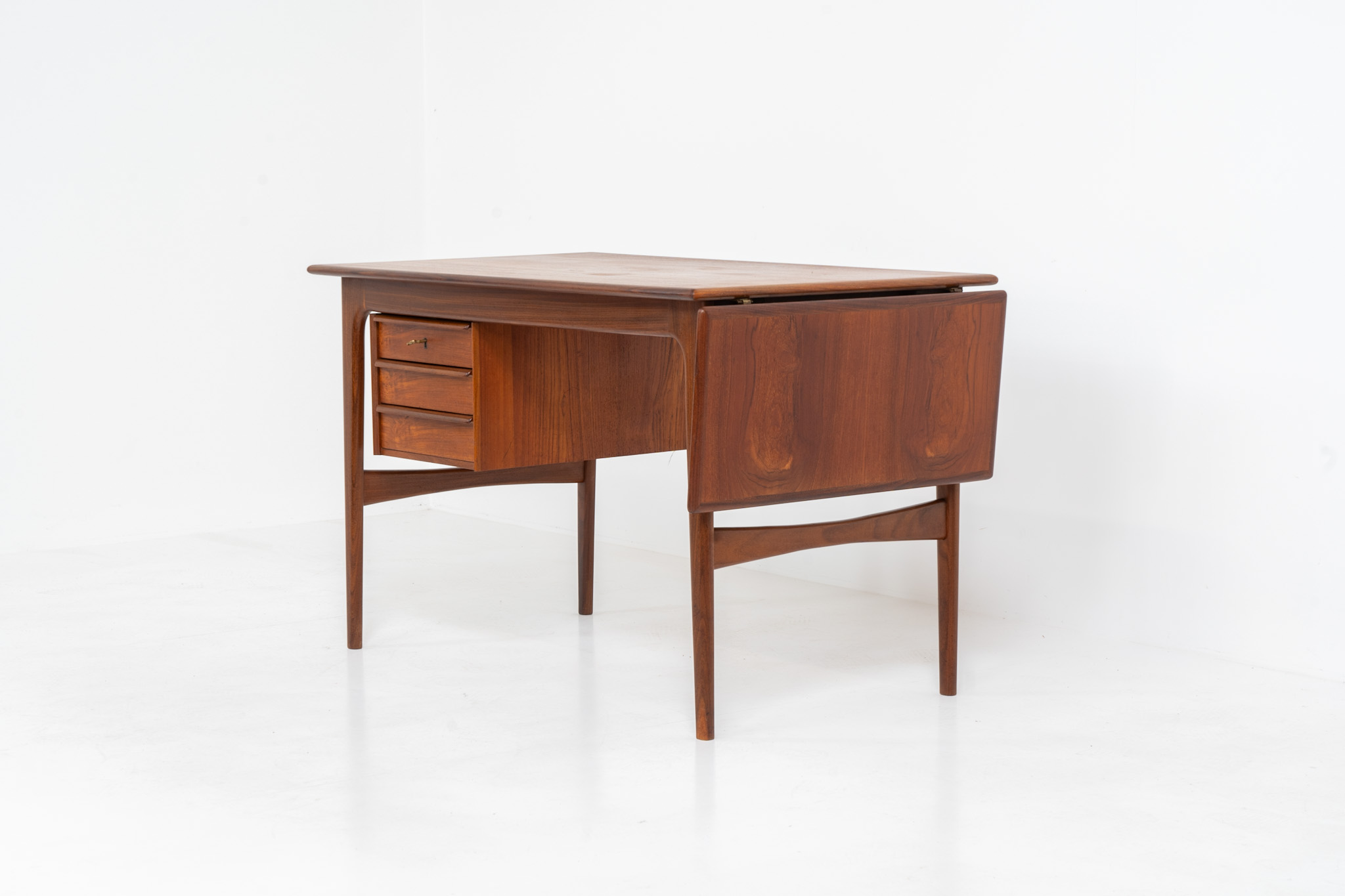 Stunning free standing drop-leaf desk in teak (Denmark, 1960s).