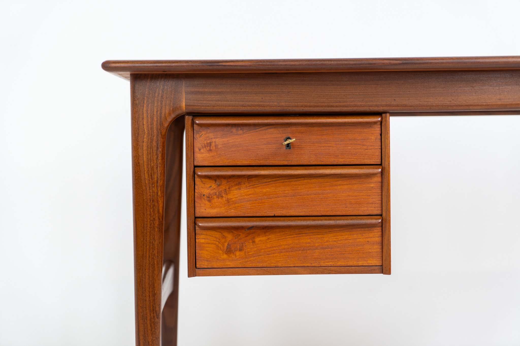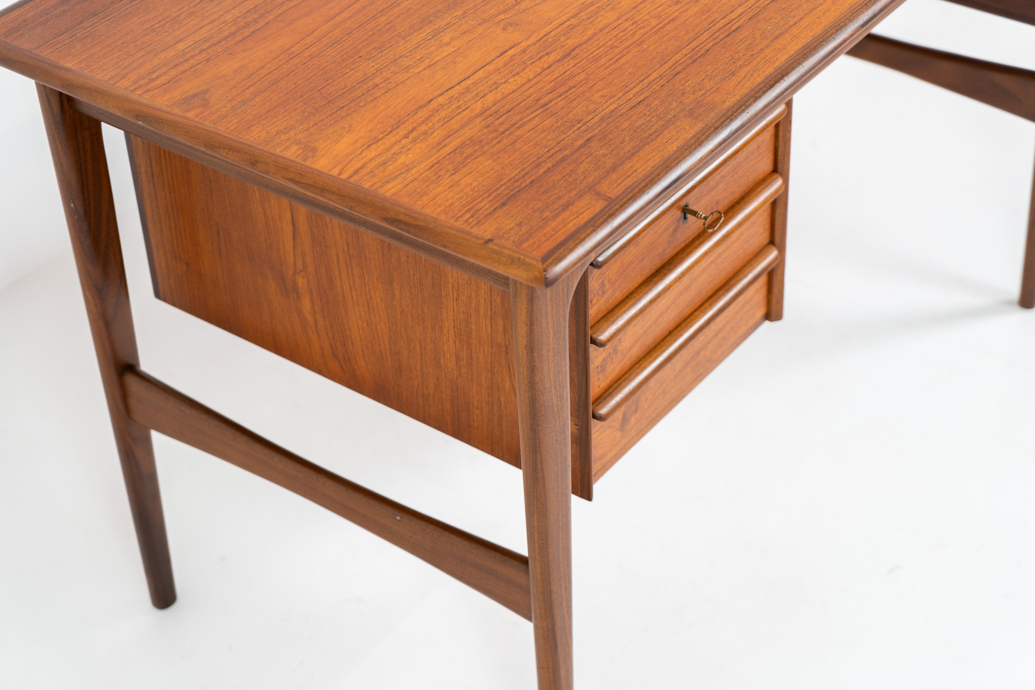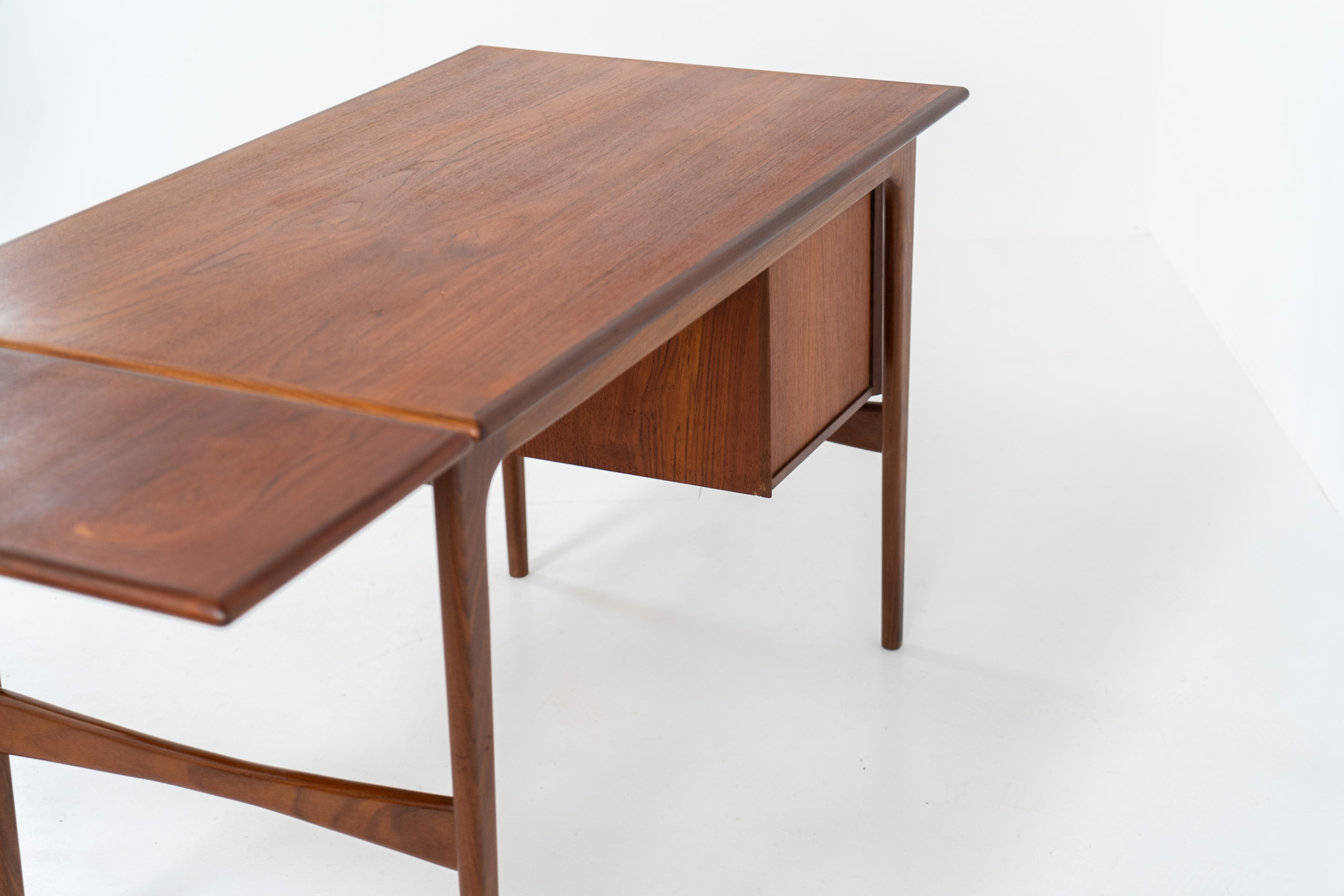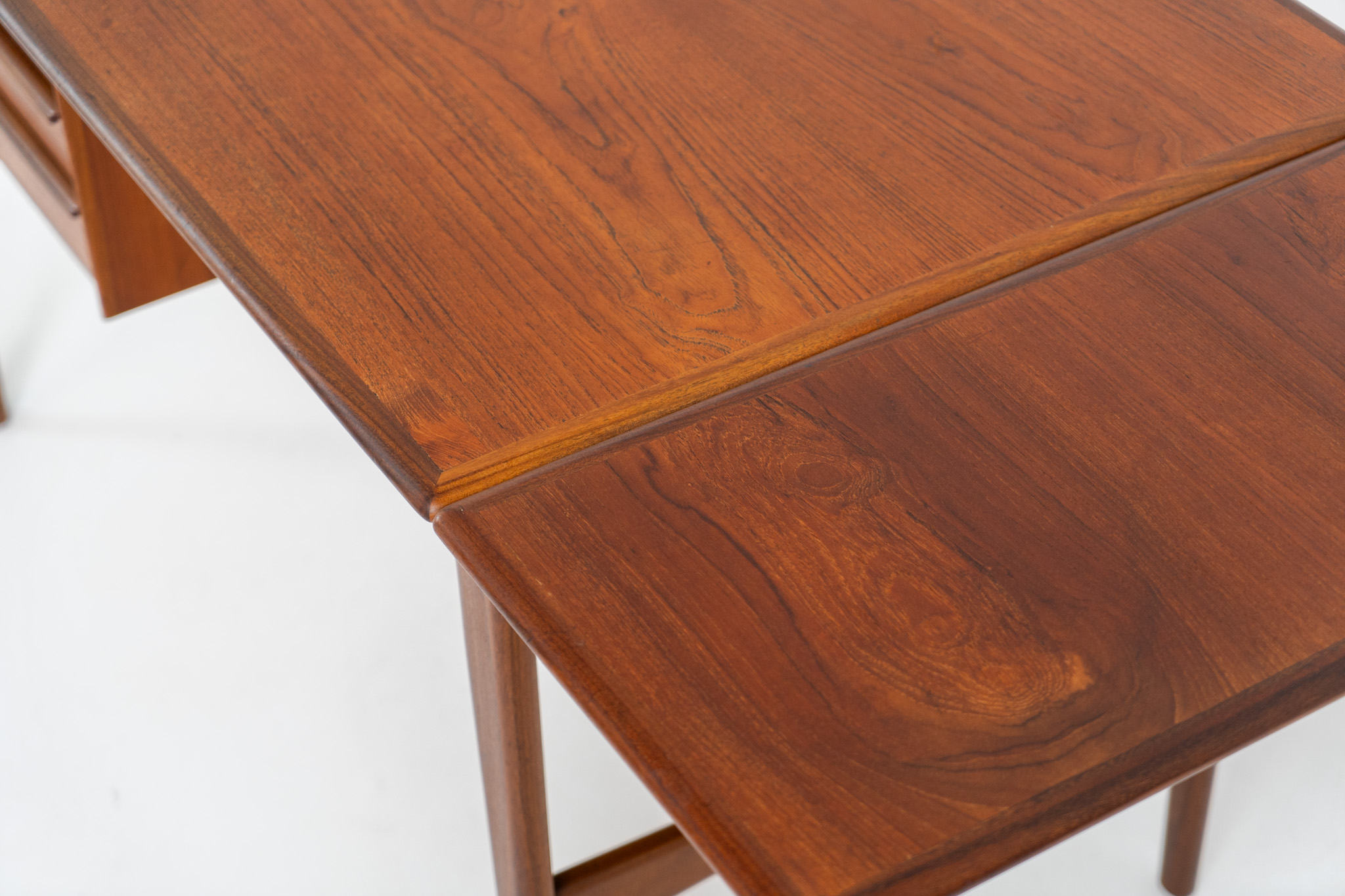 Stunning free standing drop-leaf desk in teak (Denmark, 1960s).