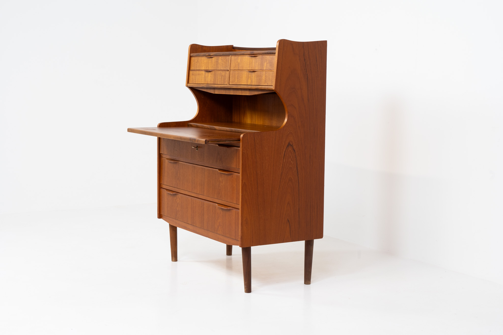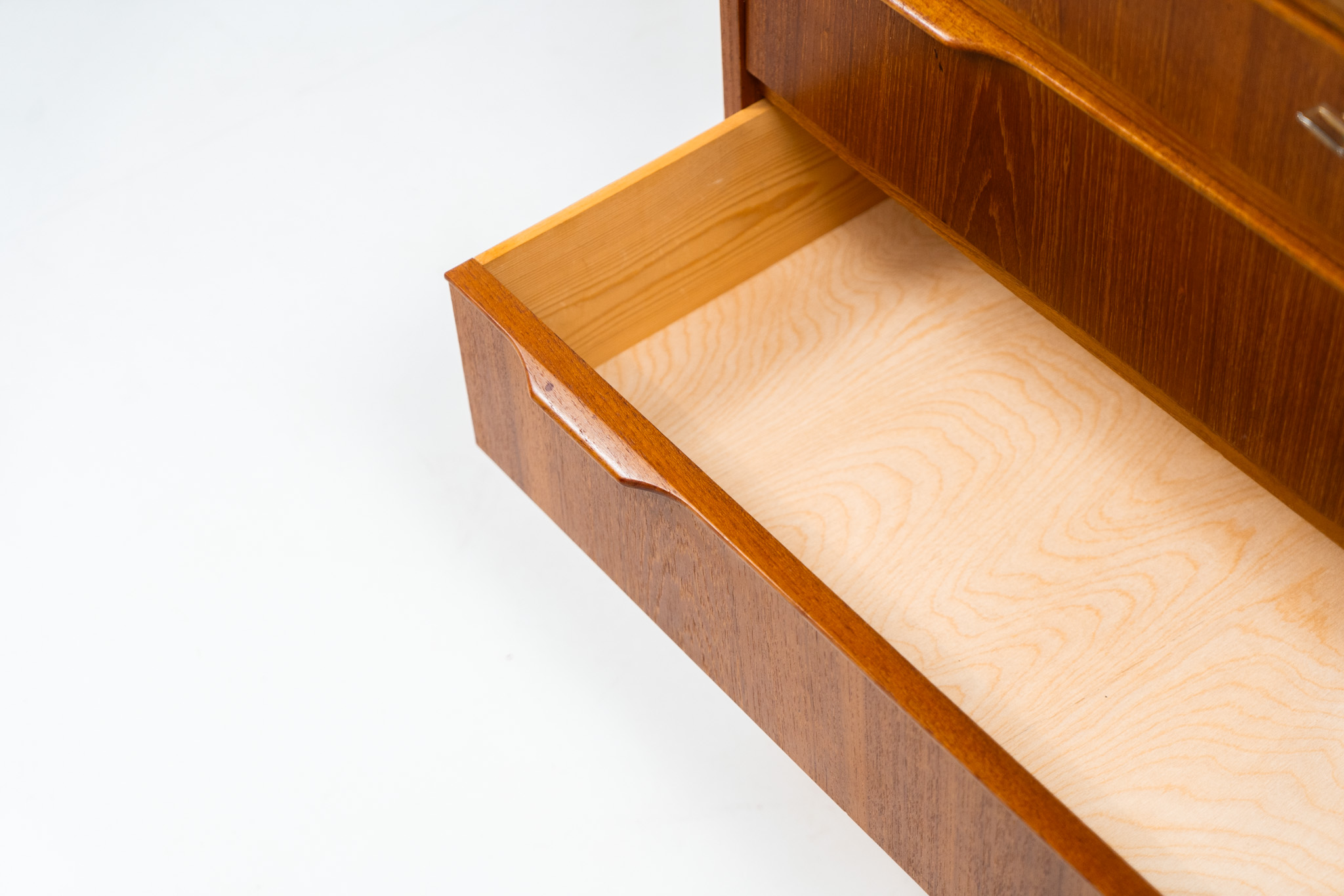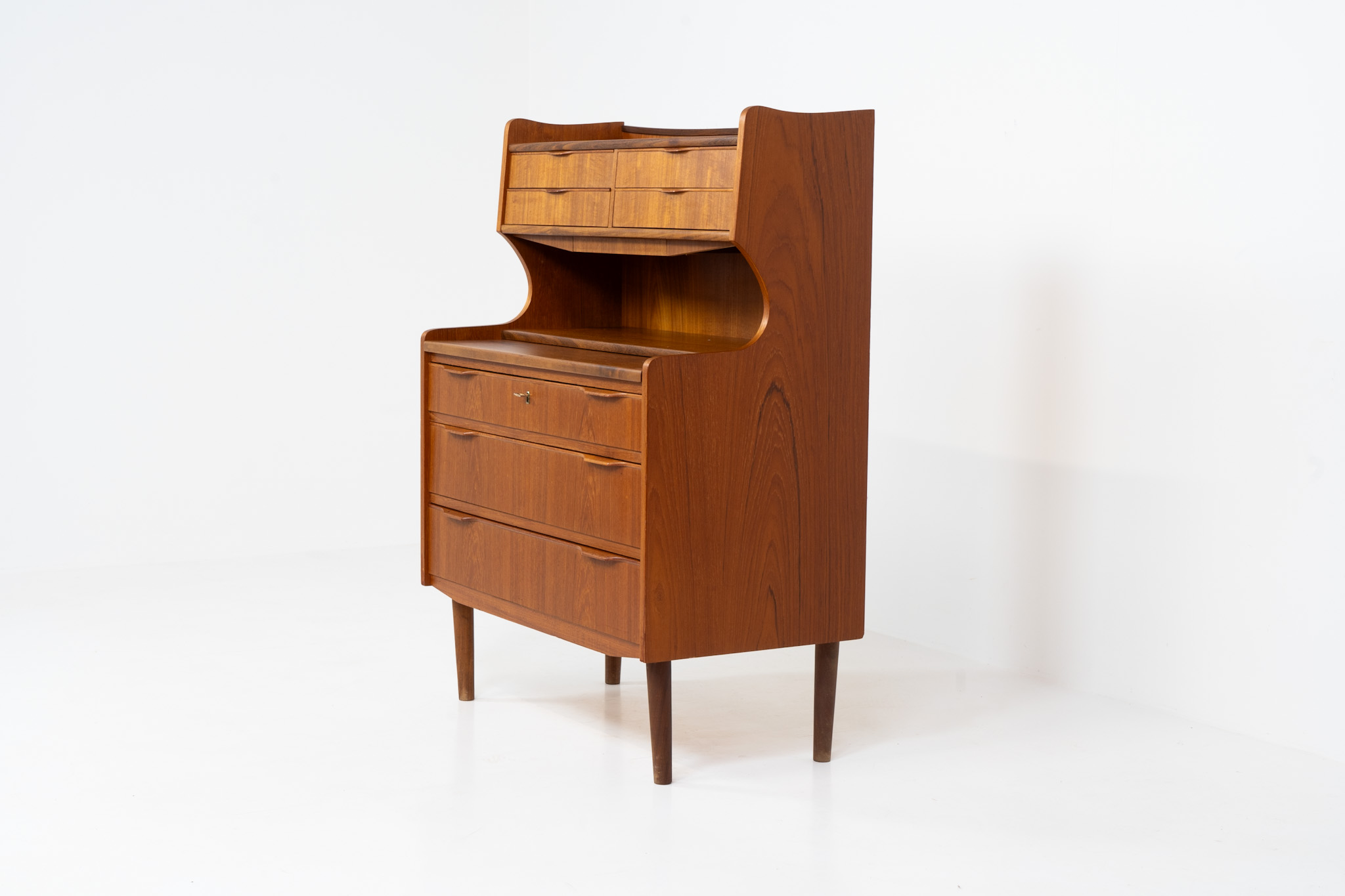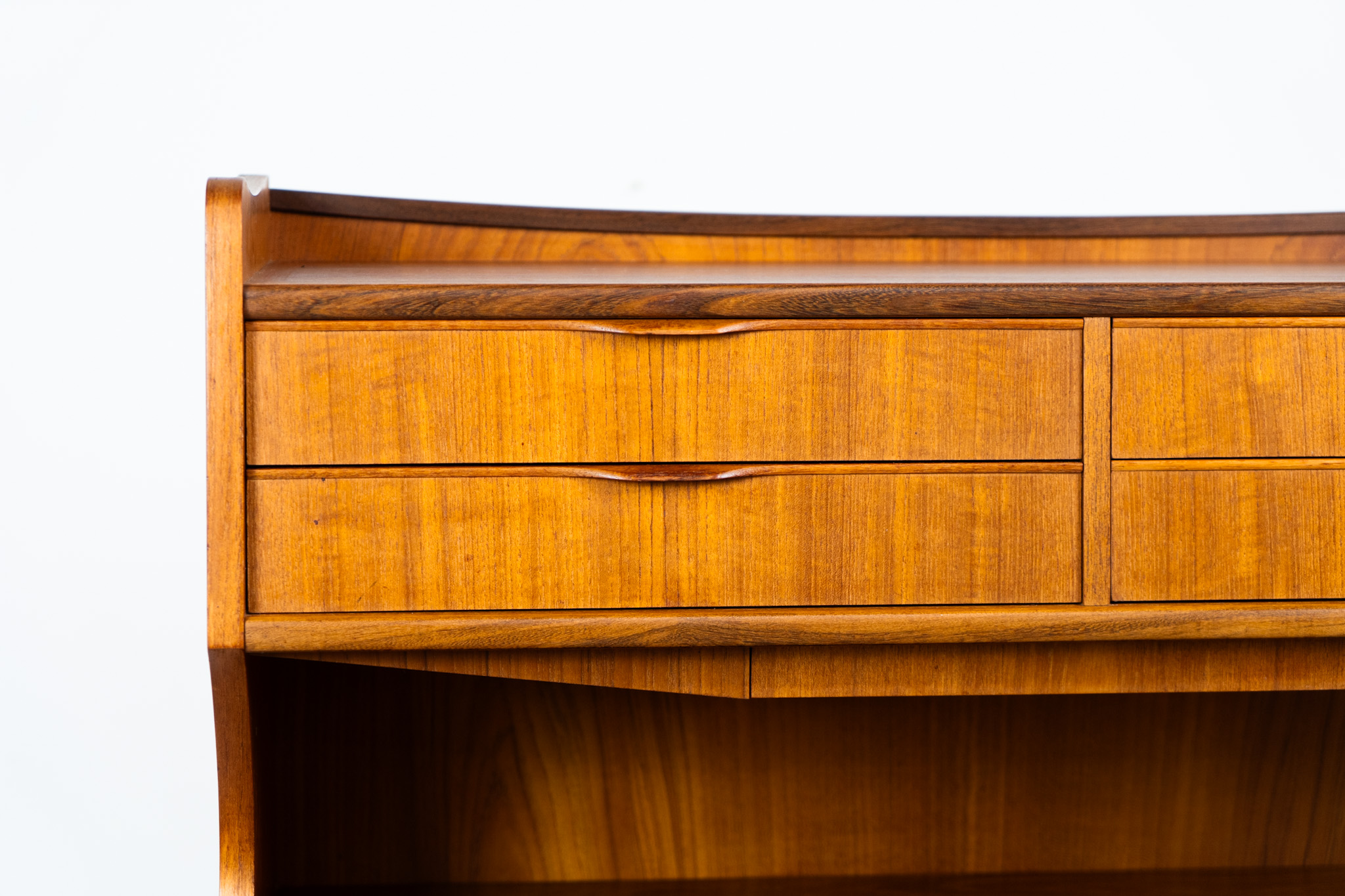 A highly versatile piece featuring seven drawers with beautiful handles, a pull-out leaf, a mirror and lots of storage space. A convenient piece that finds its way in any setting.