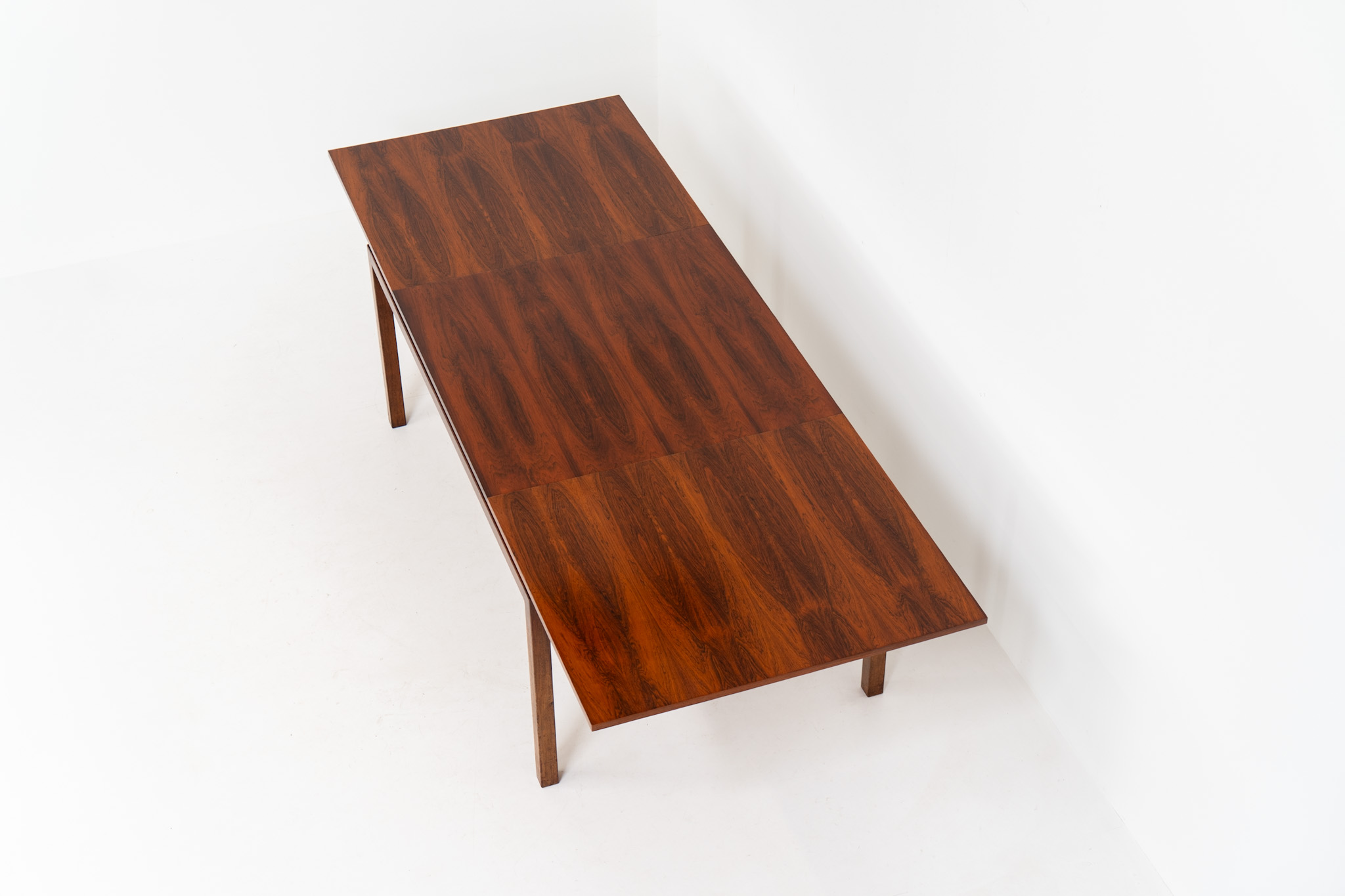 Exceptional dining table in rosewood by Alfred Hendrickx for Belform (Belgium, 1960s).
