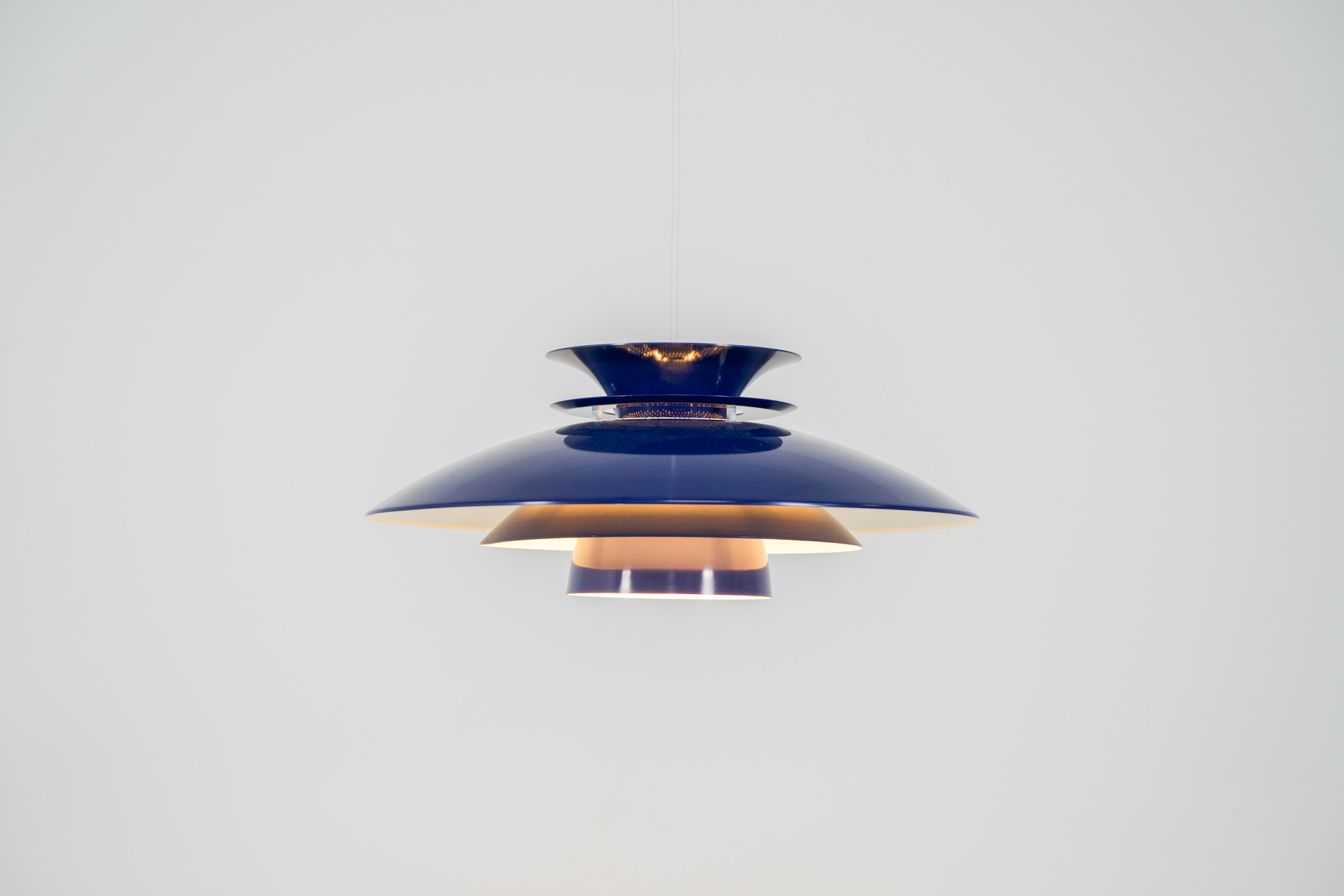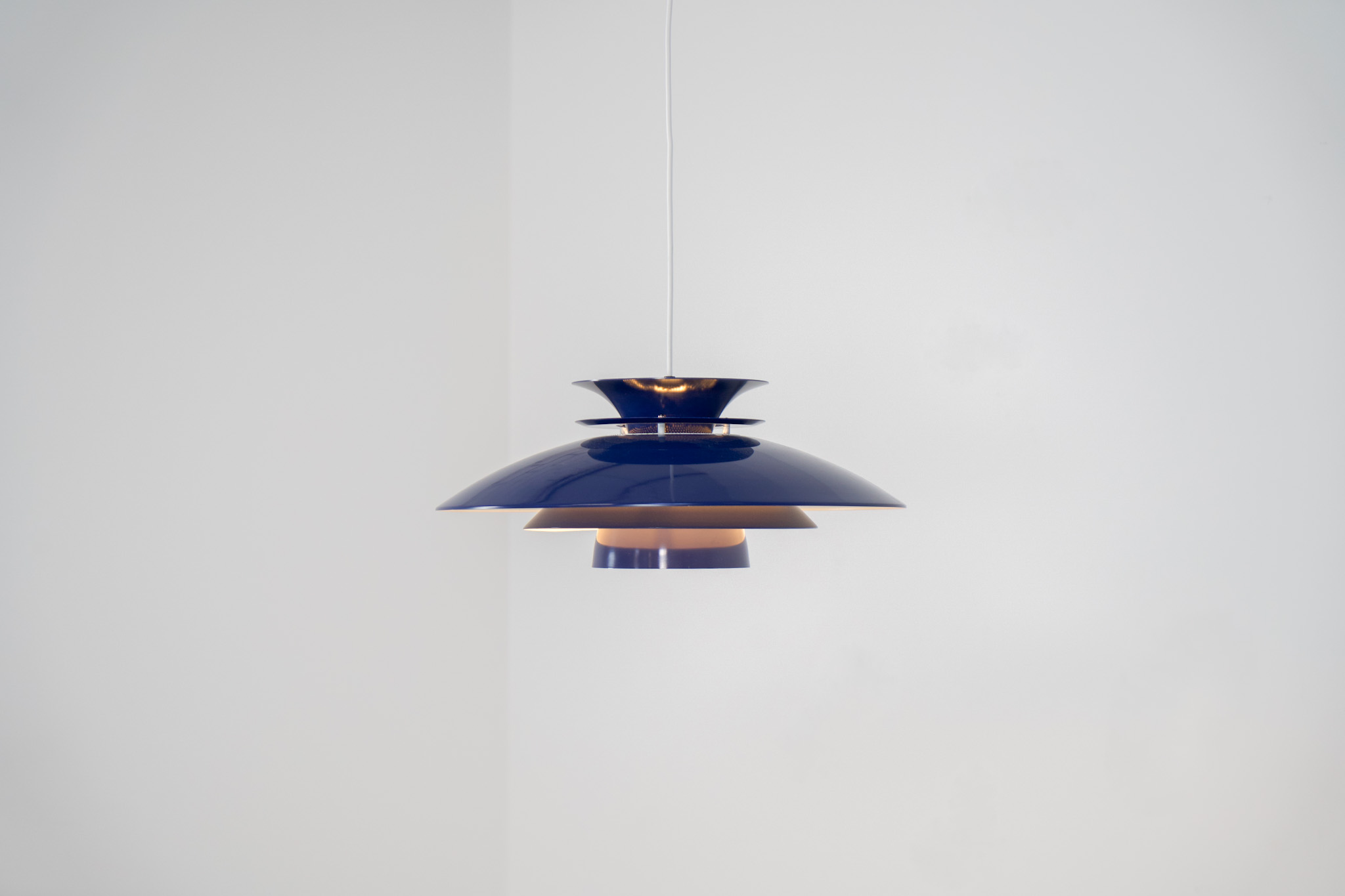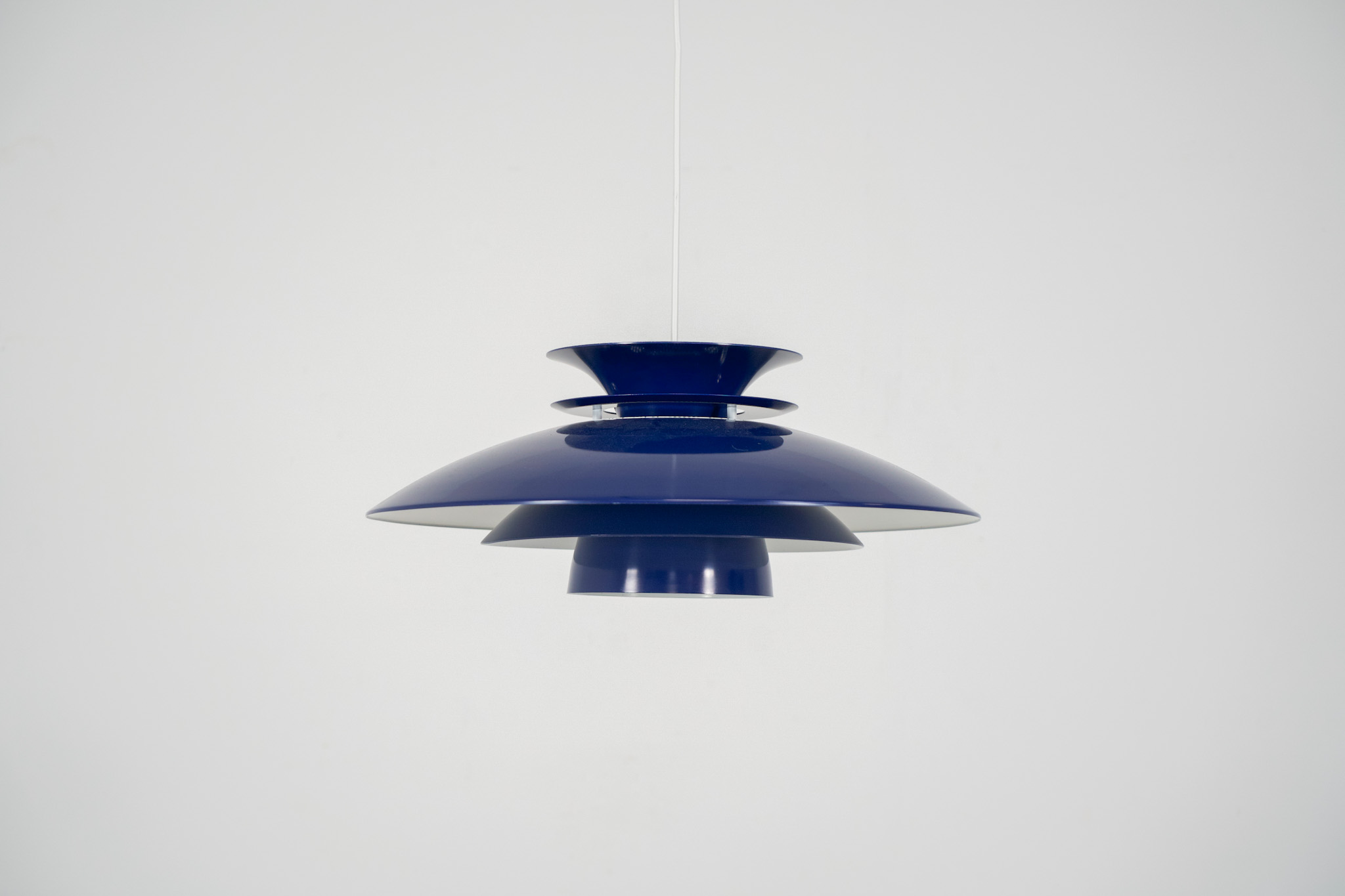 Elegant blue pendant light by Belux (Denmark, 1980s).
