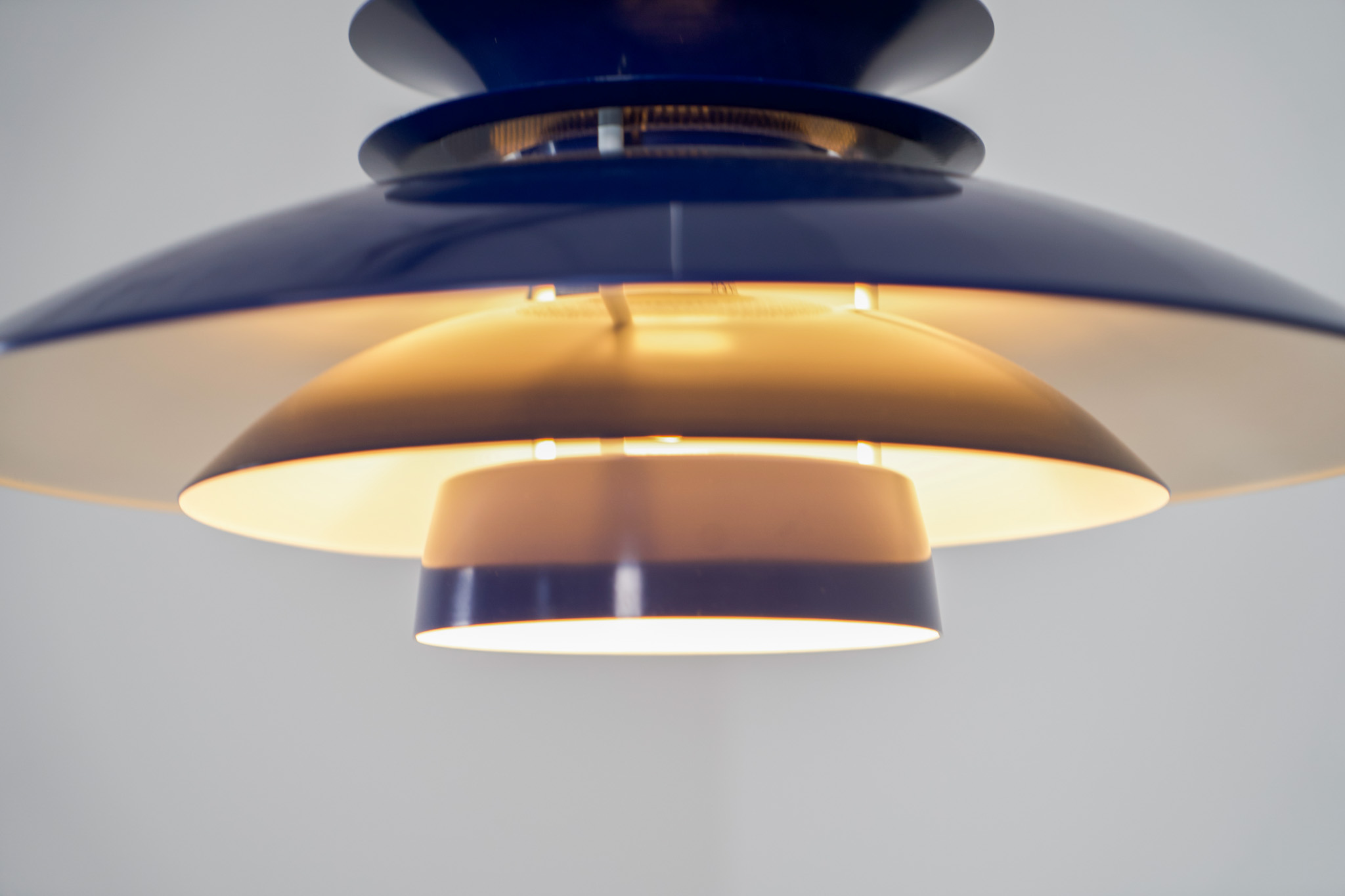 A beautiful pendant light crafted out of aluminium shades, lacquered in a vivid blue color.