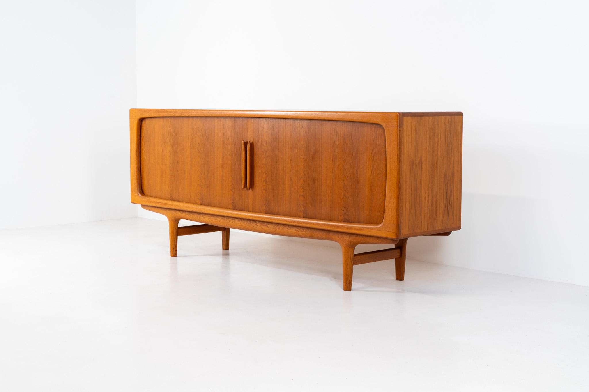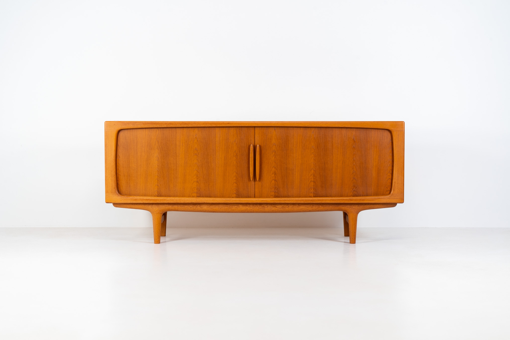 The sideboard is made out of teak and features stunning organic shapes and lots of amazing details, like the two big tambour doors and the rounded handles.