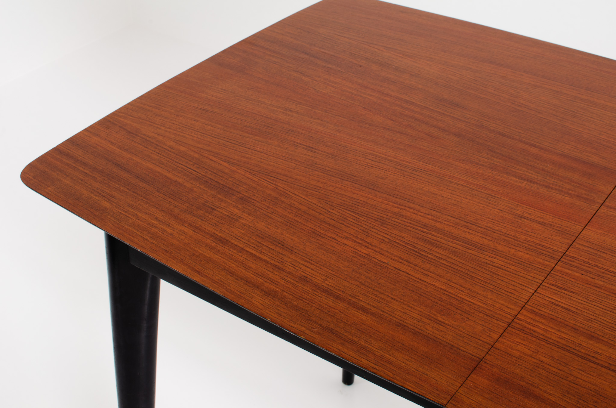 Extendable Bubinga dining table by Alfred Hendrickx for Belform (Belgium, 1950s).