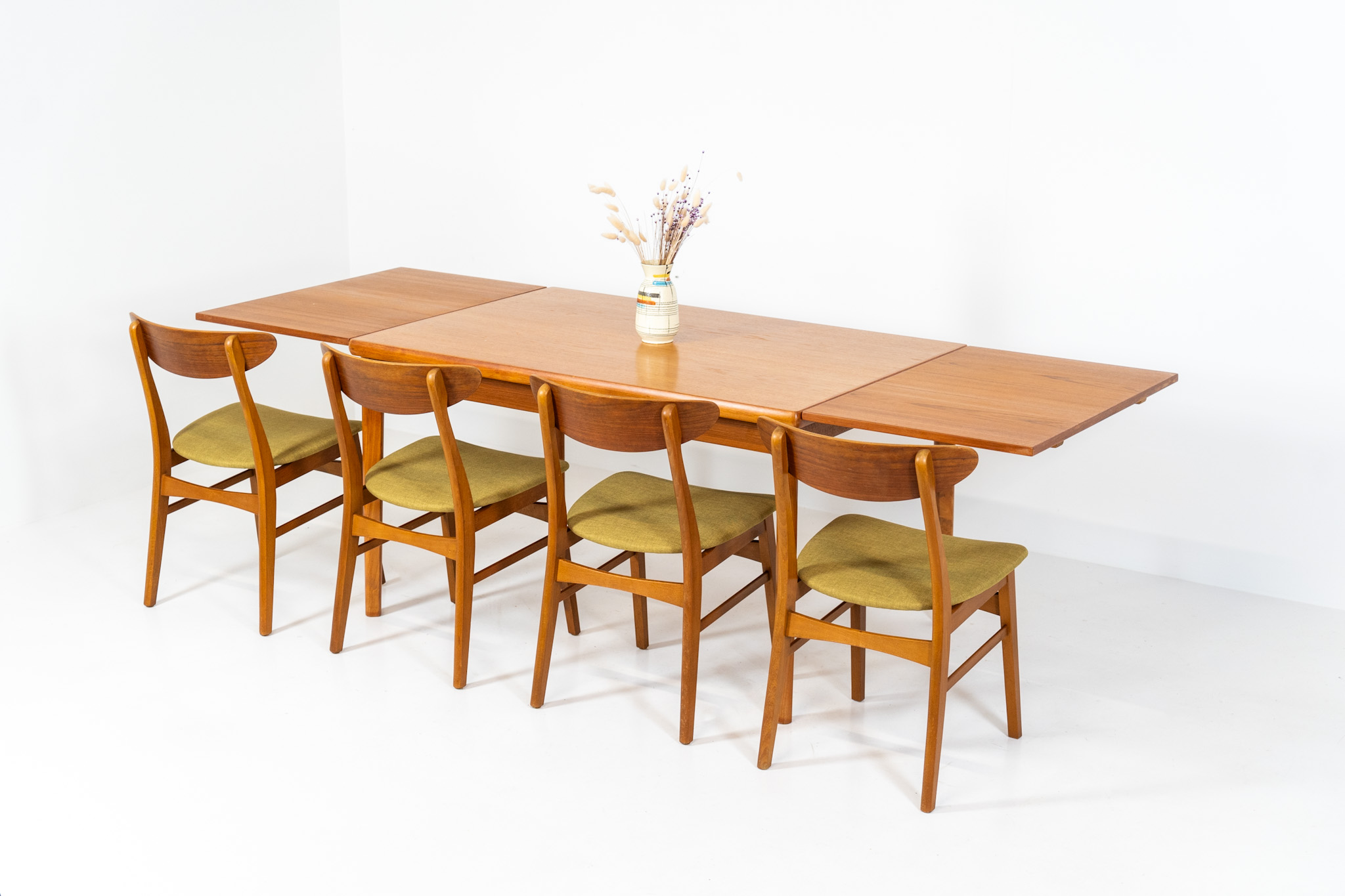 Extendable dining table by Henning Kjaernulf for Vejle Møbelfabrik (Denmark, 1960s).