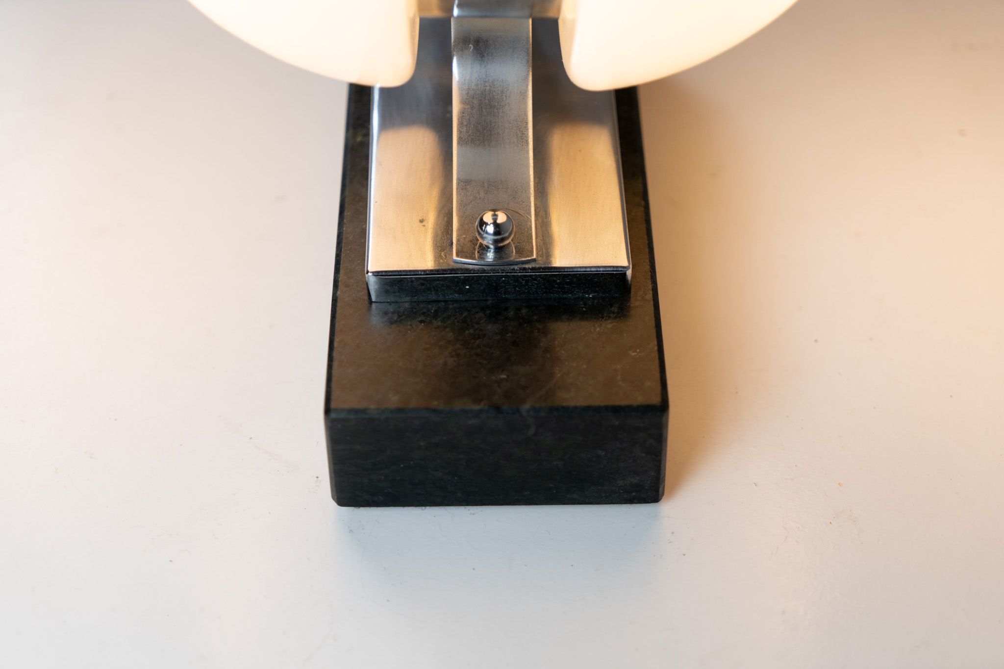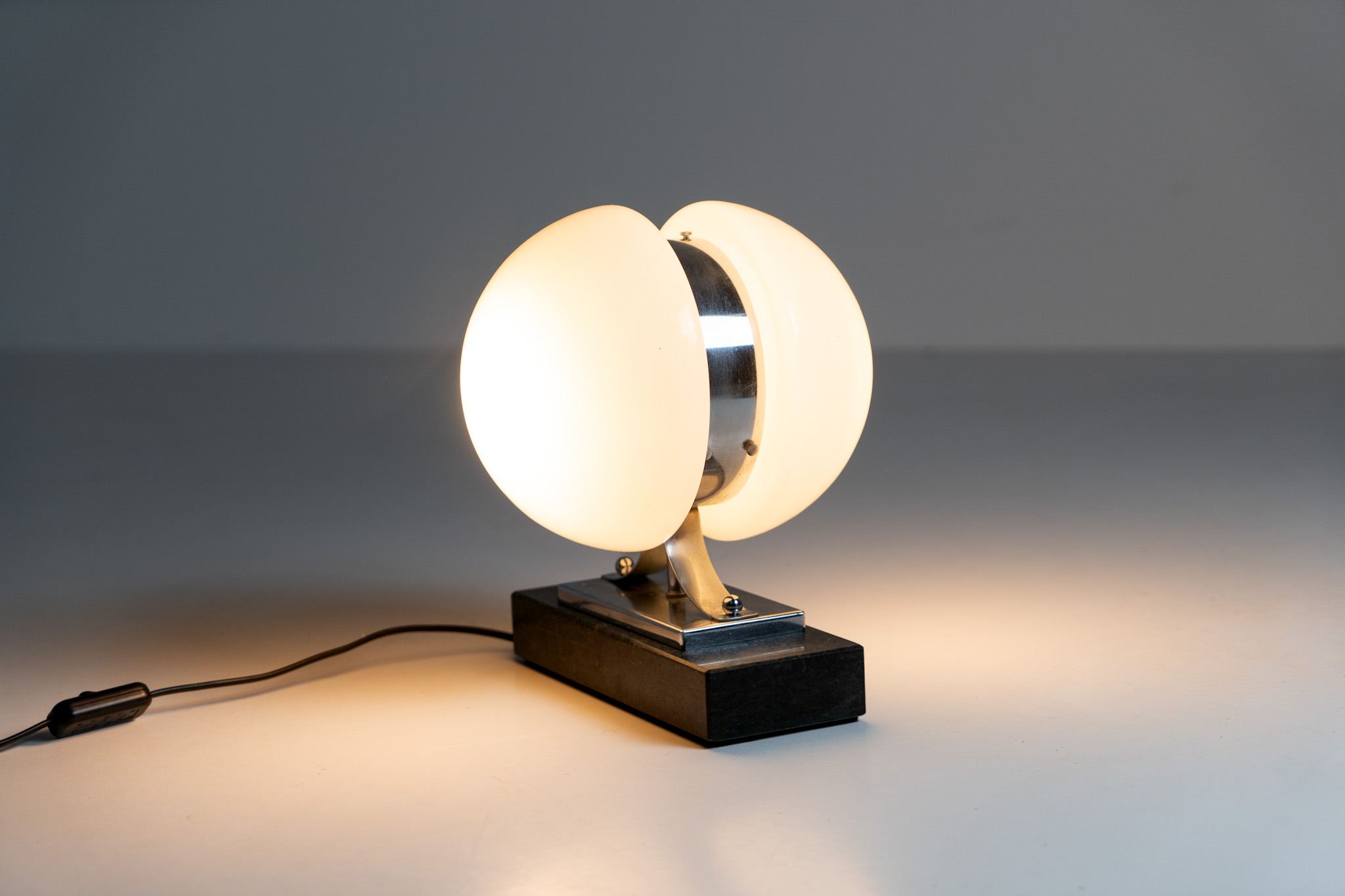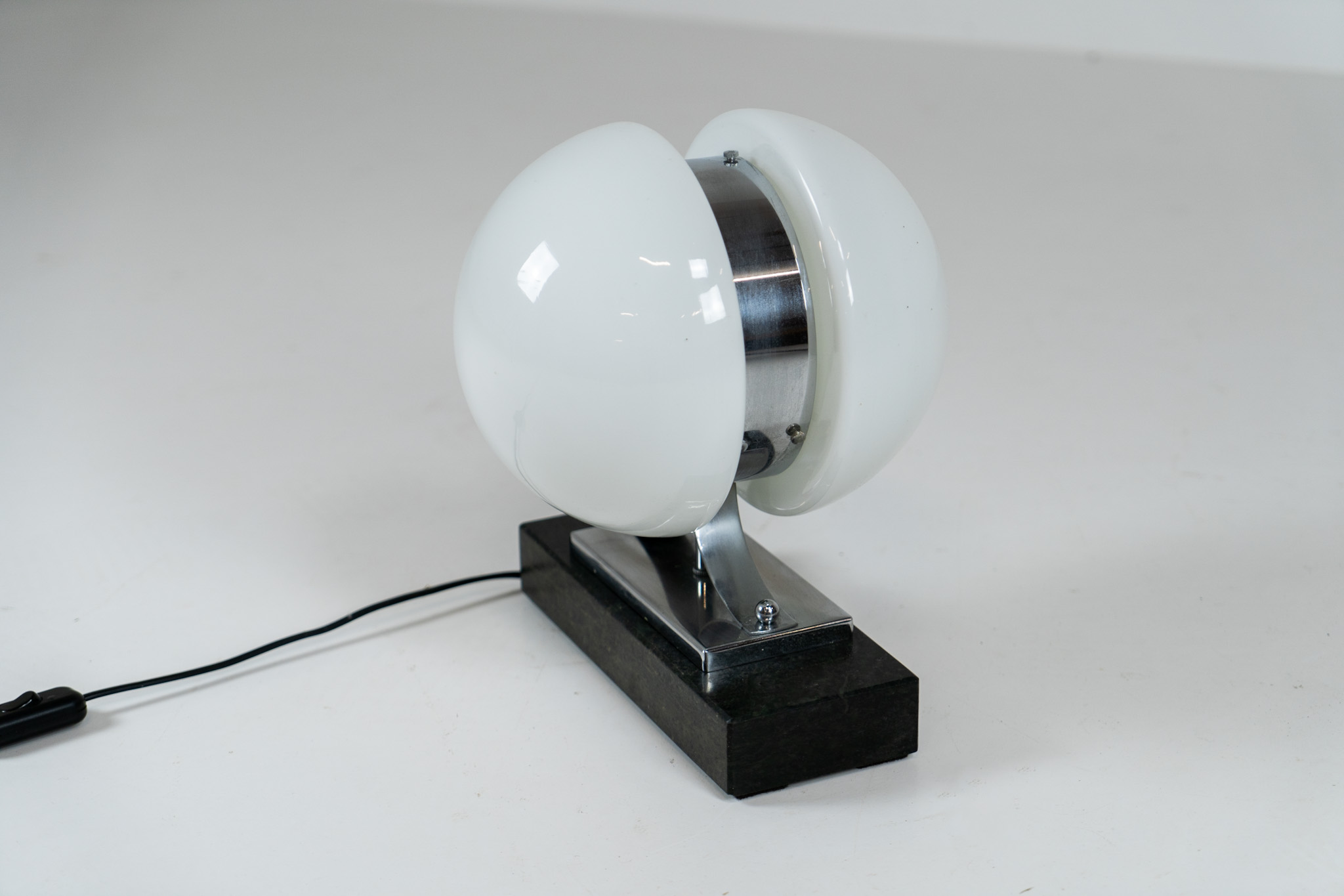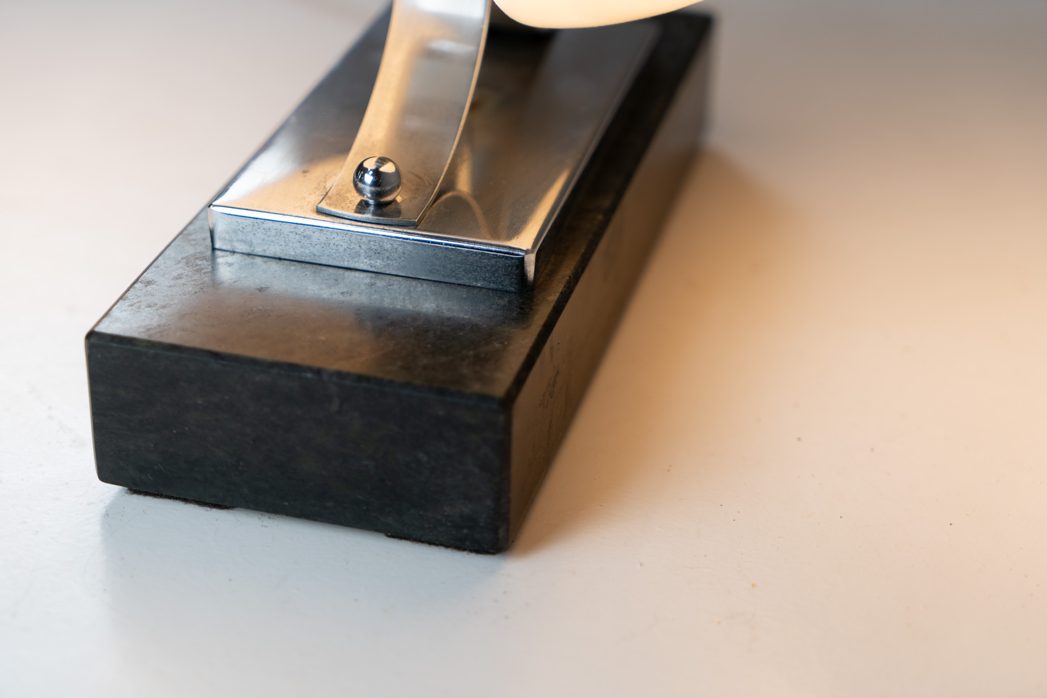 An amazing Space Age piece made out of chrome & Murano glass, standing on an Italian marble foot.