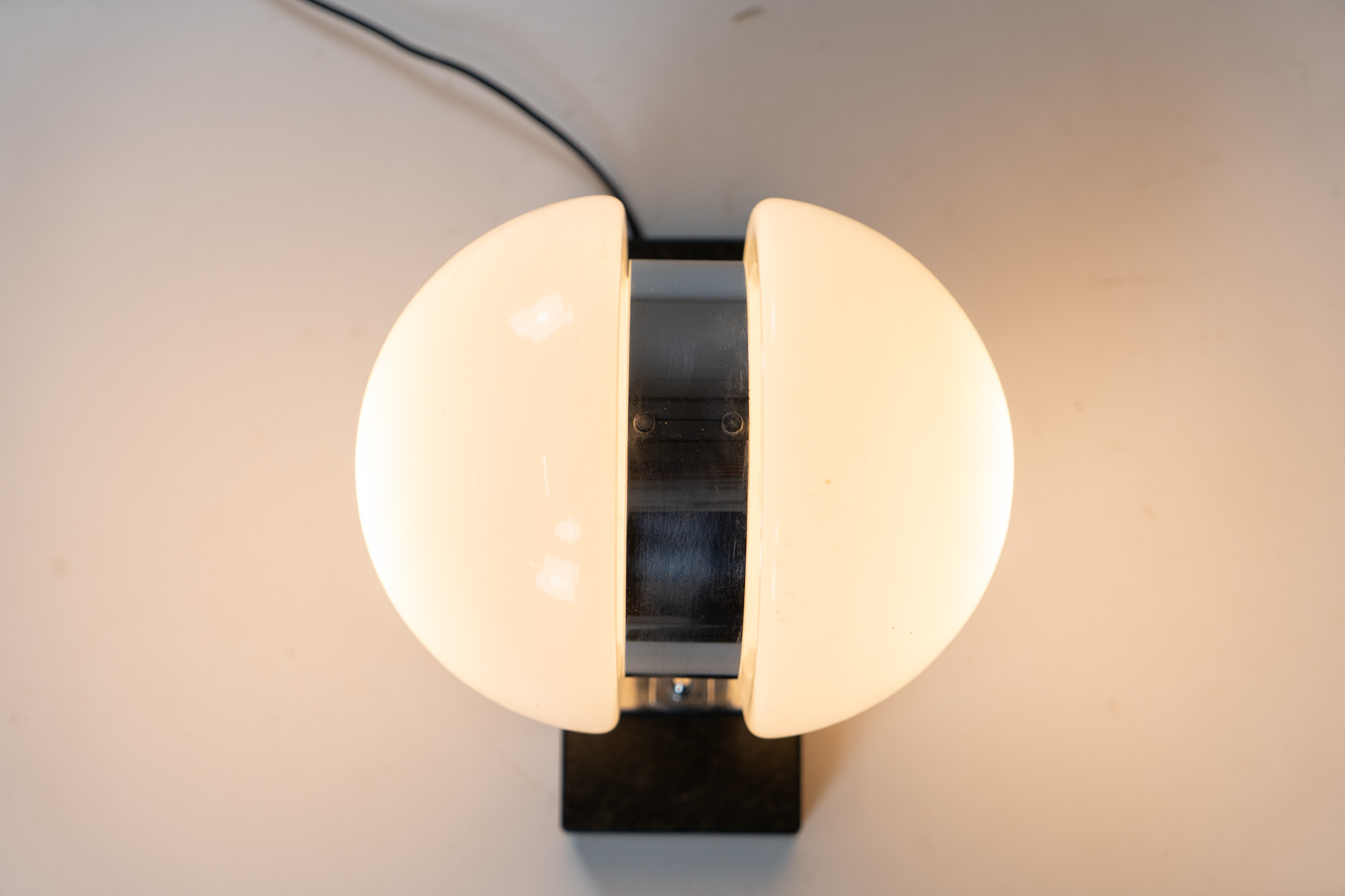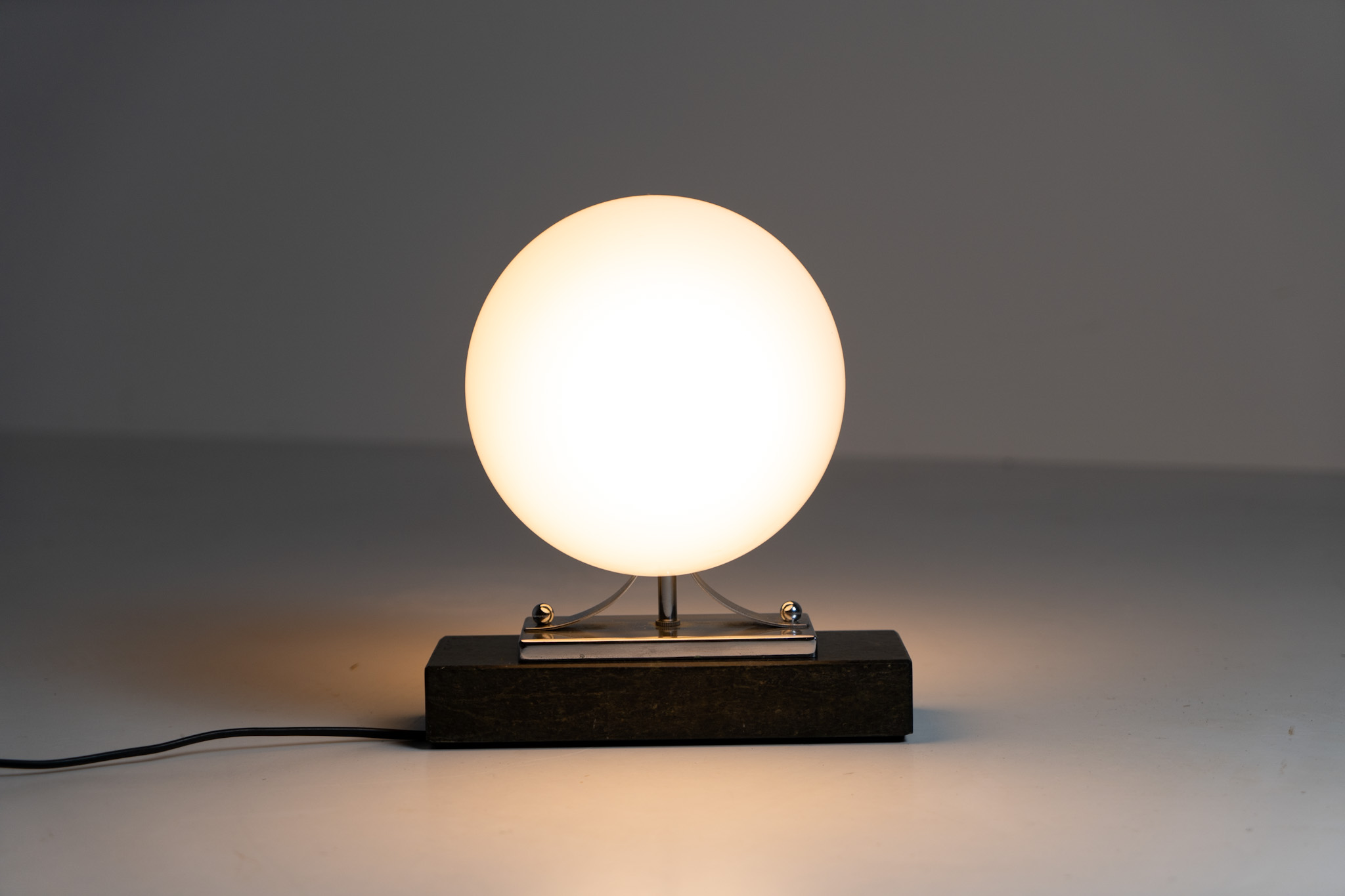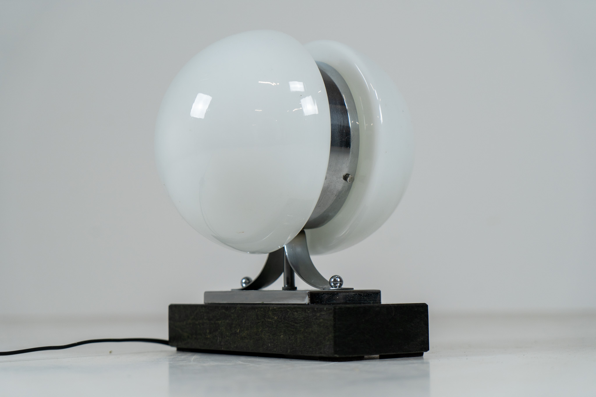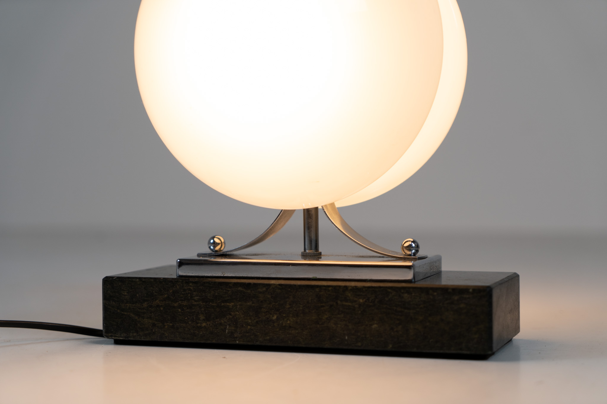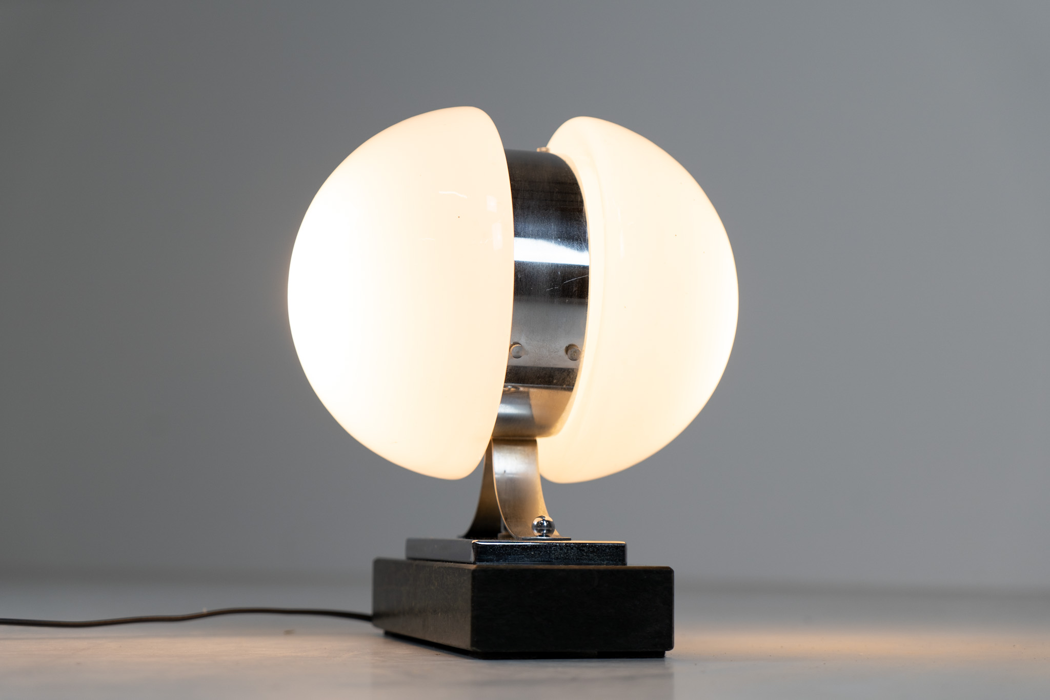 An amazing Space Age piece made out of chrome & Murano glass, standing on an Italian marble foot.