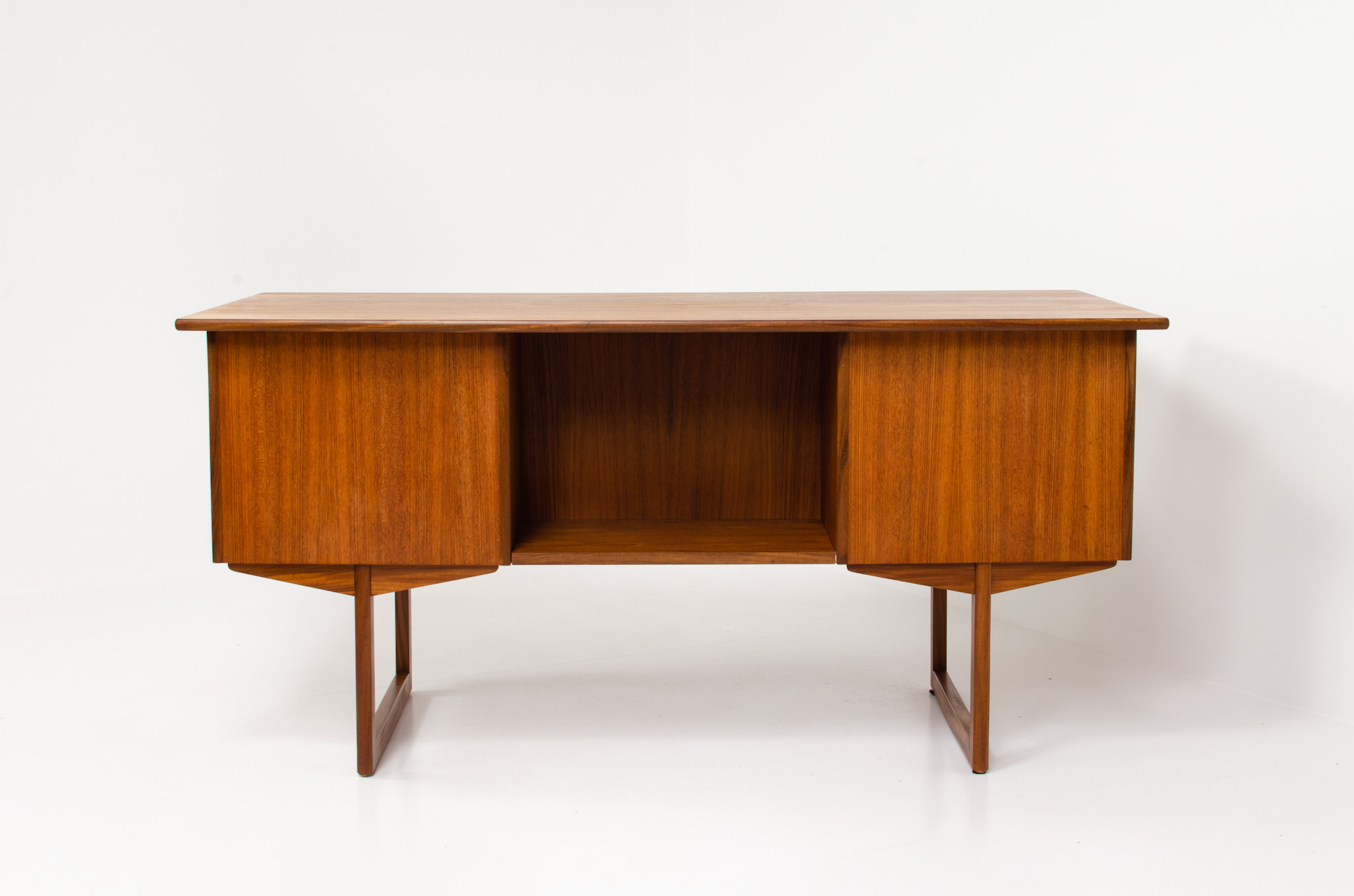 Large freestanding desk with sled base (Denmark, 1960s).