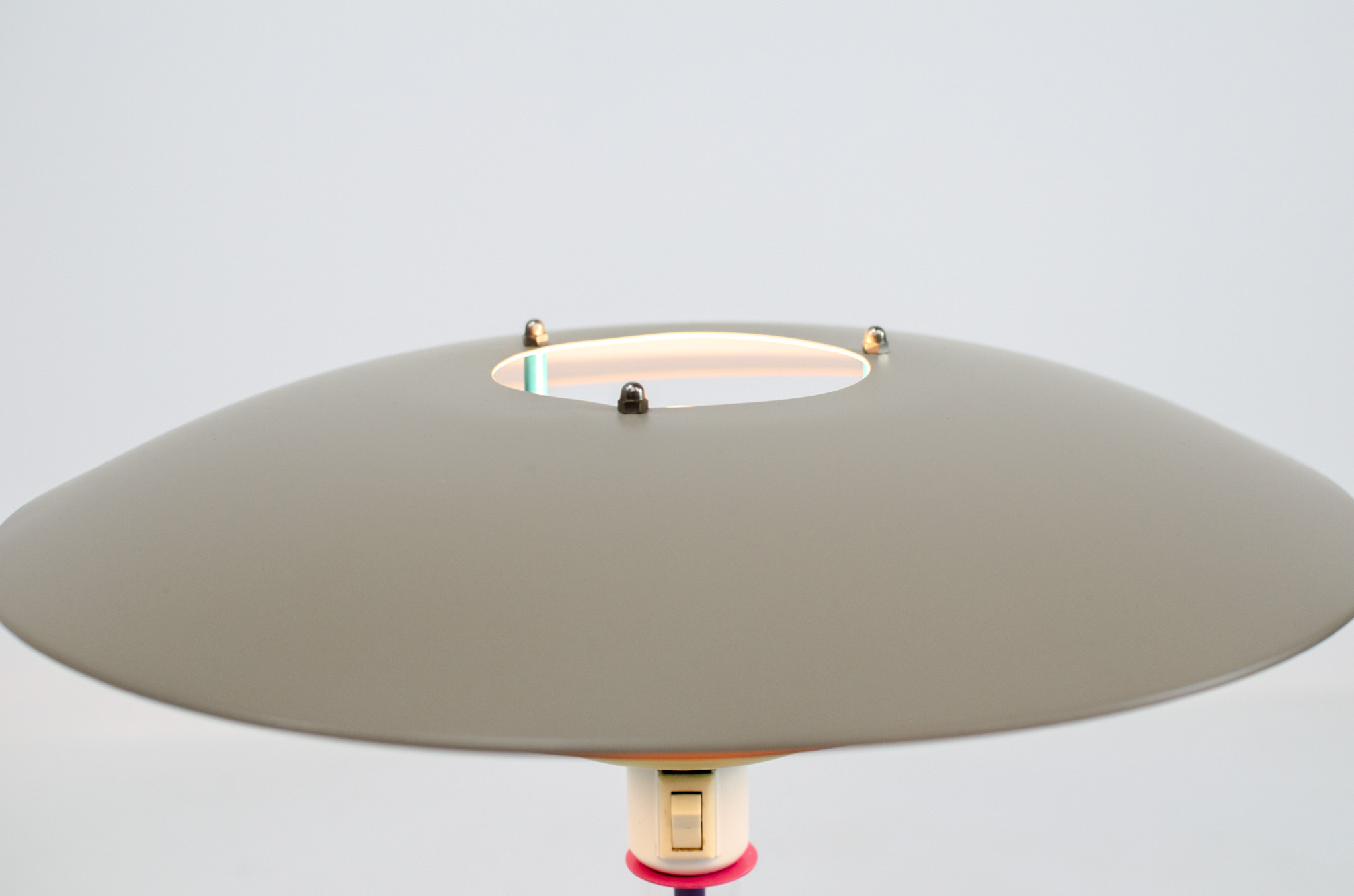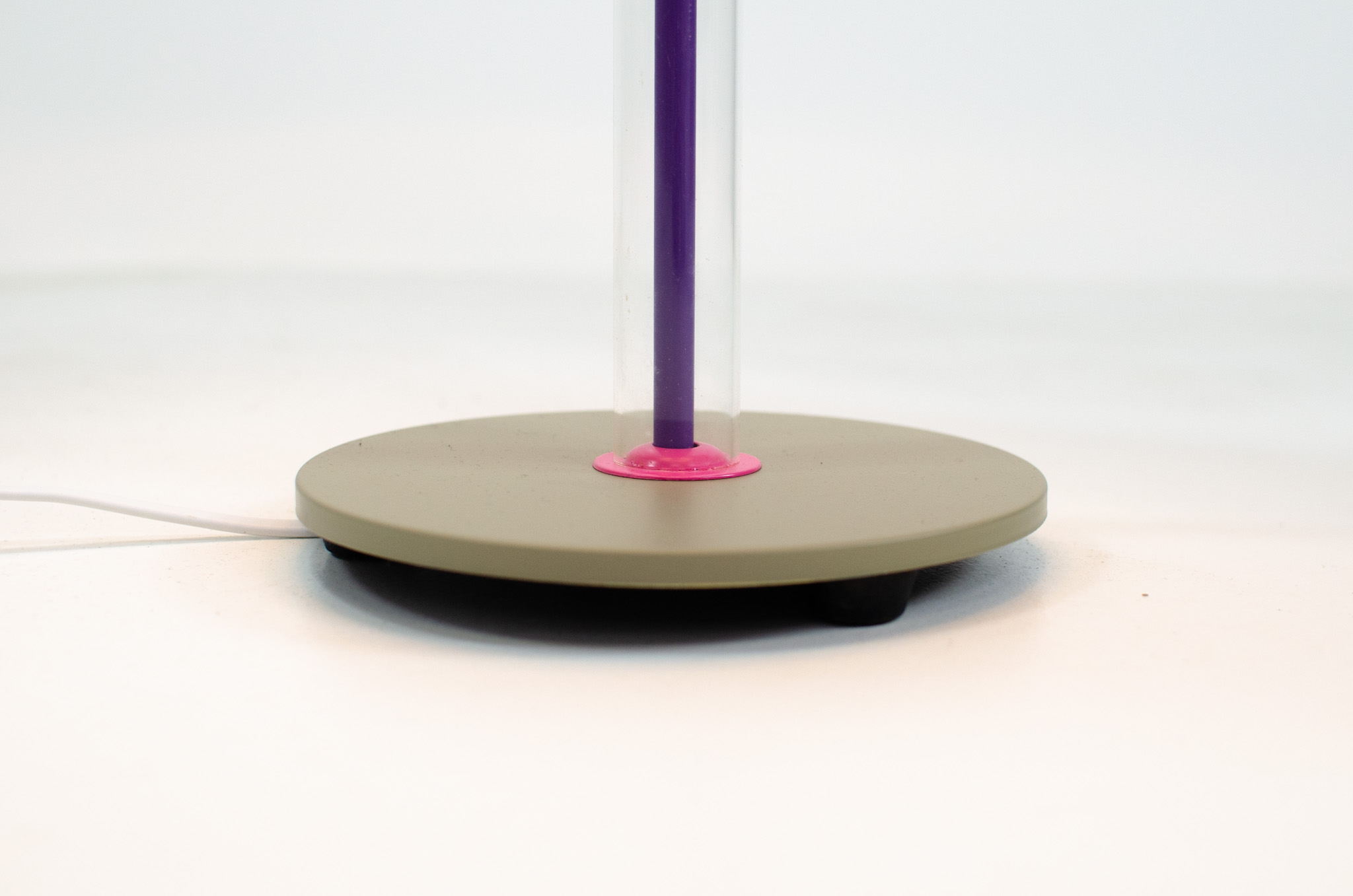 A space age table lamp with a sleek yet funky design & color combination.