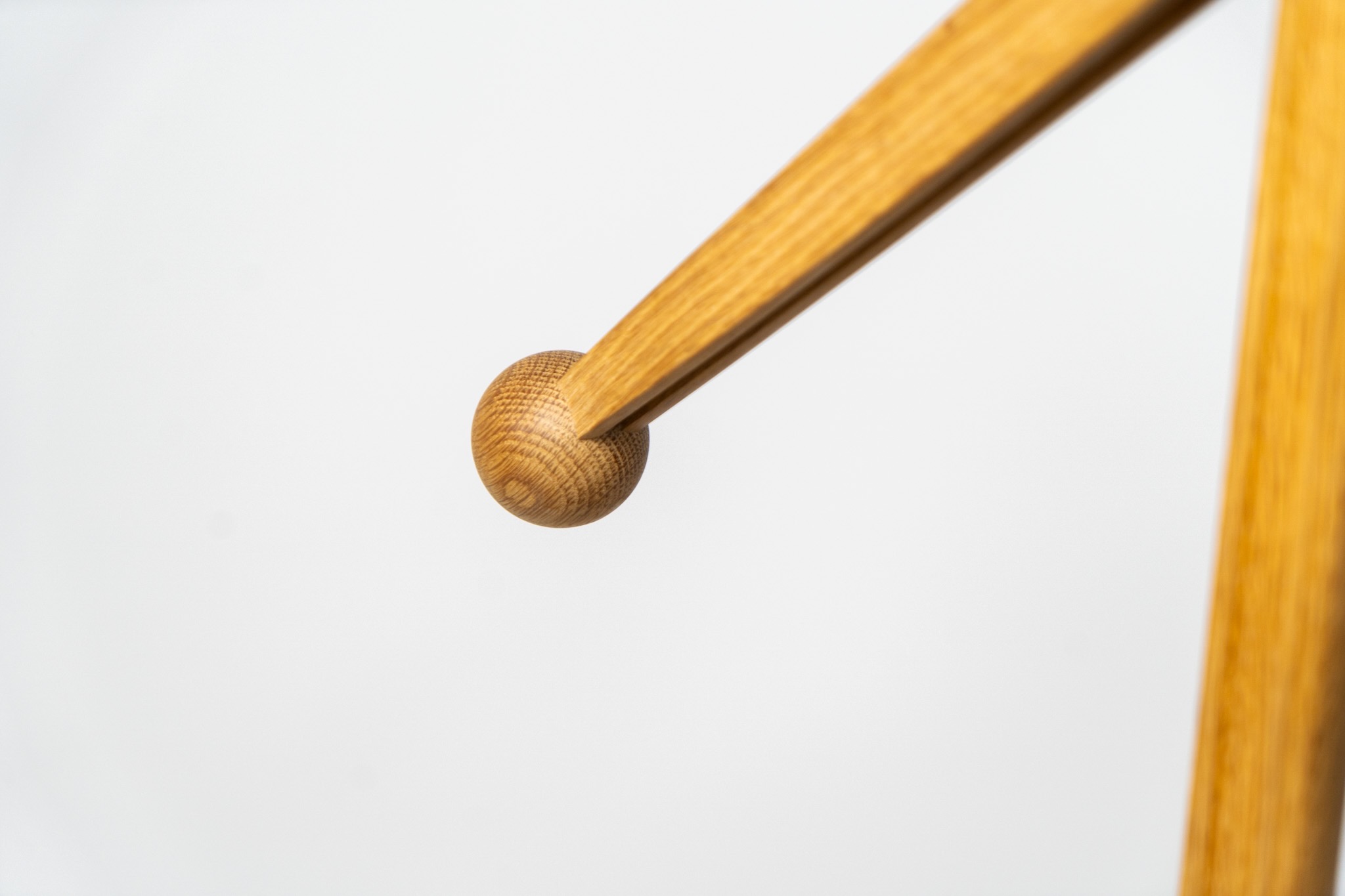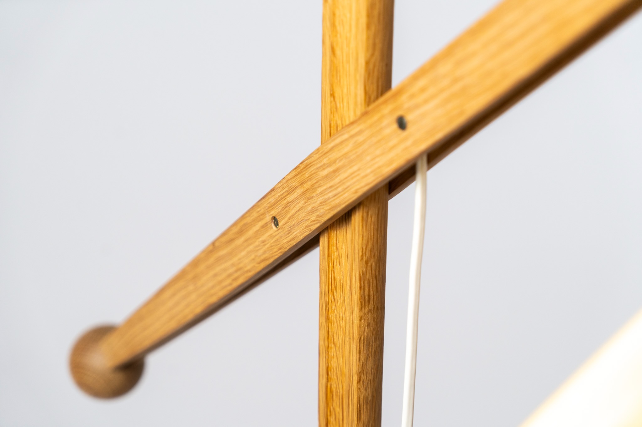 A wonderful design classic featuring a lacquered steel base, a solid oak body and a brass shade mount.