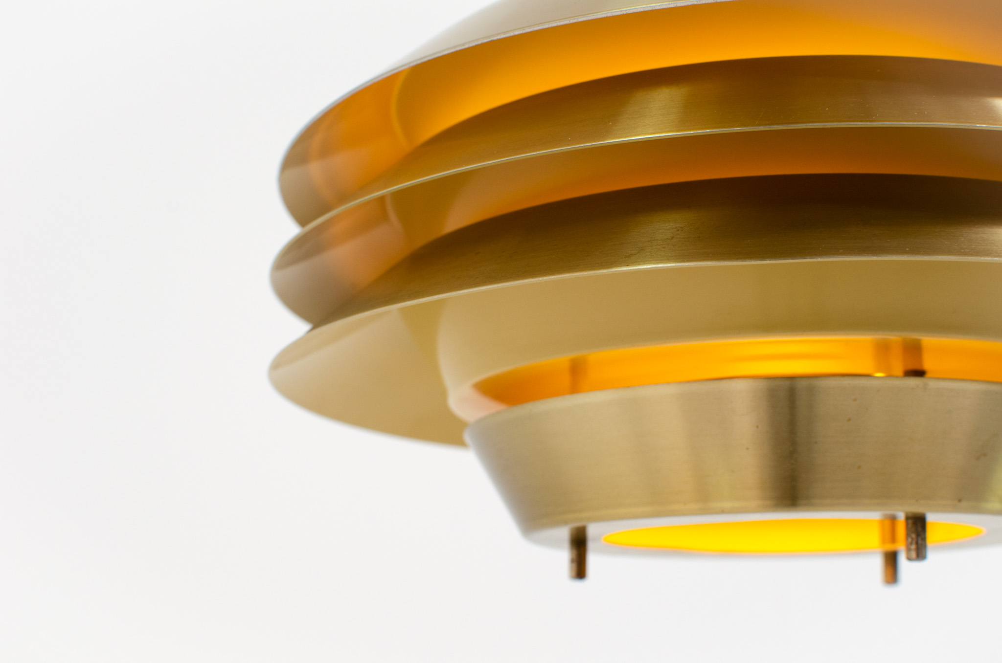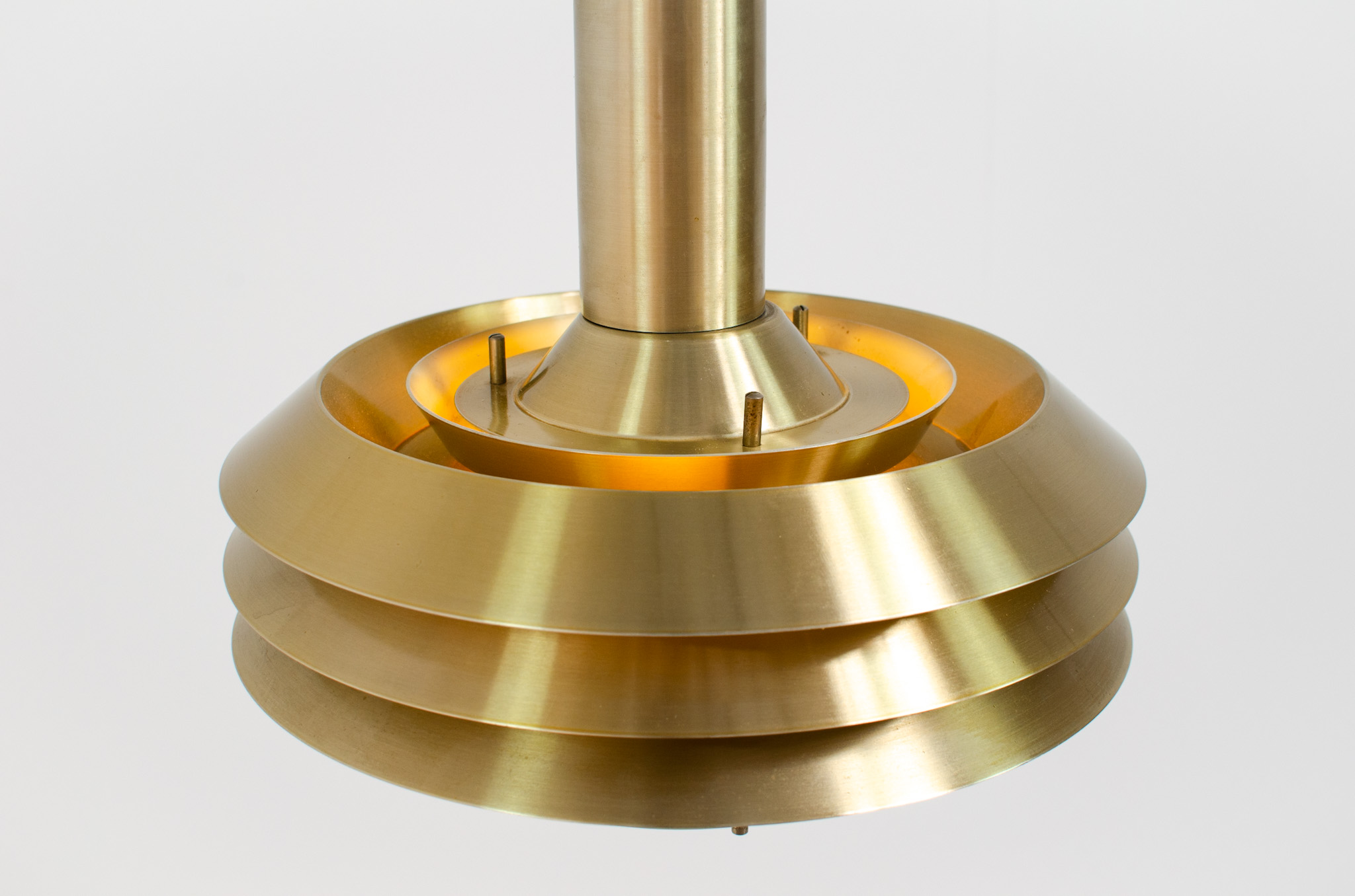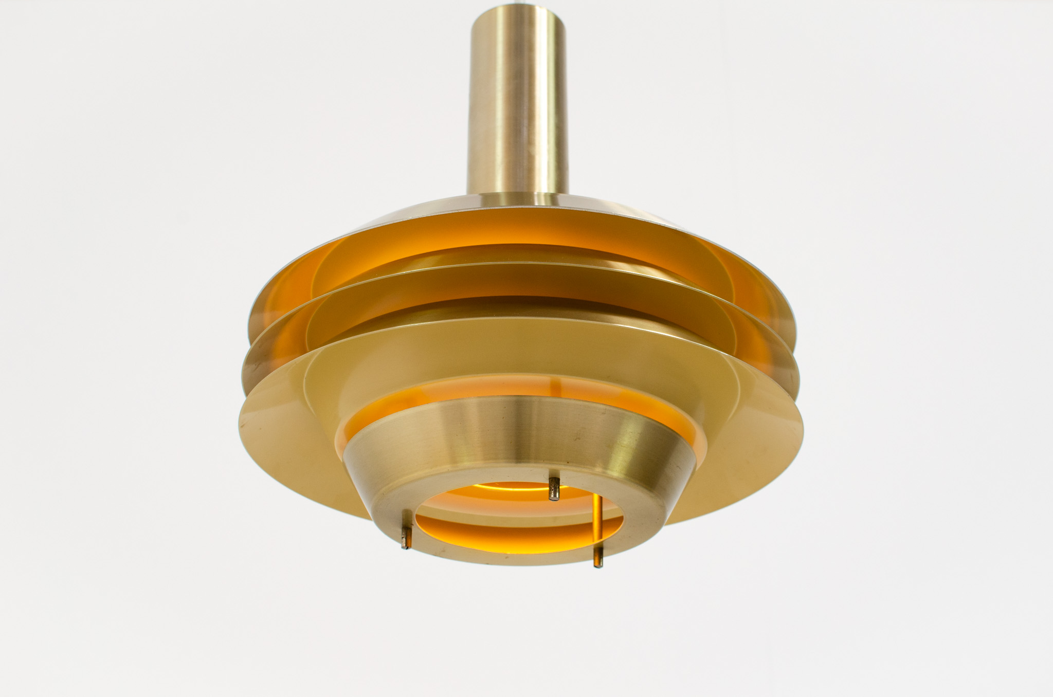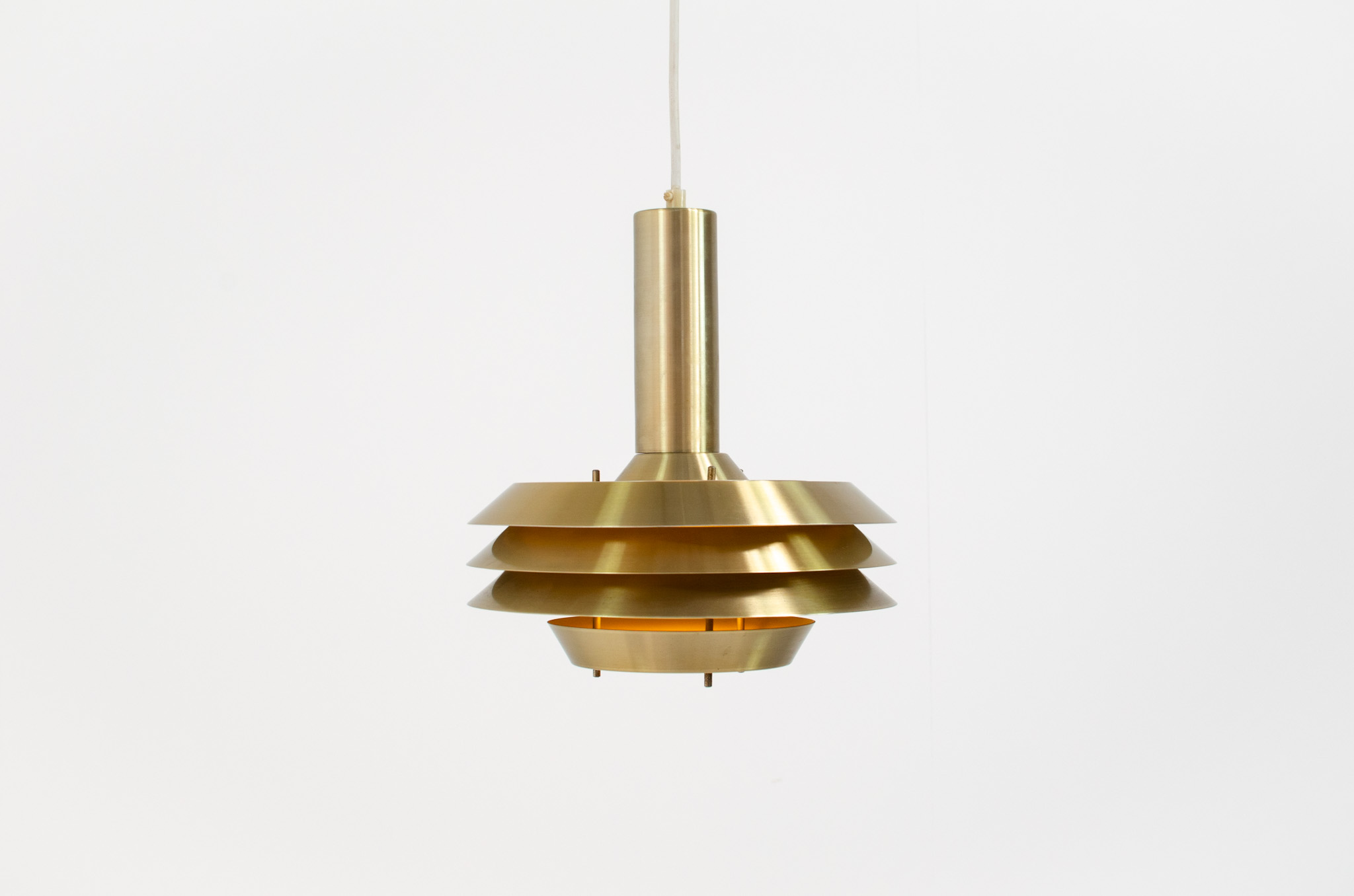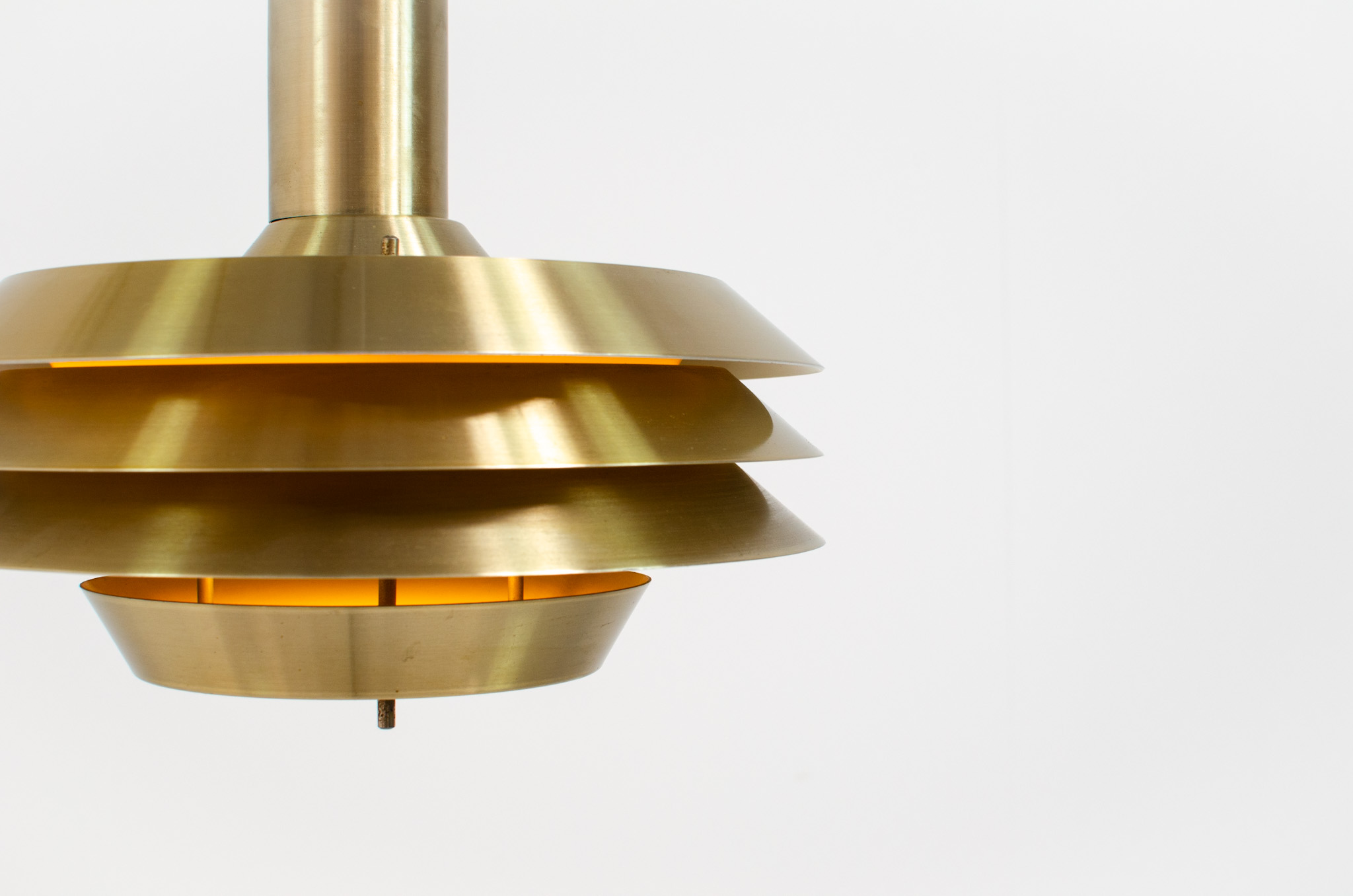 Brass colored Model 705 pendant light by Lyskaer (Denmark, 1970s).