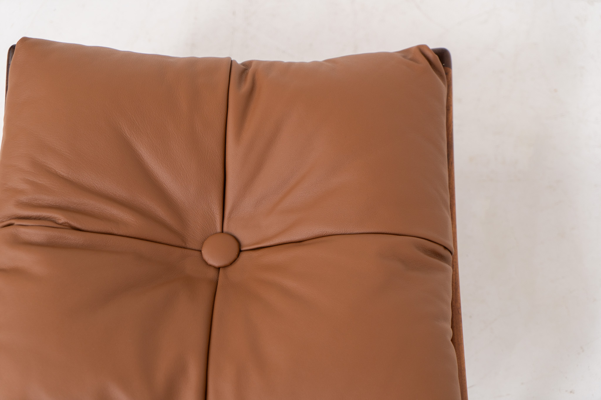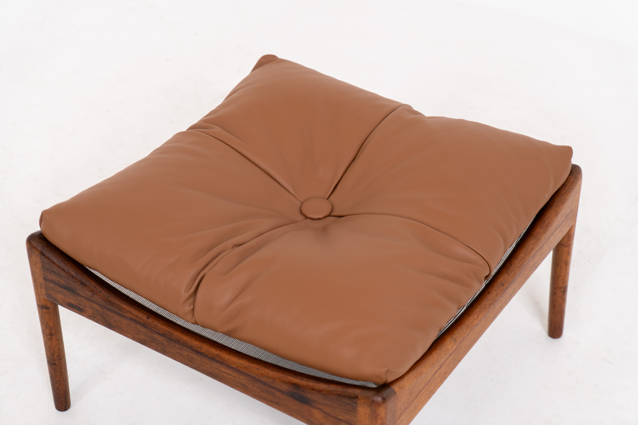 This exceptional piece featured an elegant solid rosewood frame and the original cushion, newly upholstered in cognac leather.