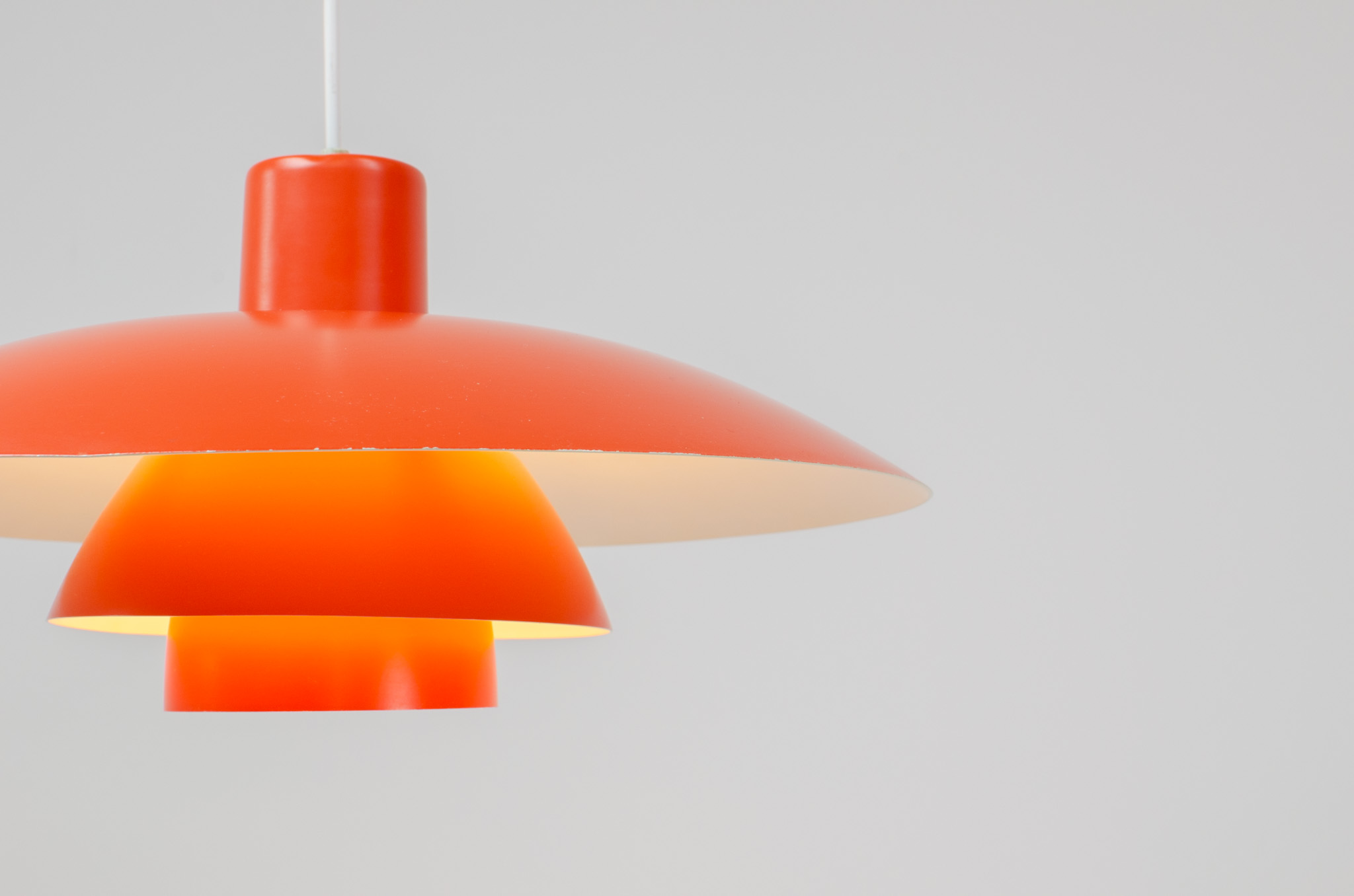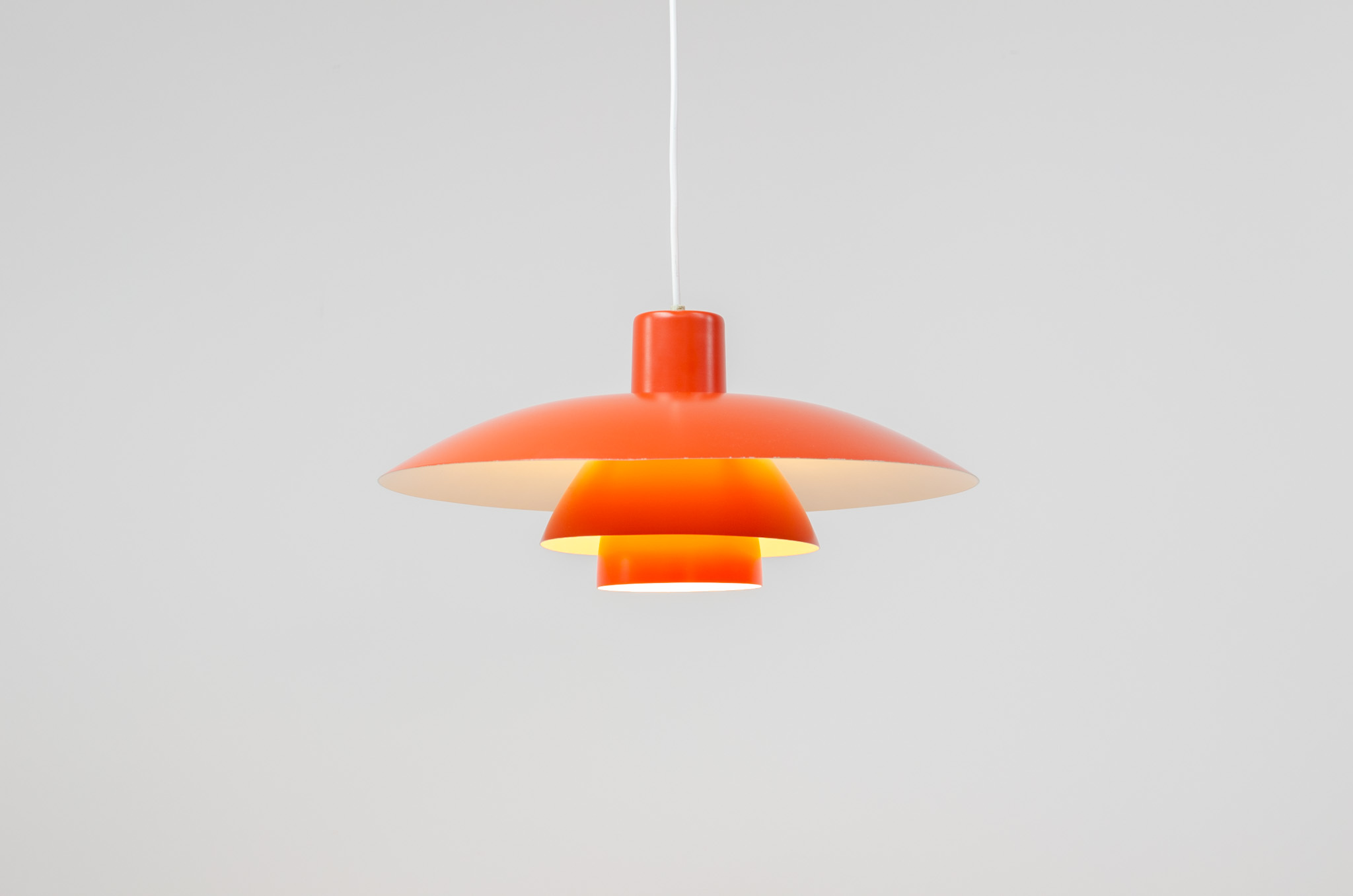 Orange PH4/3 pendant light by Poul Henningsen for Louis Poulsen (Denmark, 1960s).