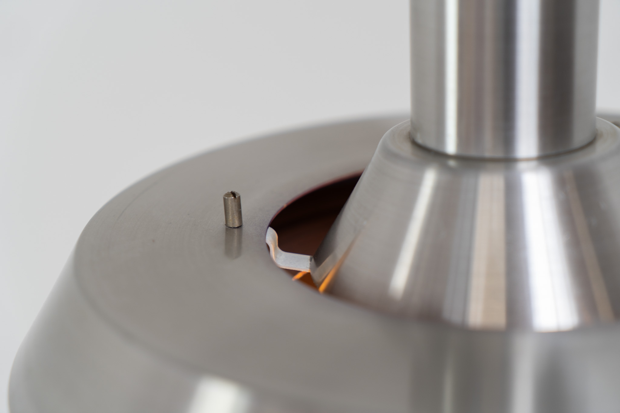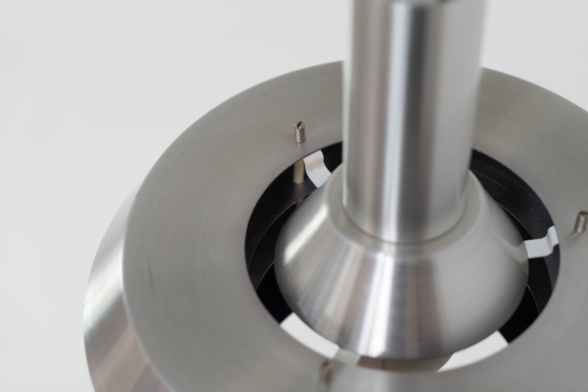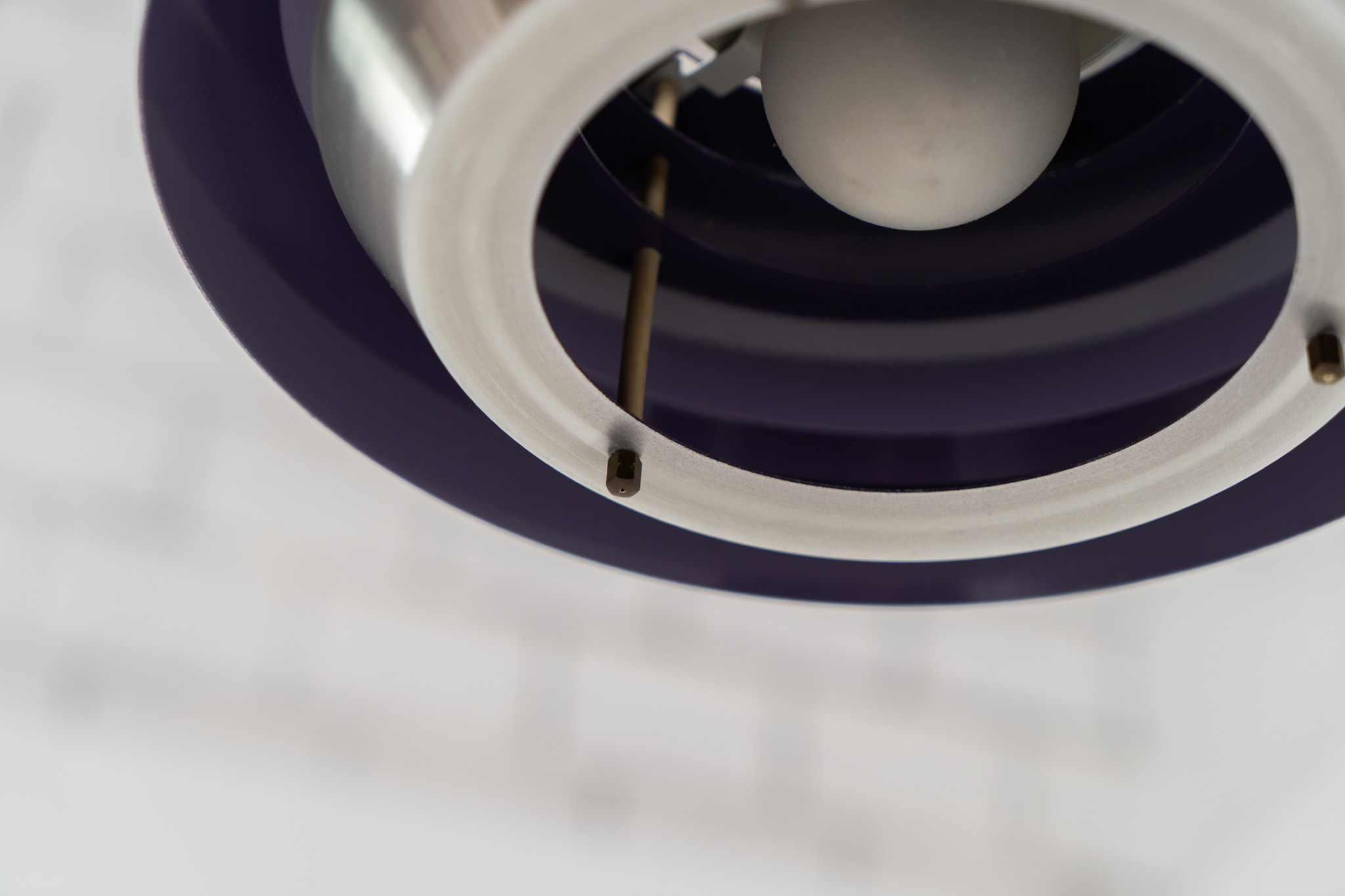 An amazing design crafted out of four brushed aluminium shades. The inside is lacquered in purple which gives a beautiful effect when the light is turned on, and a colorful touch when it is turned off.