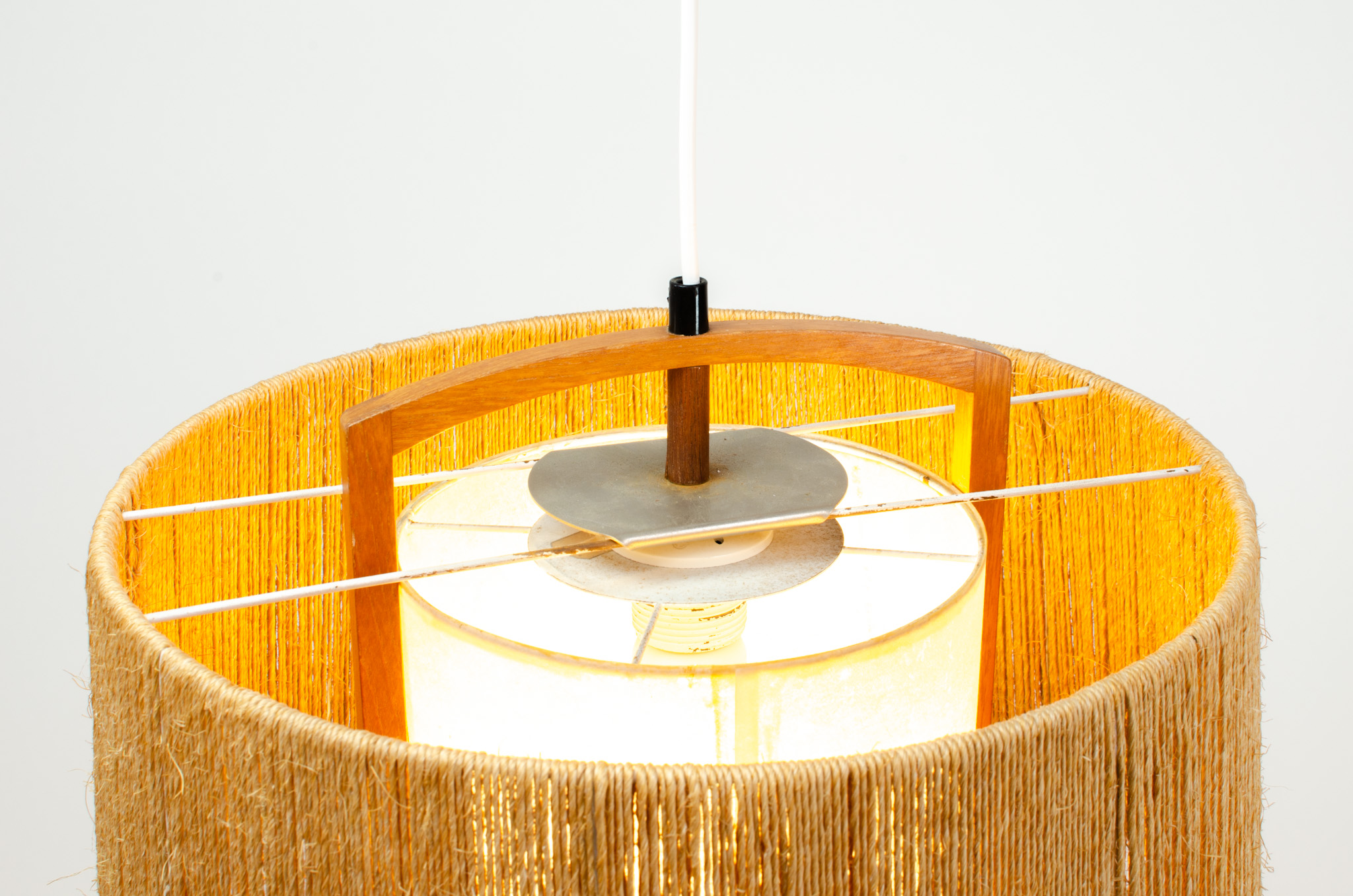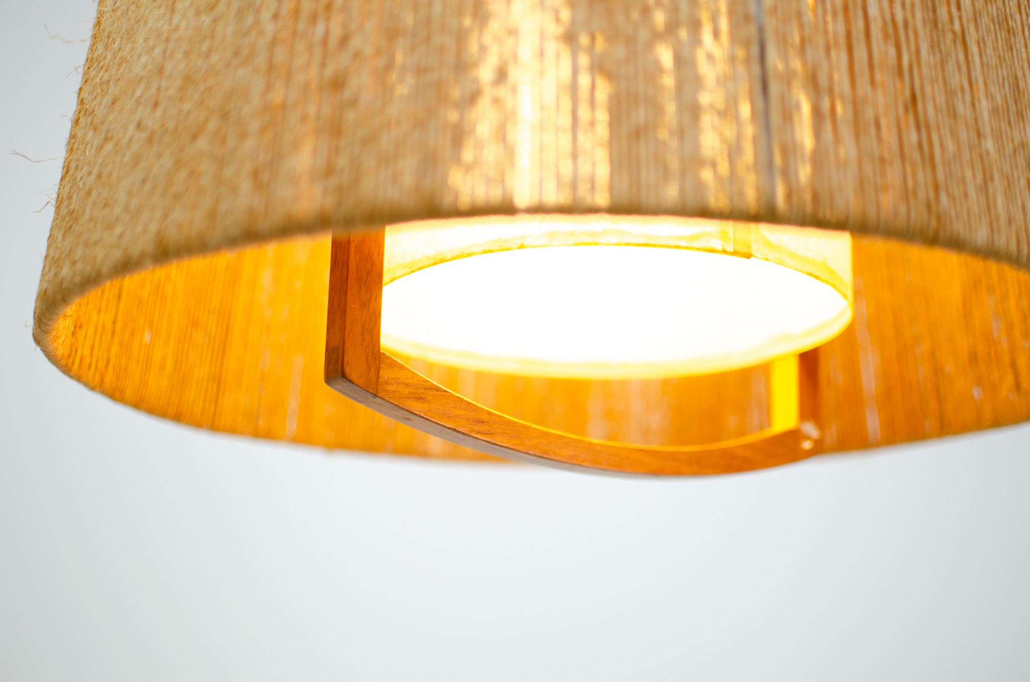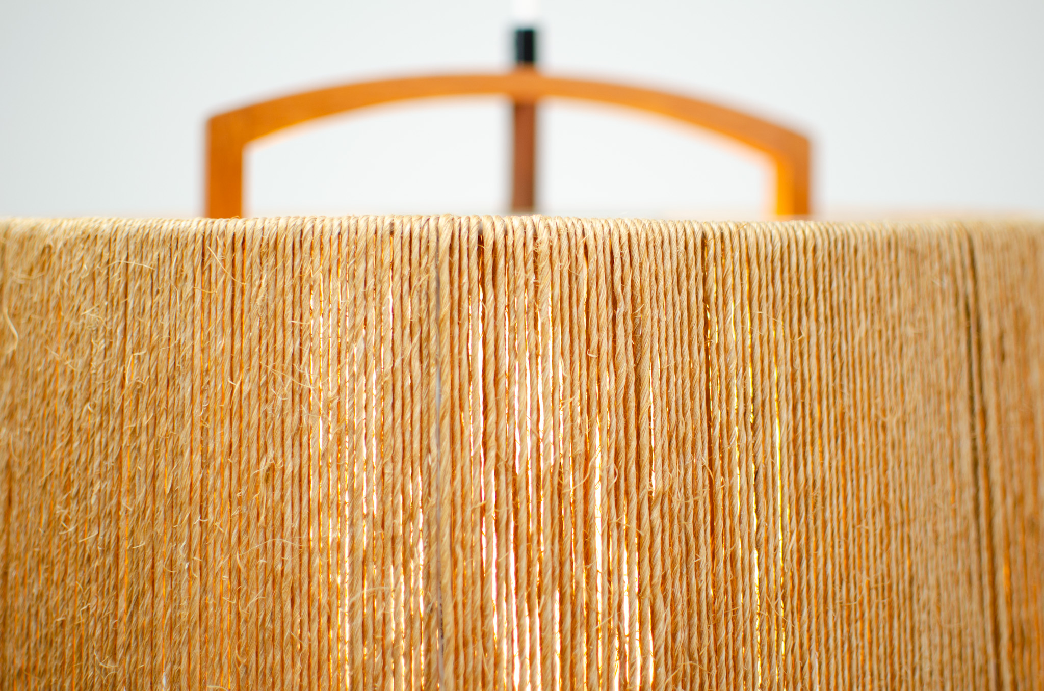 The shade is wrapped with sisal rope and features some very nice teak detail. A stunning piece that will elevate the ambience of any room.