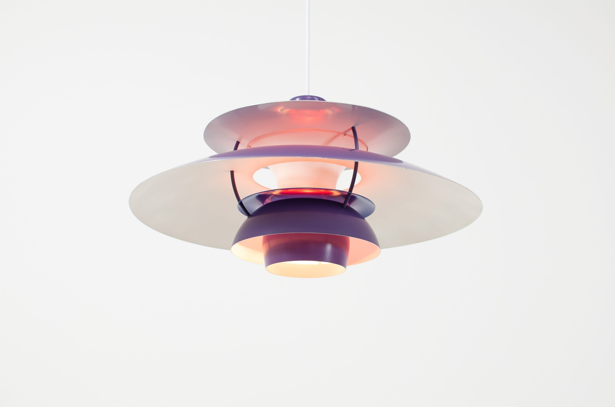 Purple PH5 pendant light by Poul Henningsen for Louis Poulsen (Denmark, 1960s).