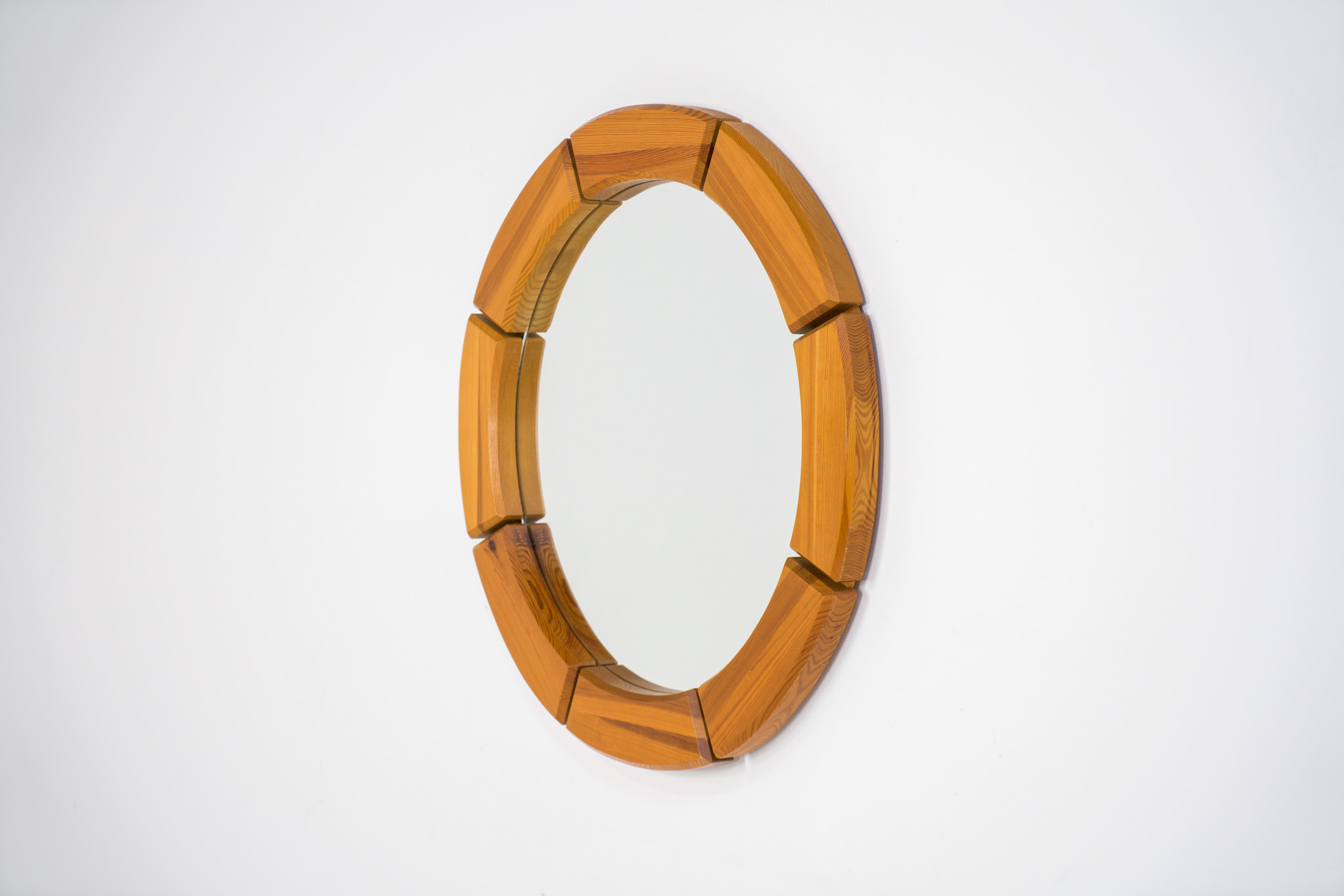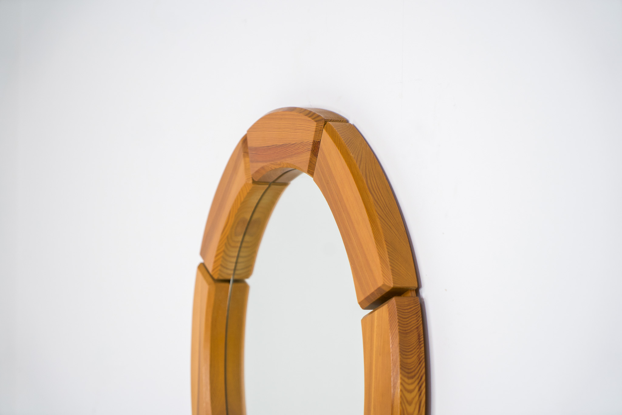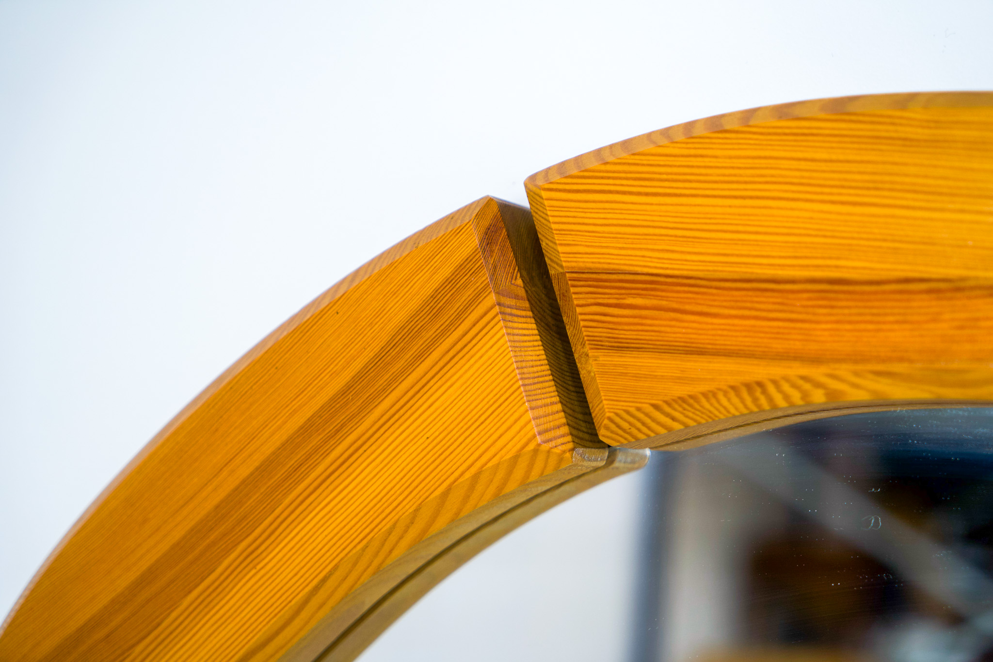 This stunning Swedish mirror is crafted from solid pine, showcasing a bold and sculptural appearance.