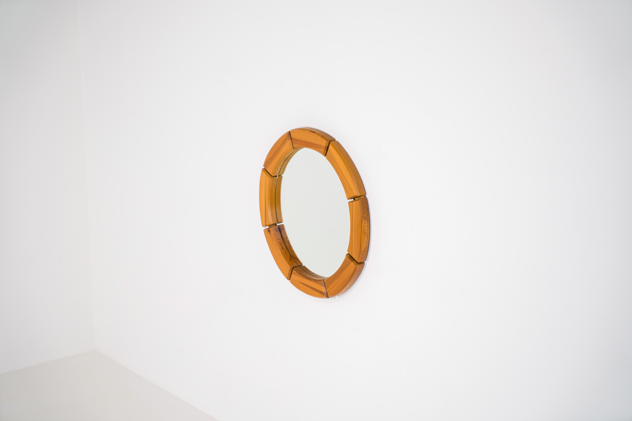 Sculptural wall-mirror in solid pine (Sweden, 1970s).
