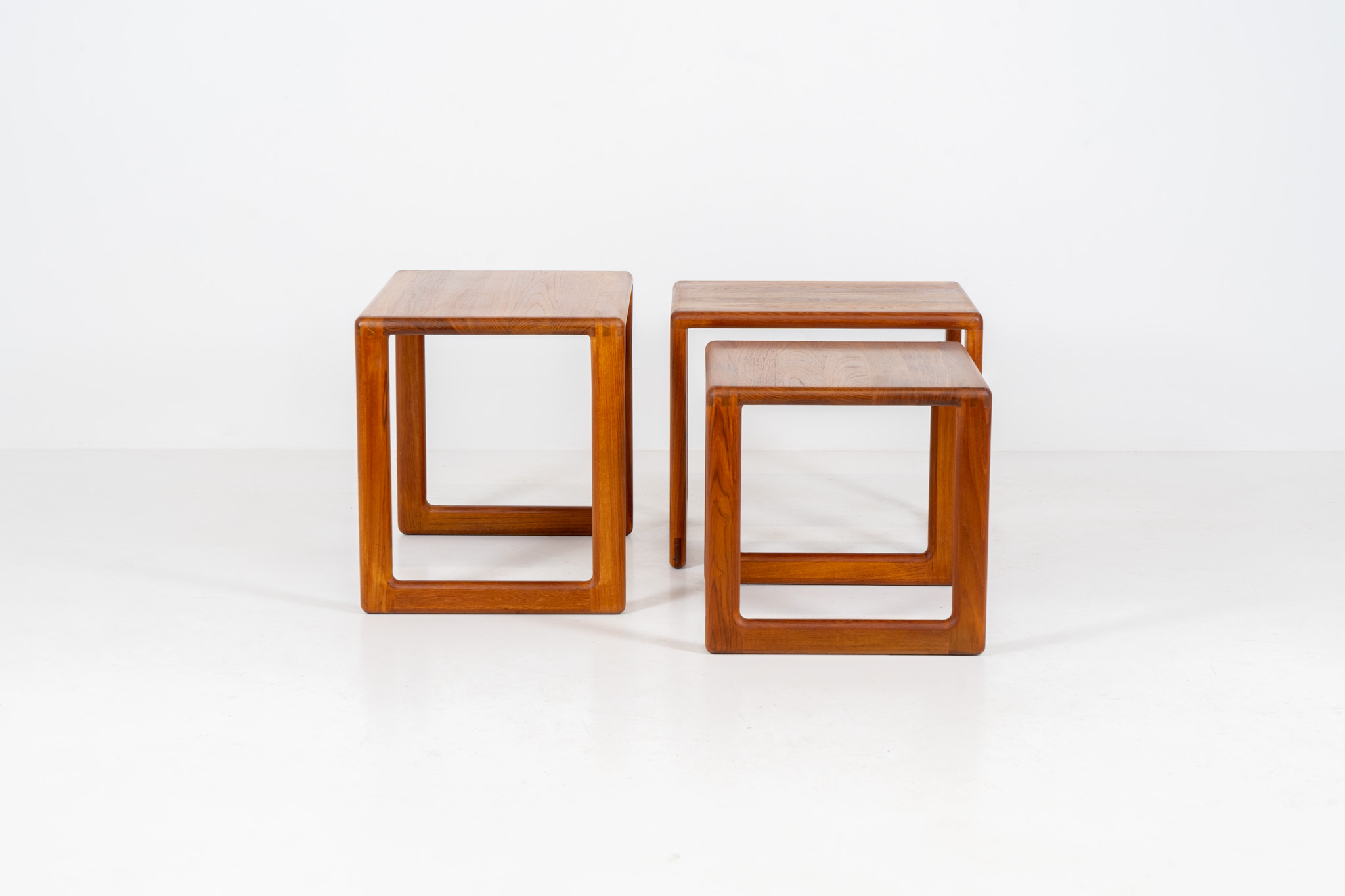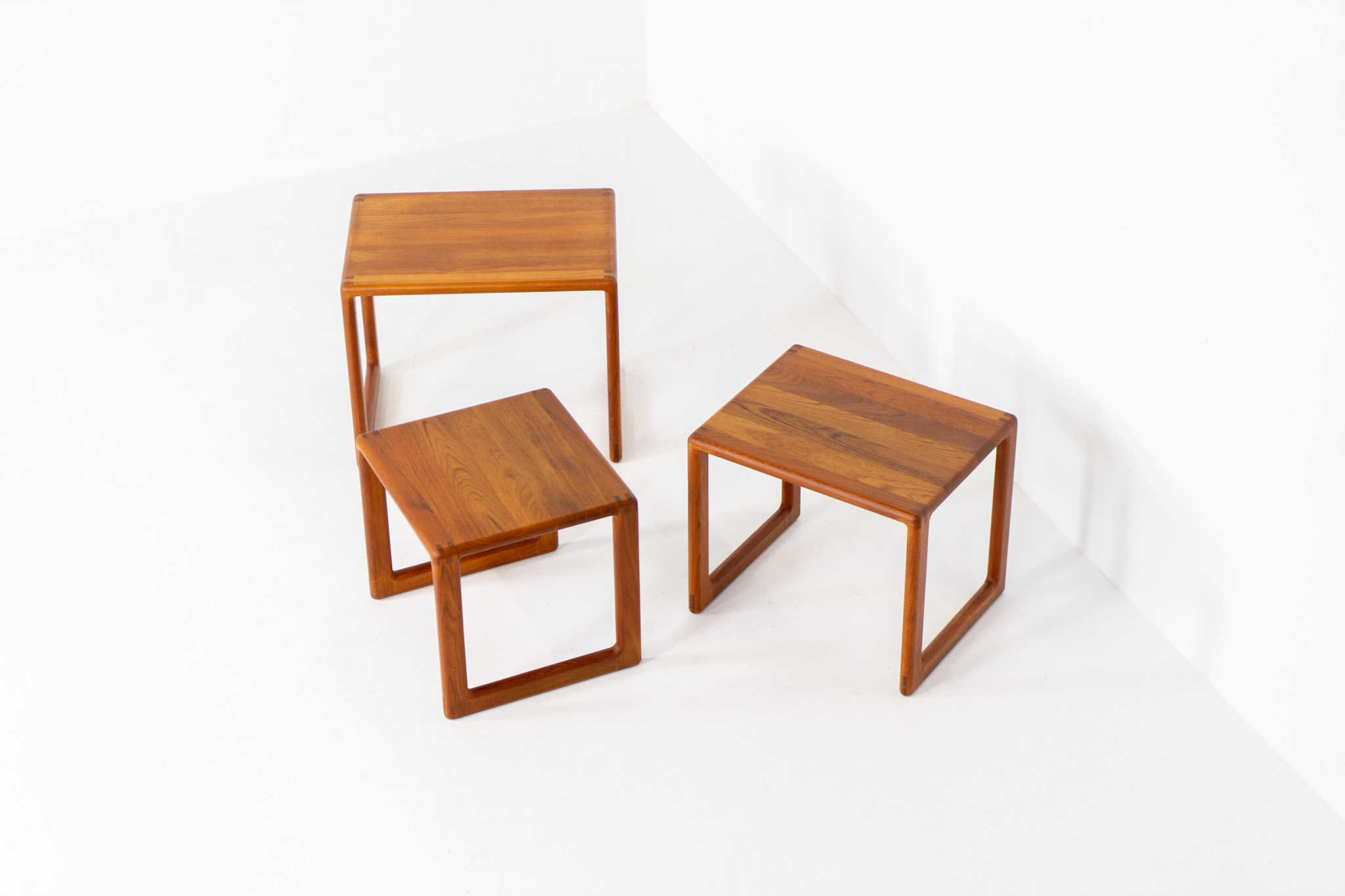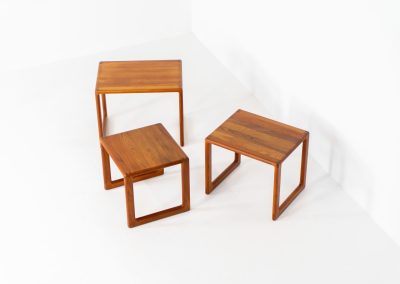 Set of 3 nesting tables in solid teak (Denmark, 1960s).