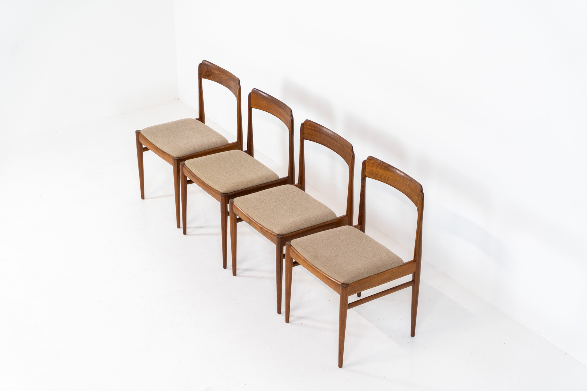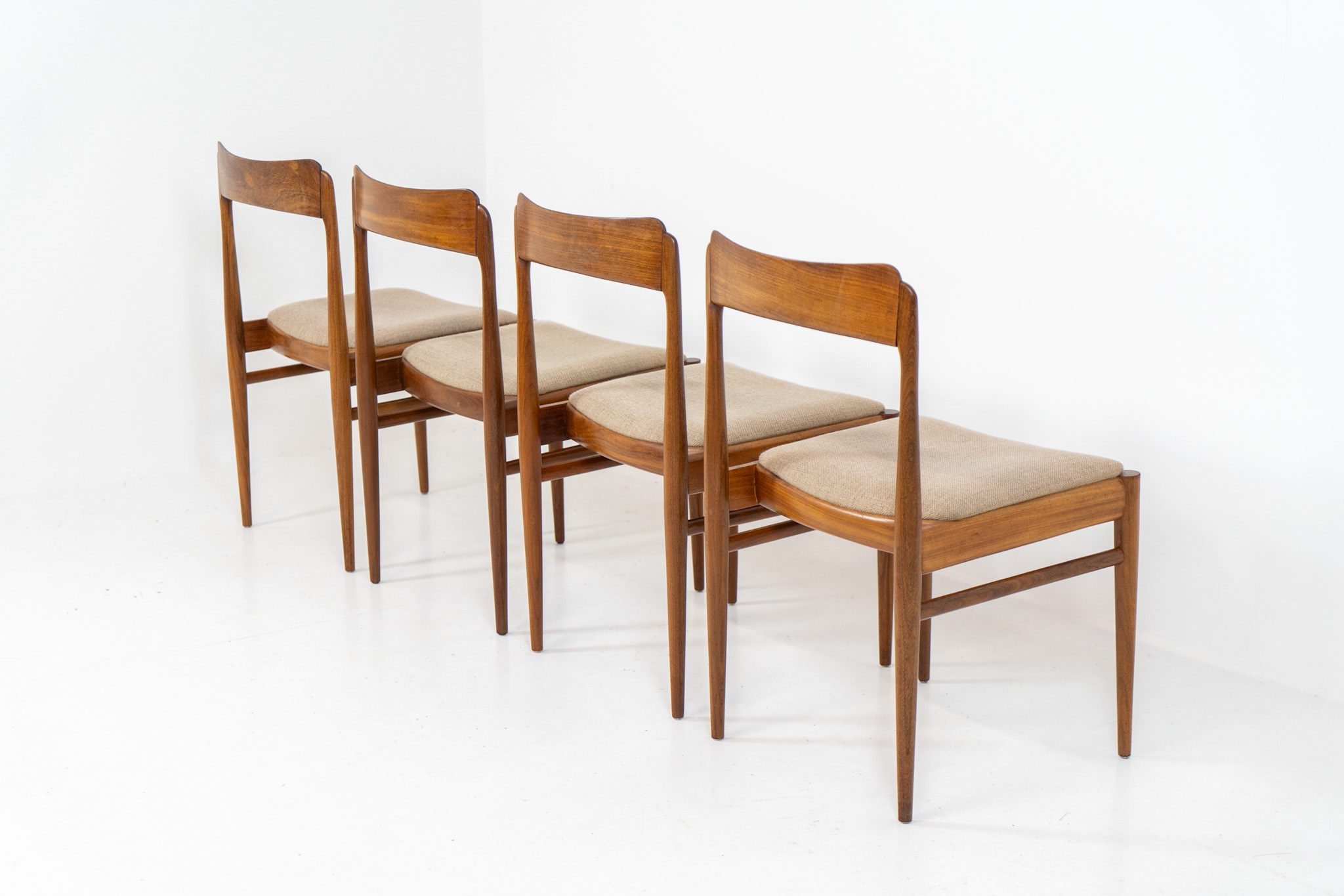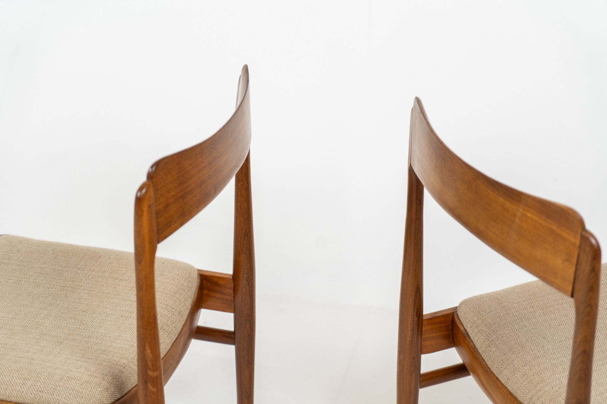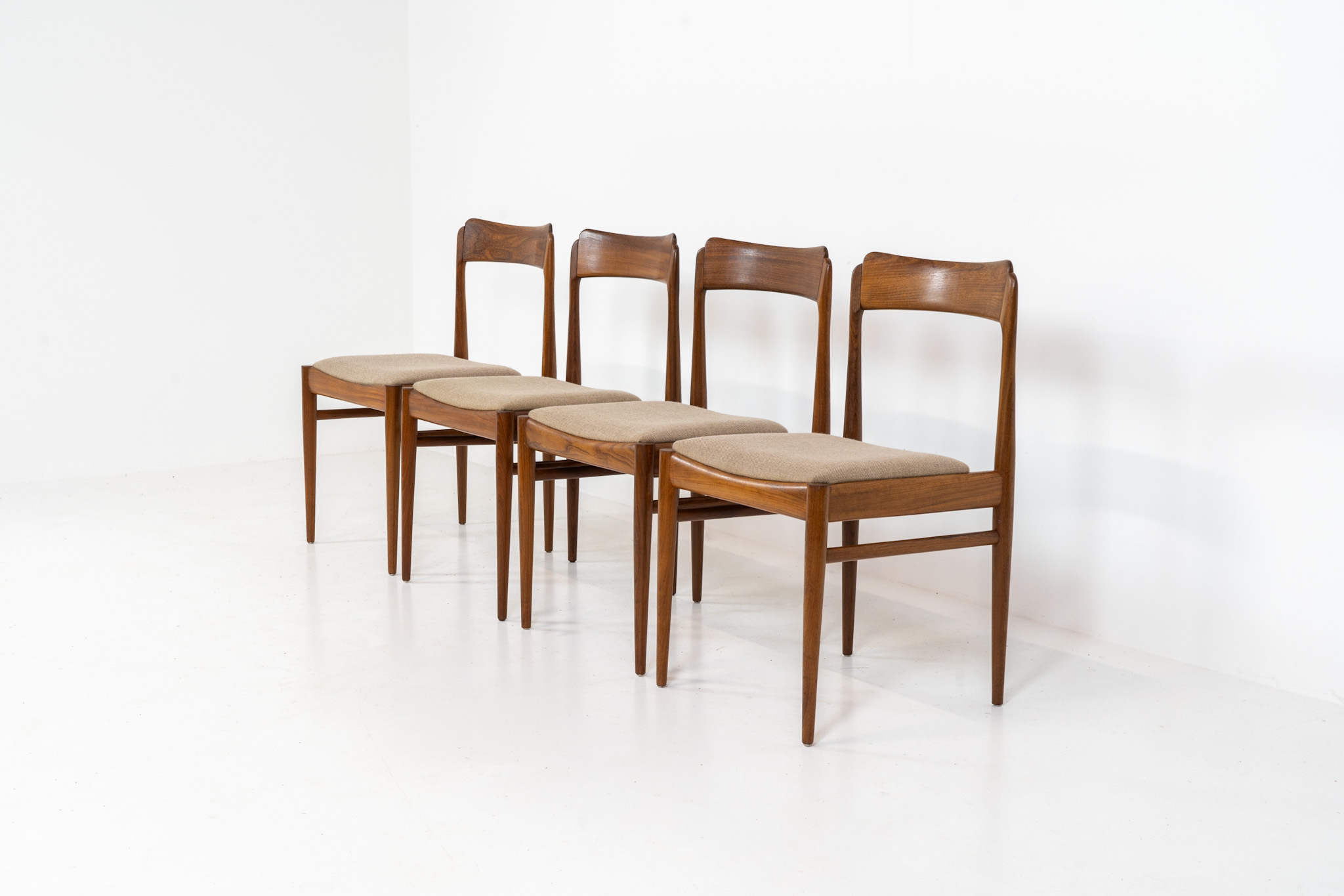 These beauties are made of solid rosewood, featuring clean lines, organic curves and a high build-quality . They are upholstered in a beige fabric.