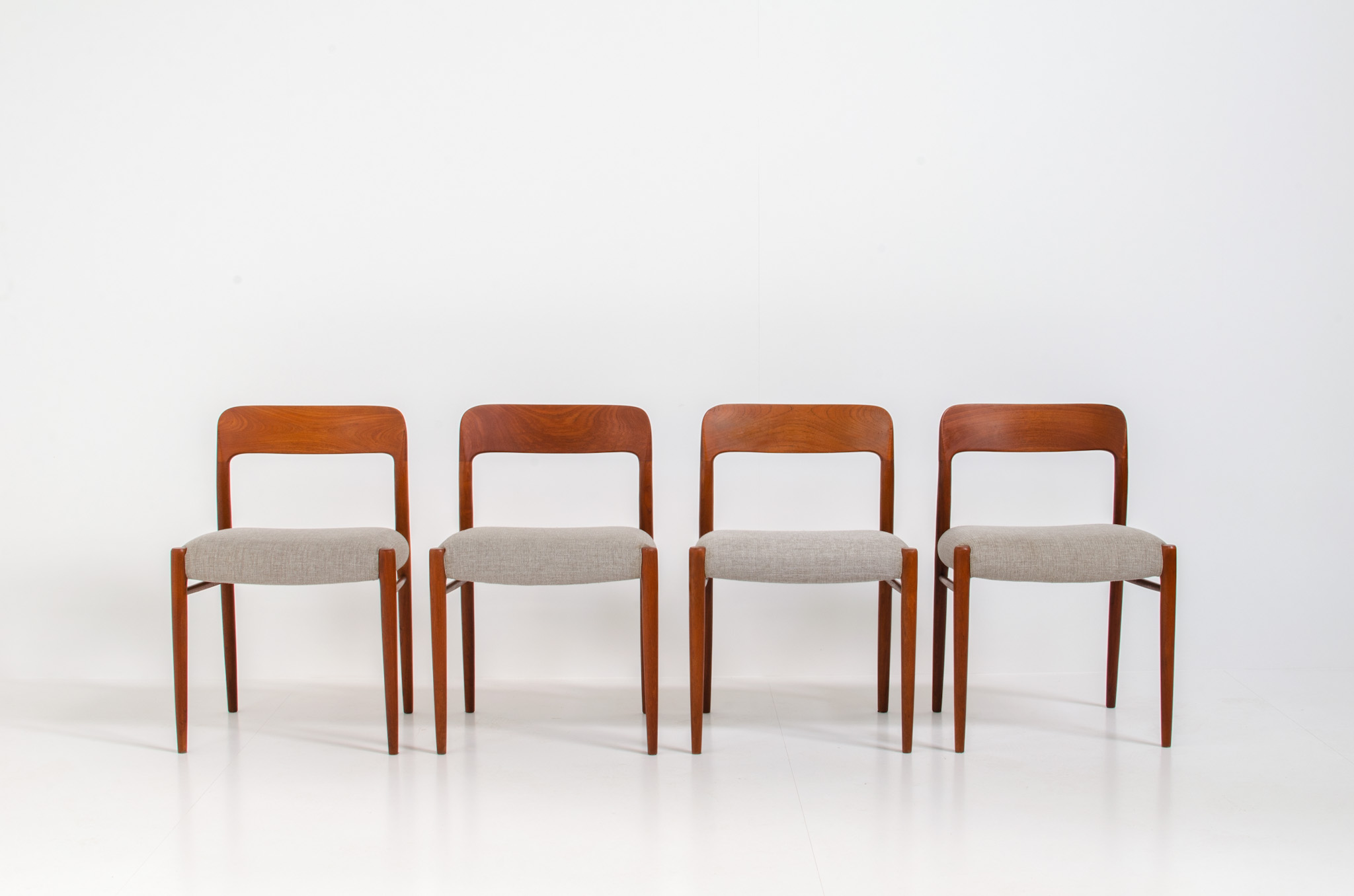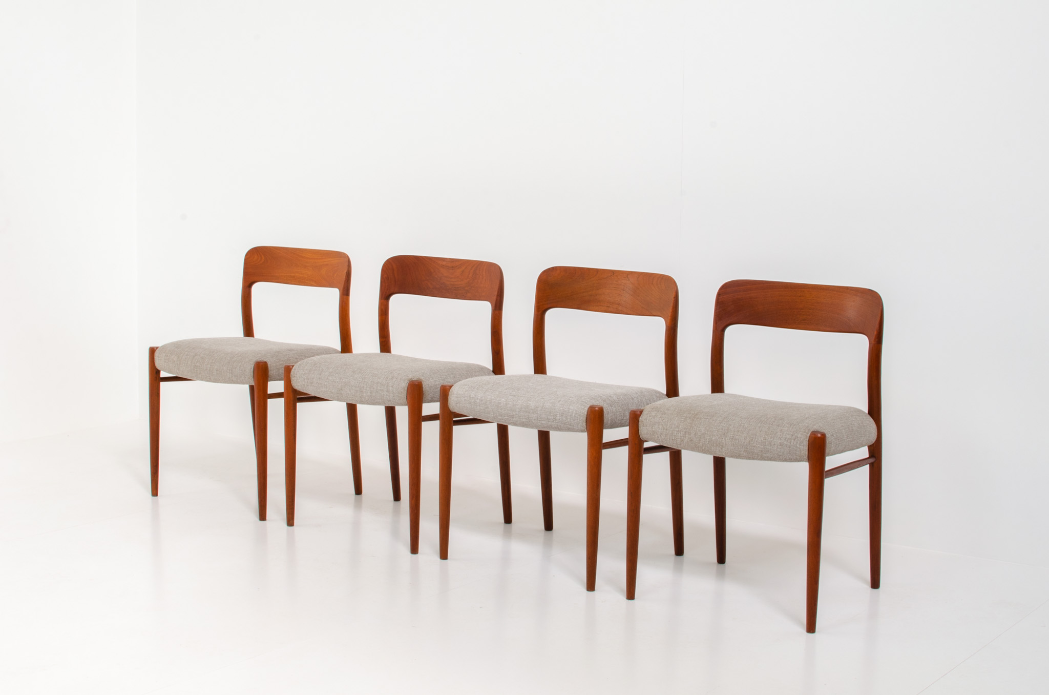 Set of 4 ‘Model 75’ dining chairs by Niels Otto Møller for J.L. Møller (Denmark, 1960s).