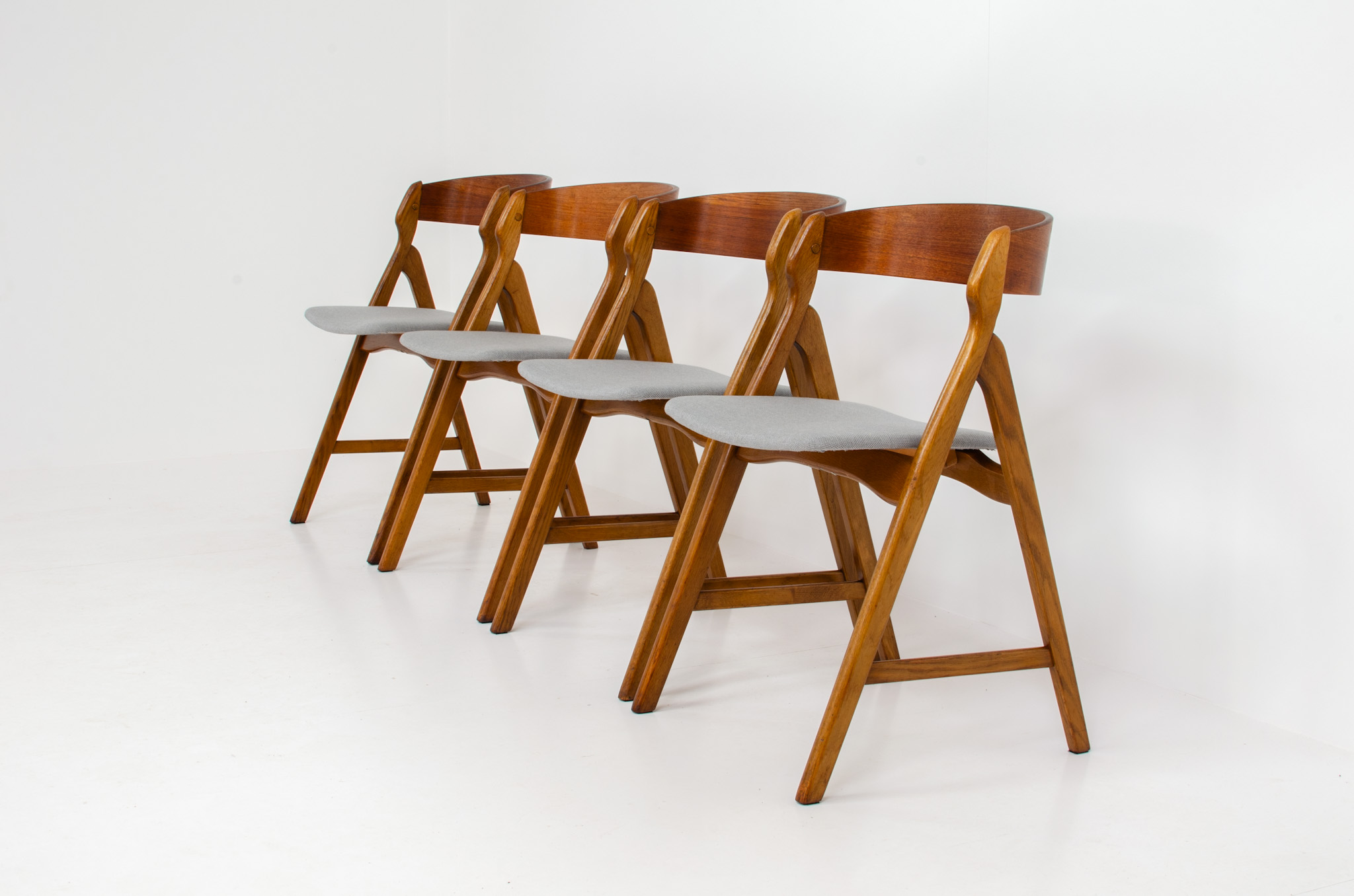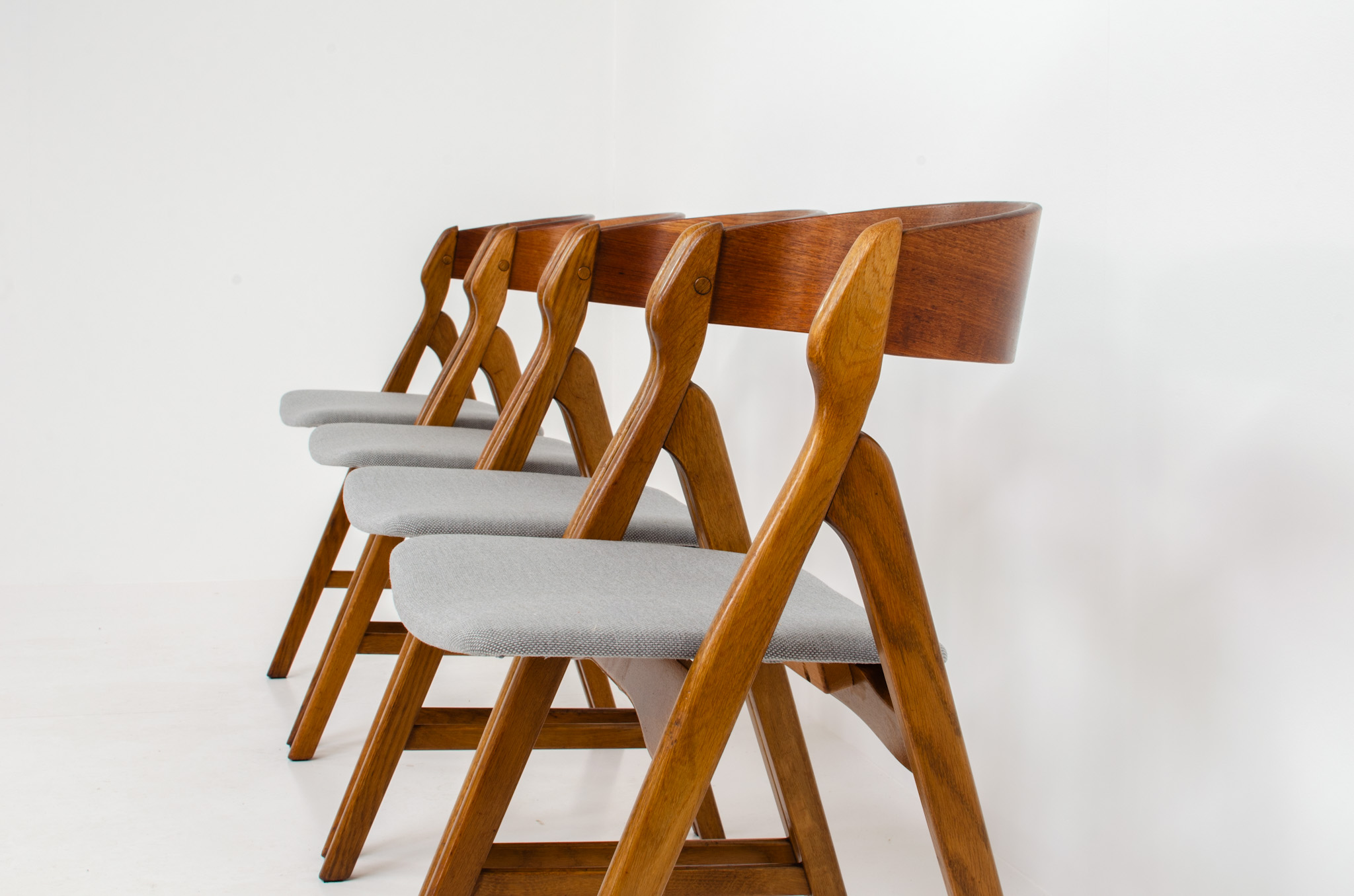 Set of 4 oak ‘Model 71’ dining chairs by Henning Kjaernulf for Boltinge (Denmark, 1960s).