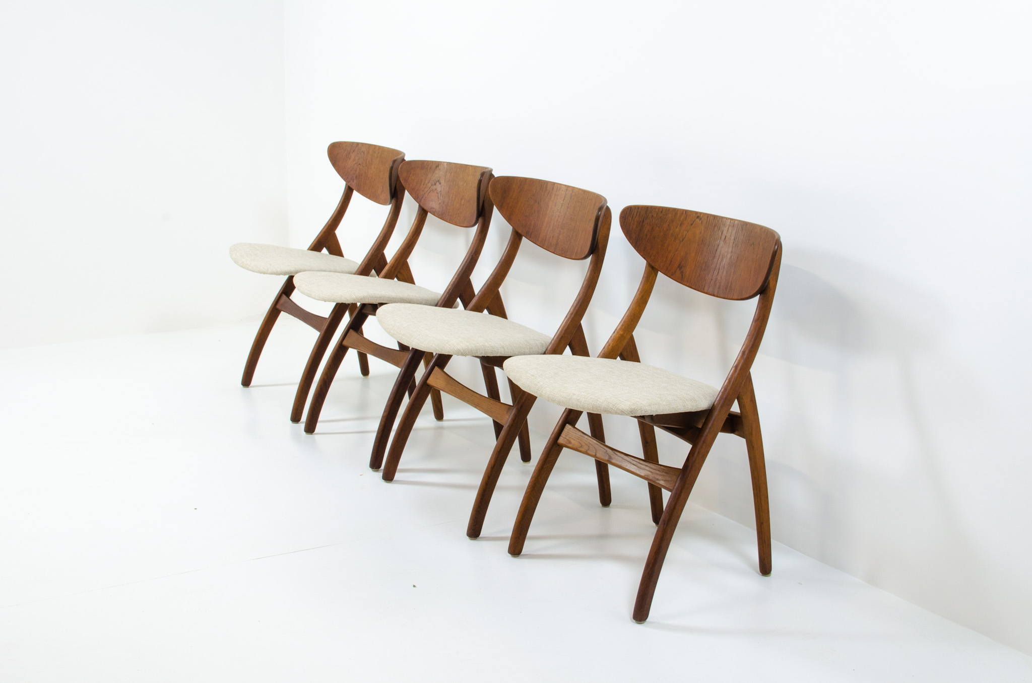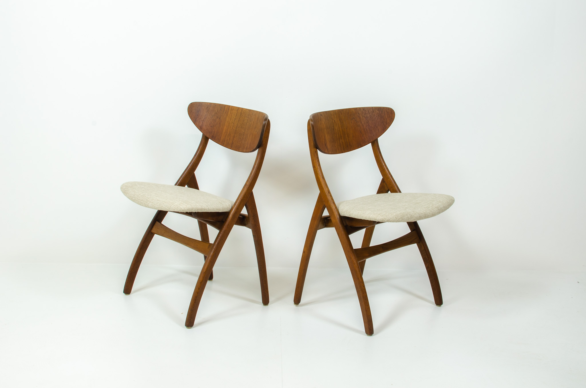 They are fully restored and newly upholstered in an off white fabric.