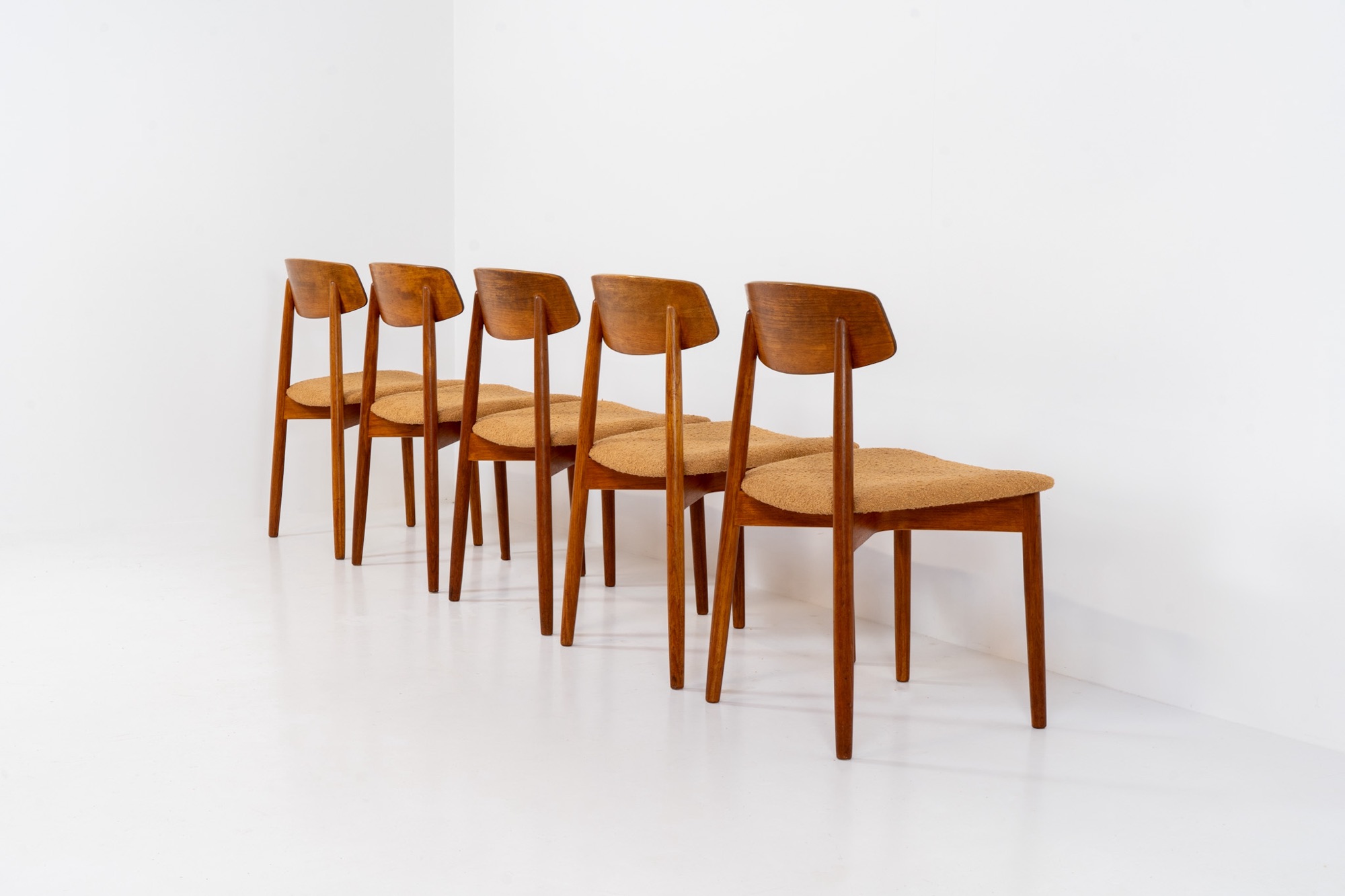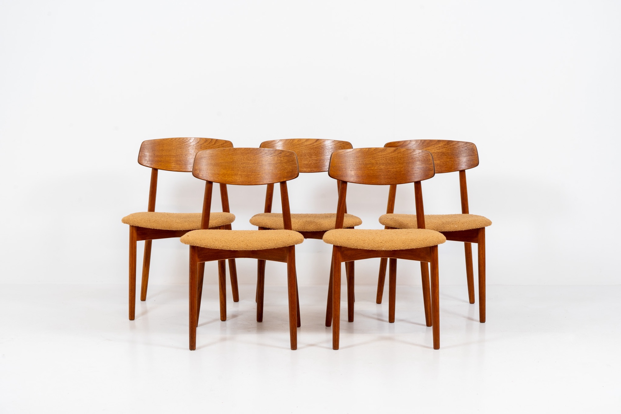 Remarkable set of 5 teak dining chairs by Harry Østergaard for Randers Møbelfabrik (Denmark, 1950s).