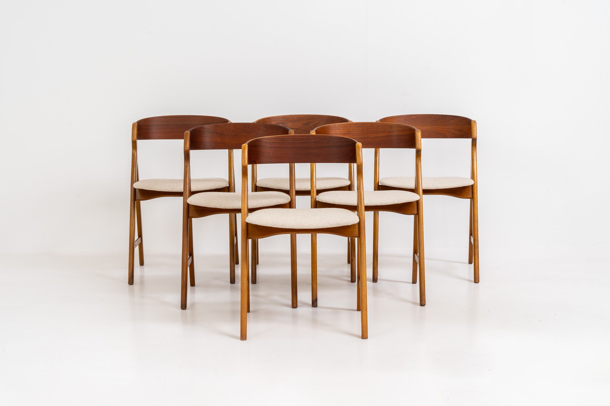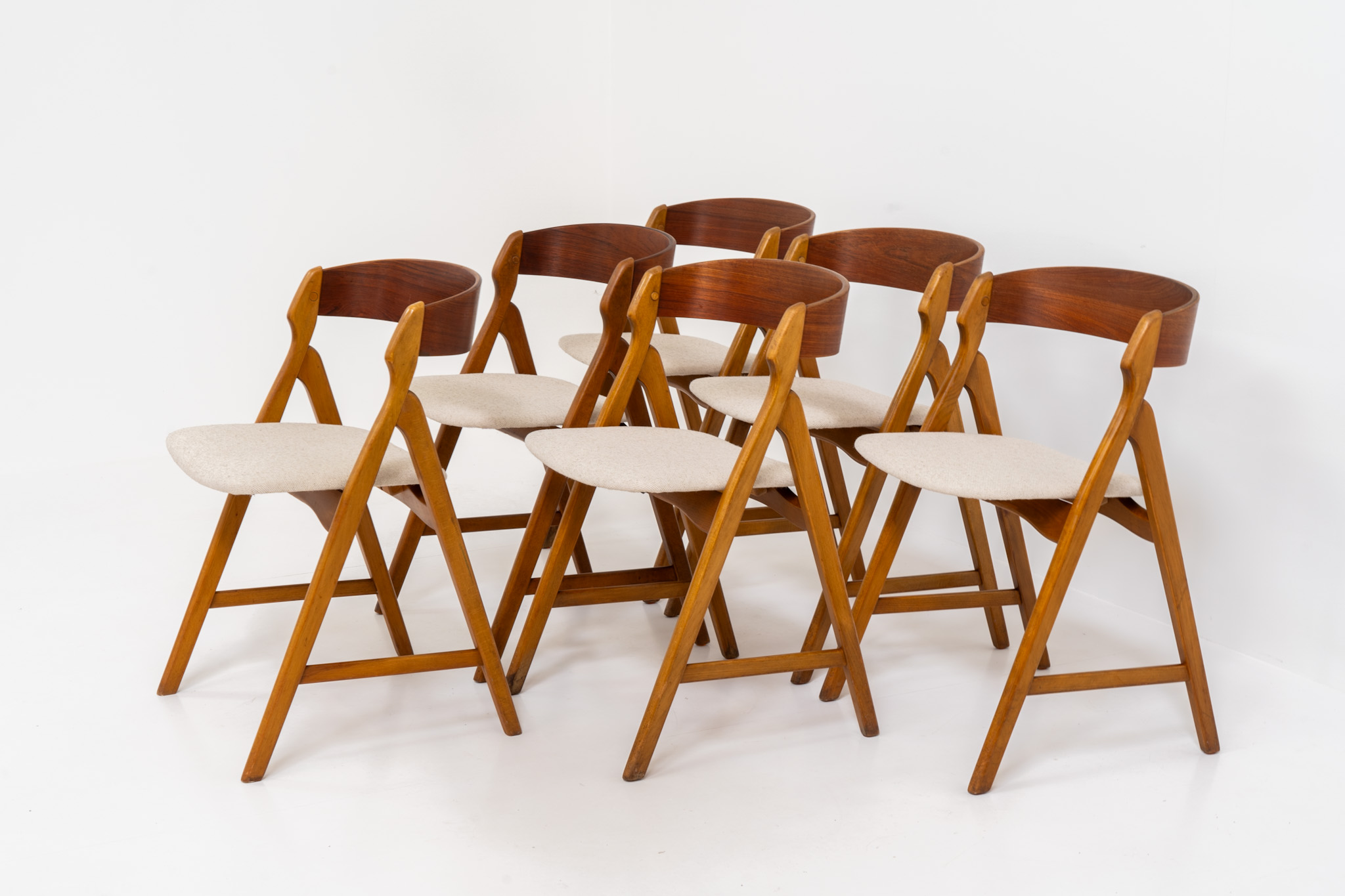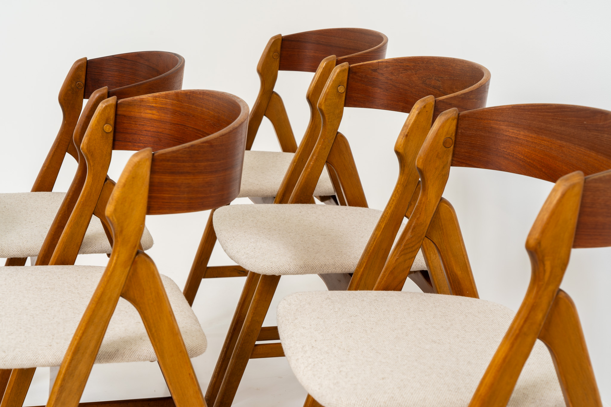 Set of 6 oak ‘Model 71’ dining chairs by Henning Kjaernulf for Boltinge (Denmark, 1960s).