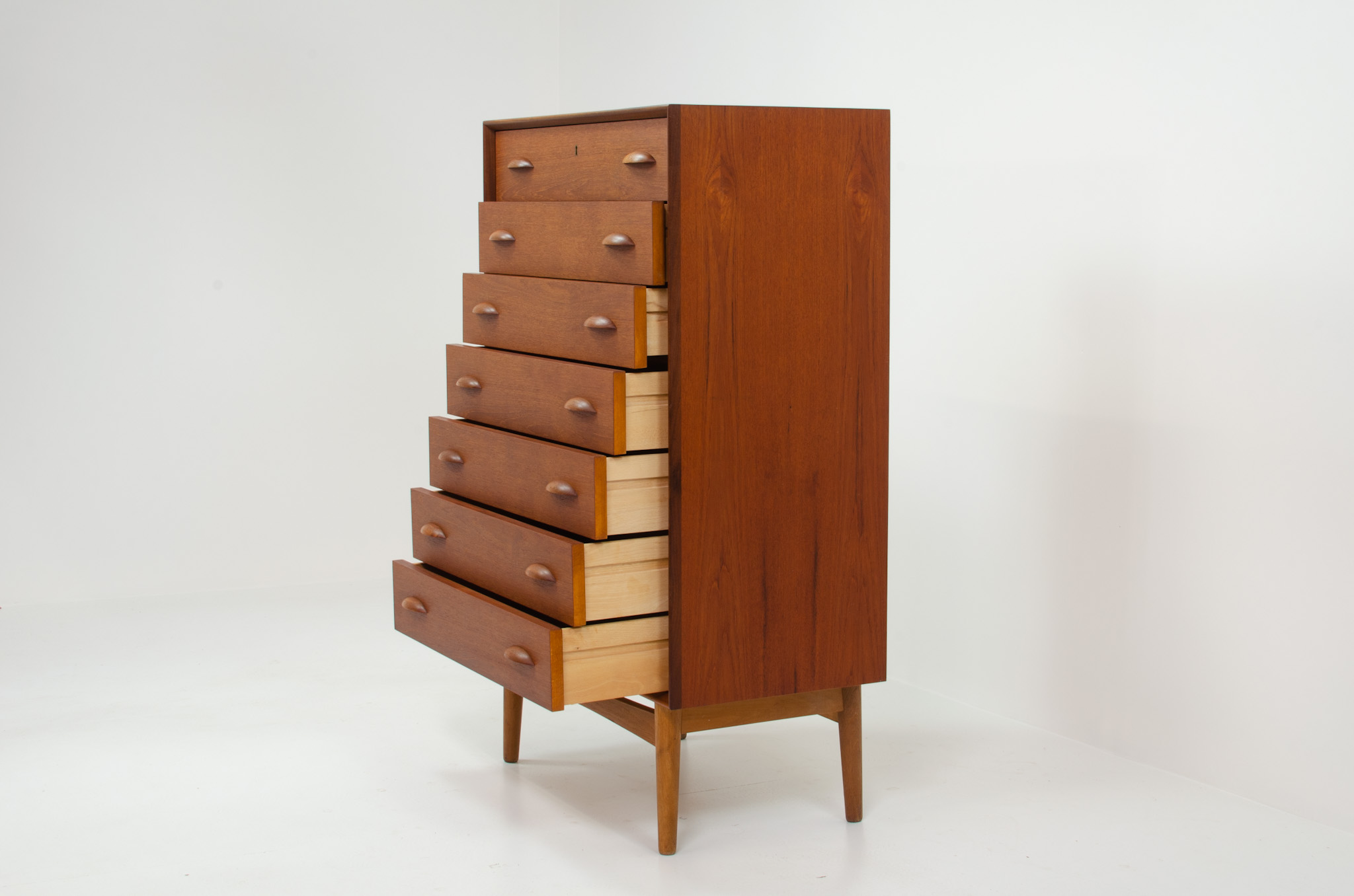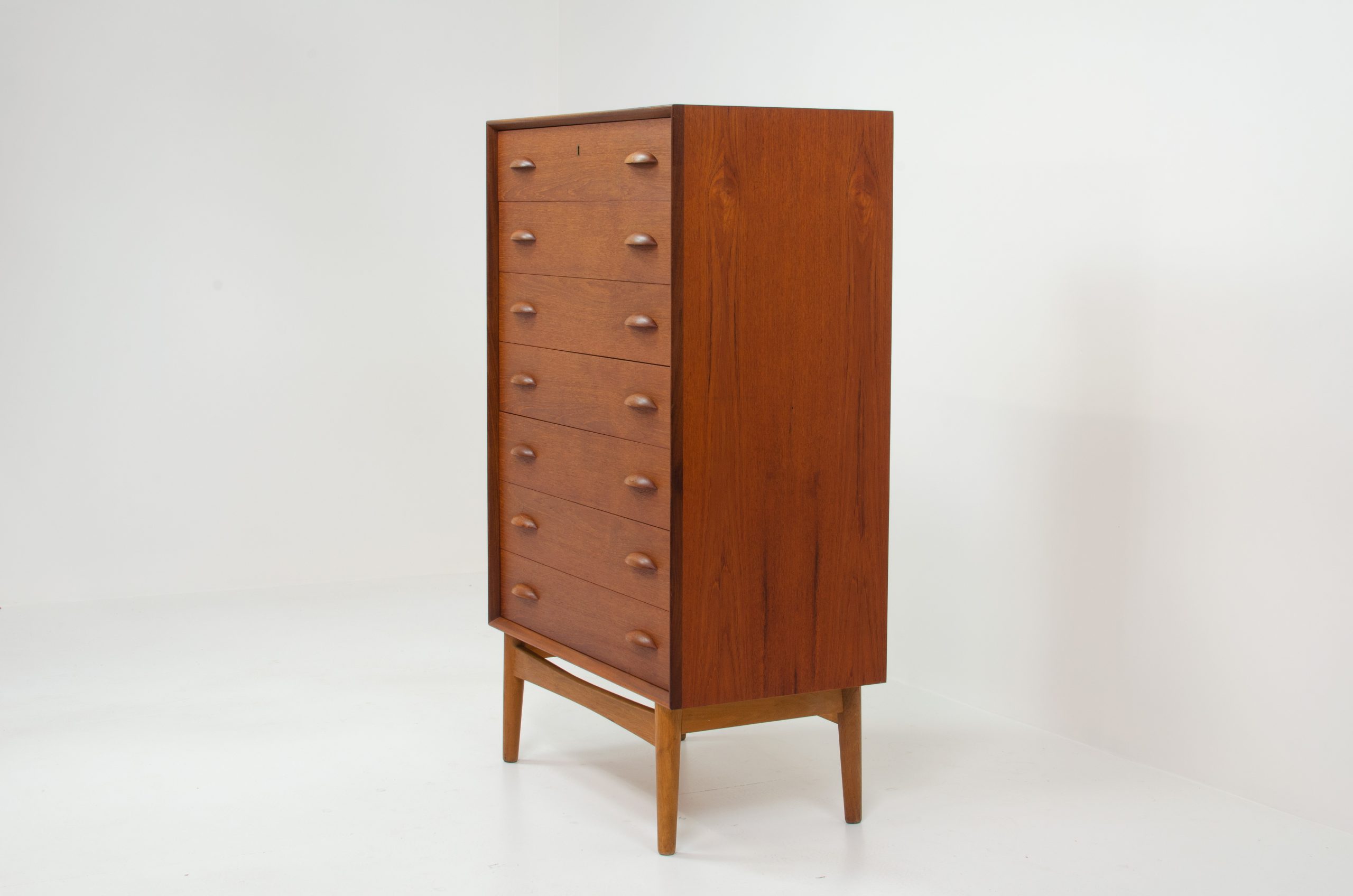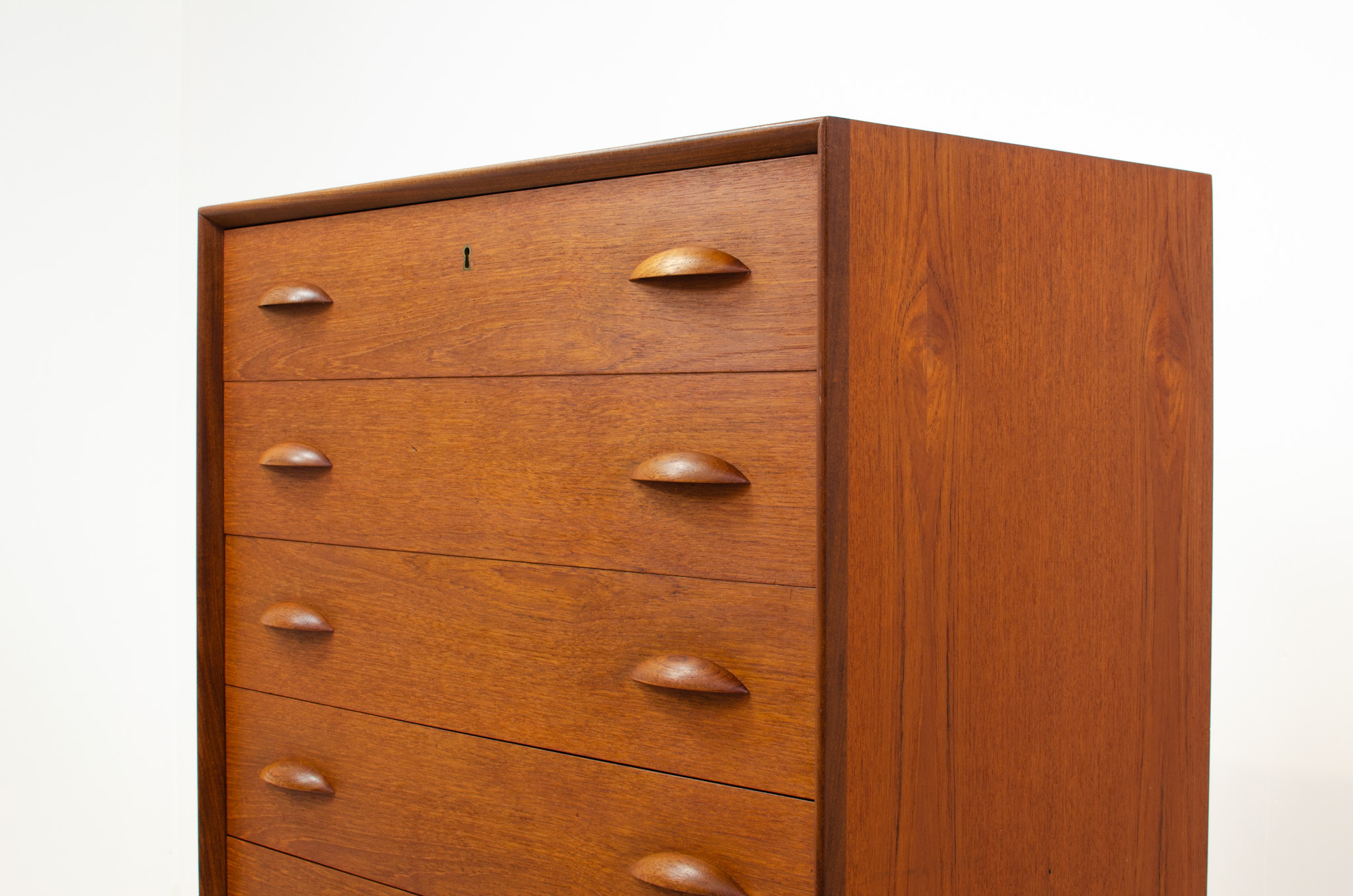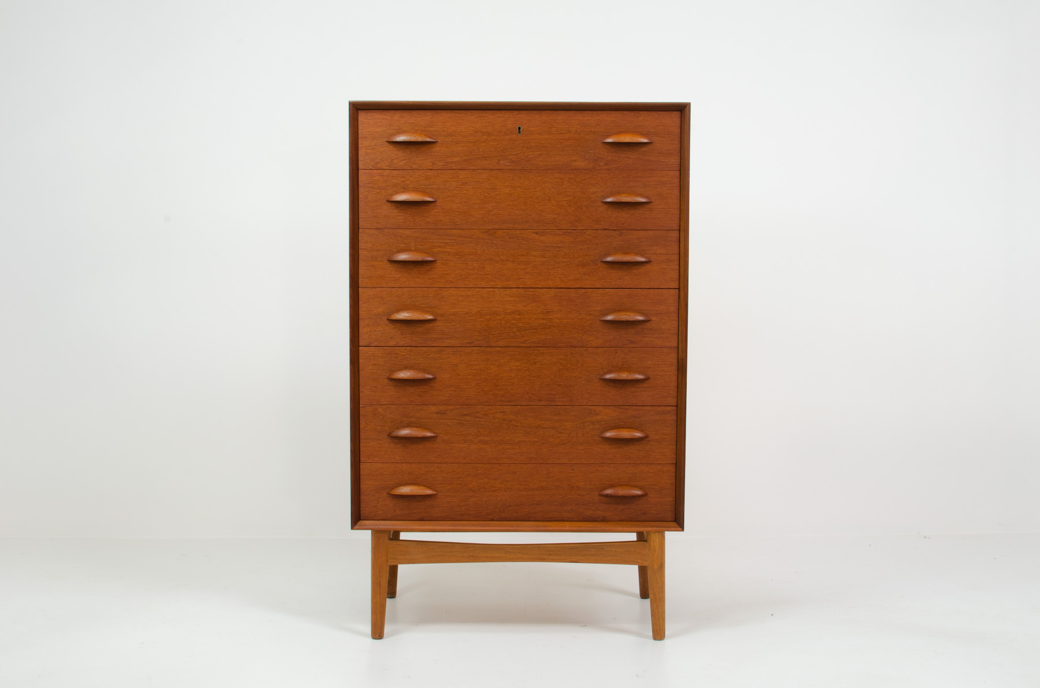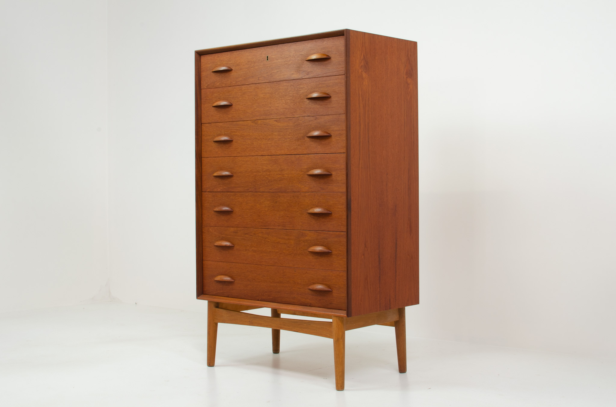Amazing tallboy dresser by Johannes Sorth for Nexø Møbelfabrik (Denmark, 1960s).