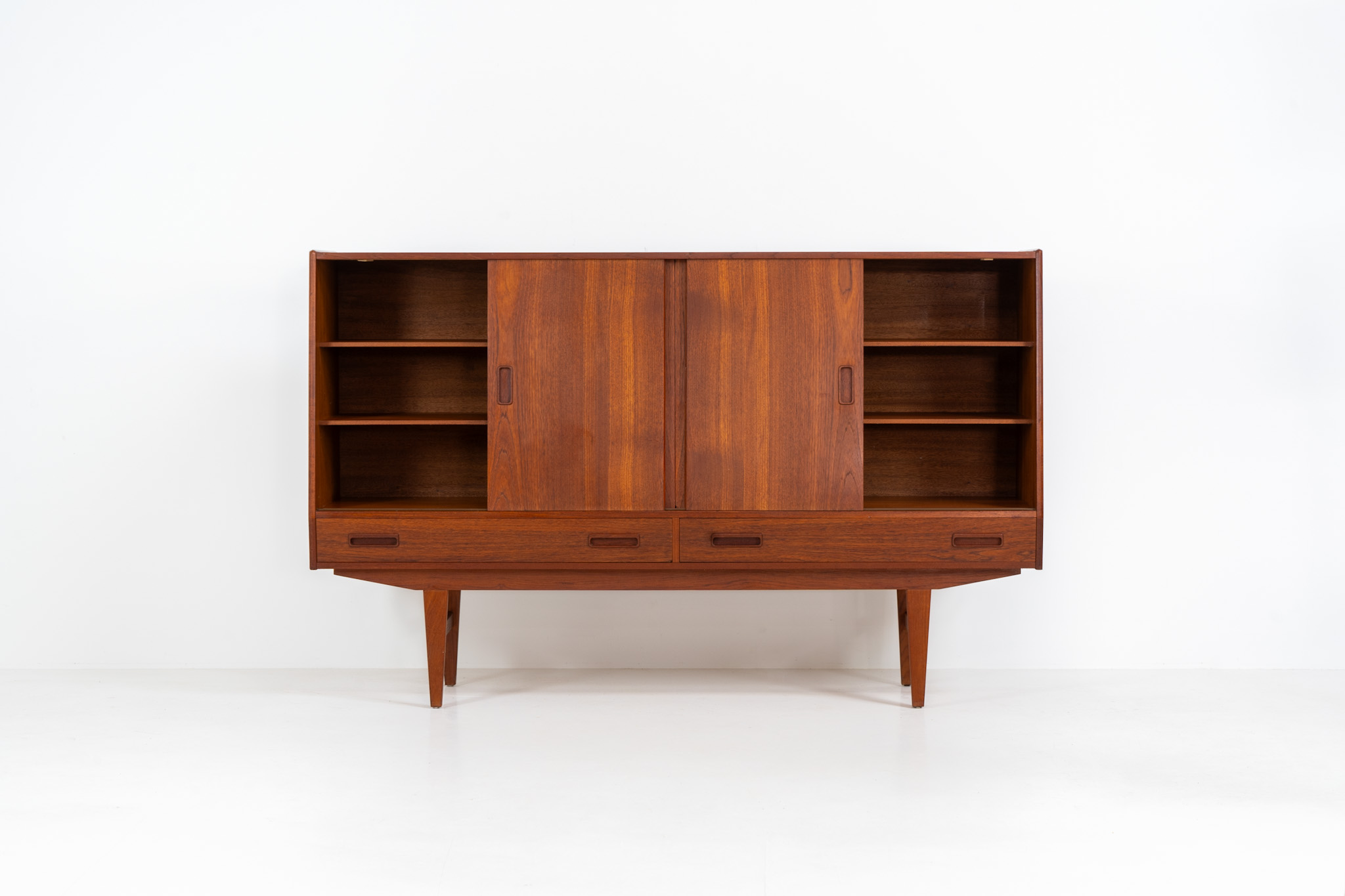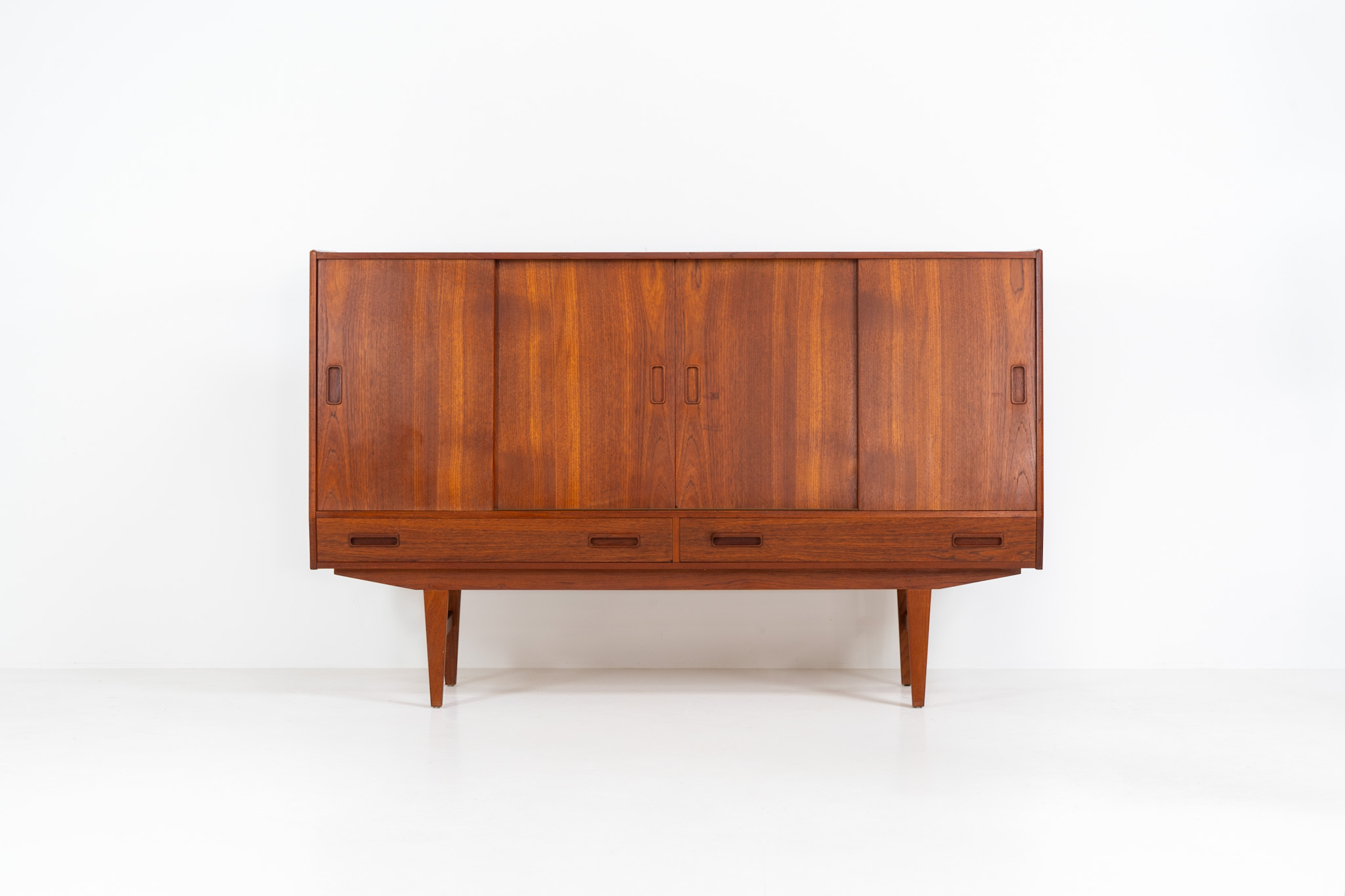 Teak highboard by P. Westergaard (Denmark, 1960s).
