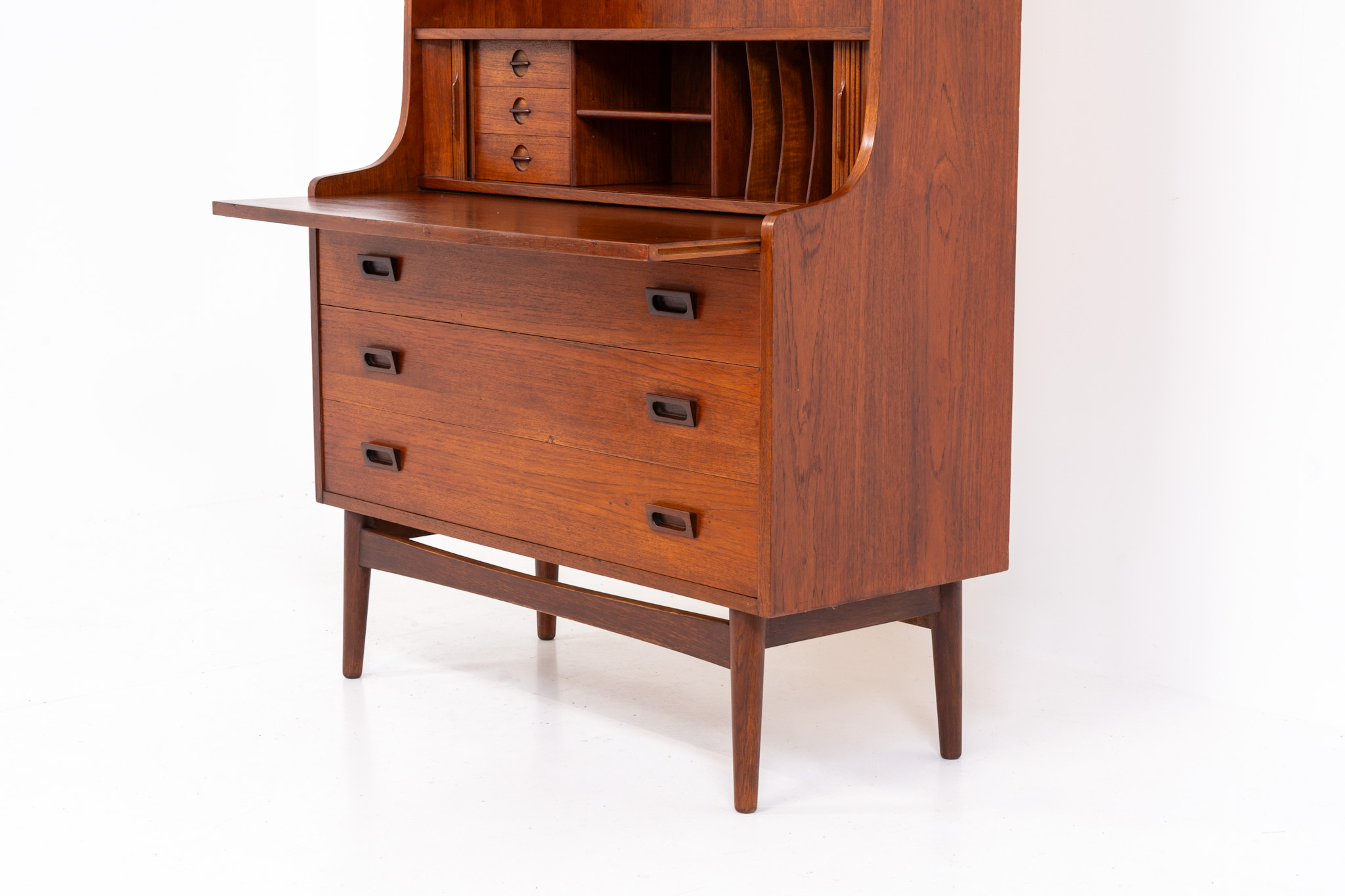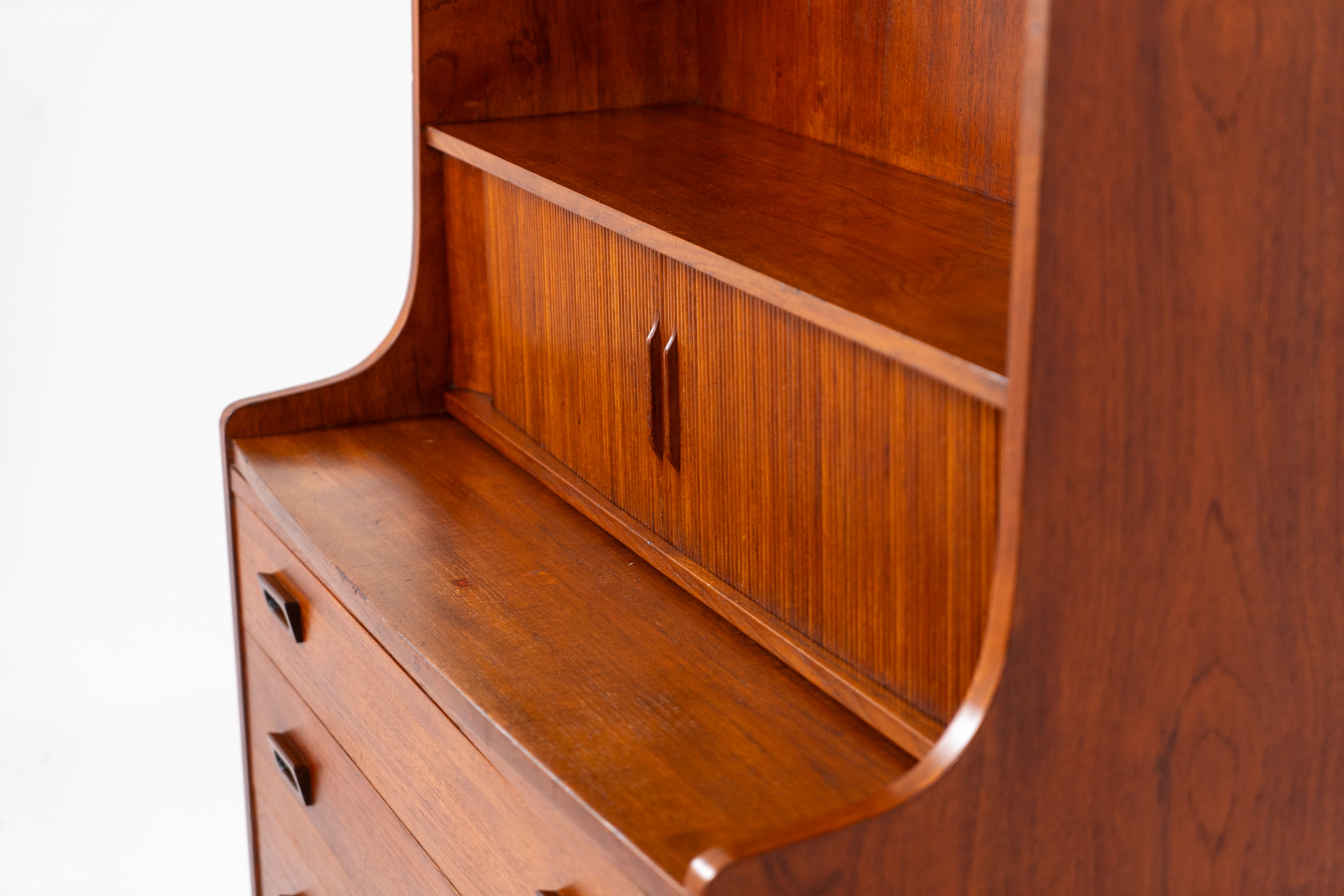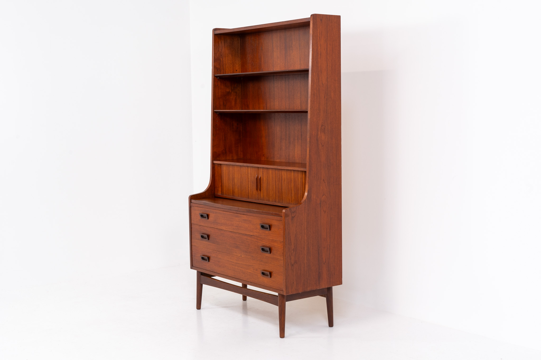 Teak “Model 330” bookcase/secretary by Johannes Sorth for Borholms Møbelfabrik (Denmark, 1960s).