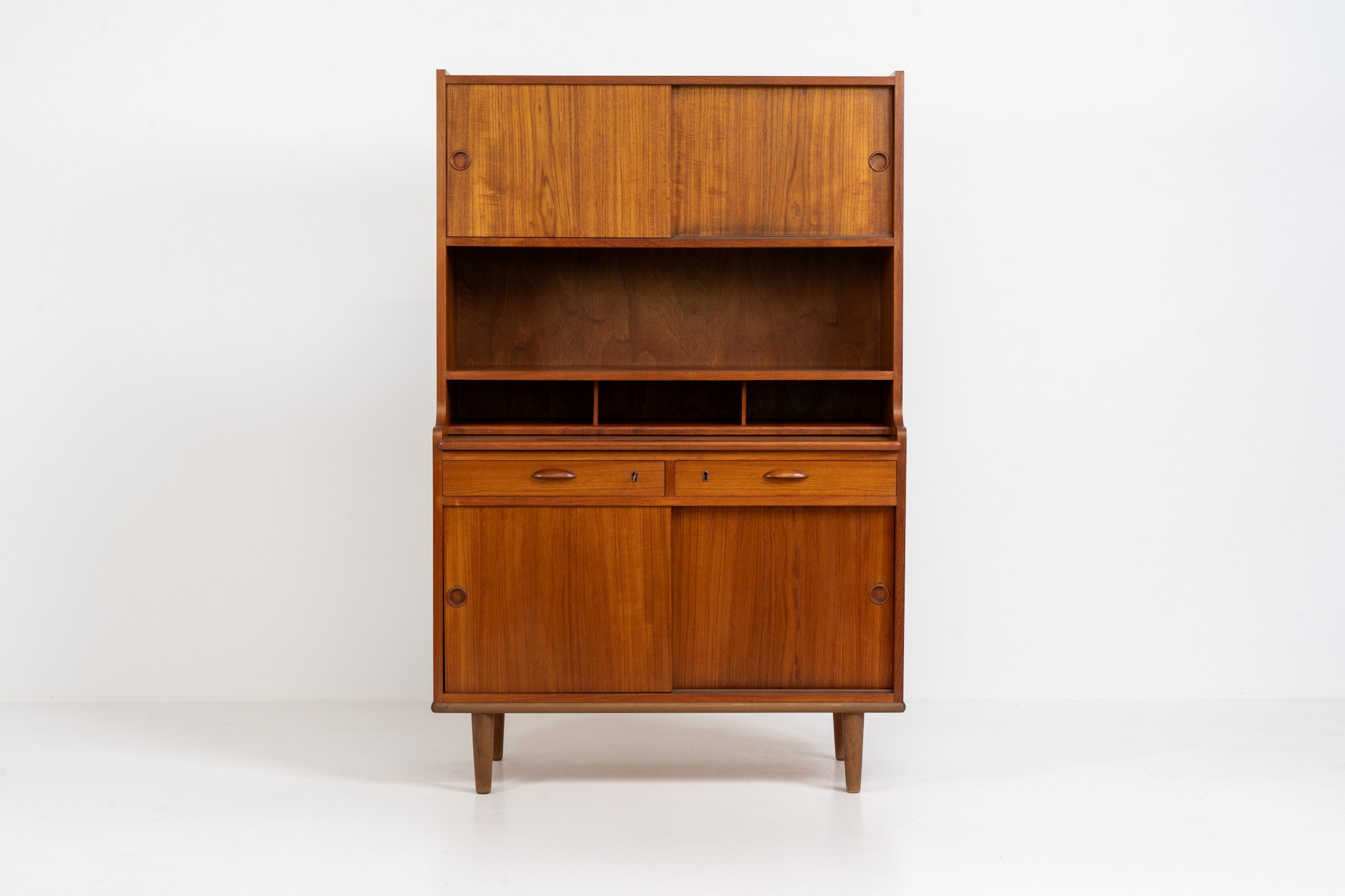 Teak secretary/bookcase by Harald Nielsen (Denmark, 1960s).