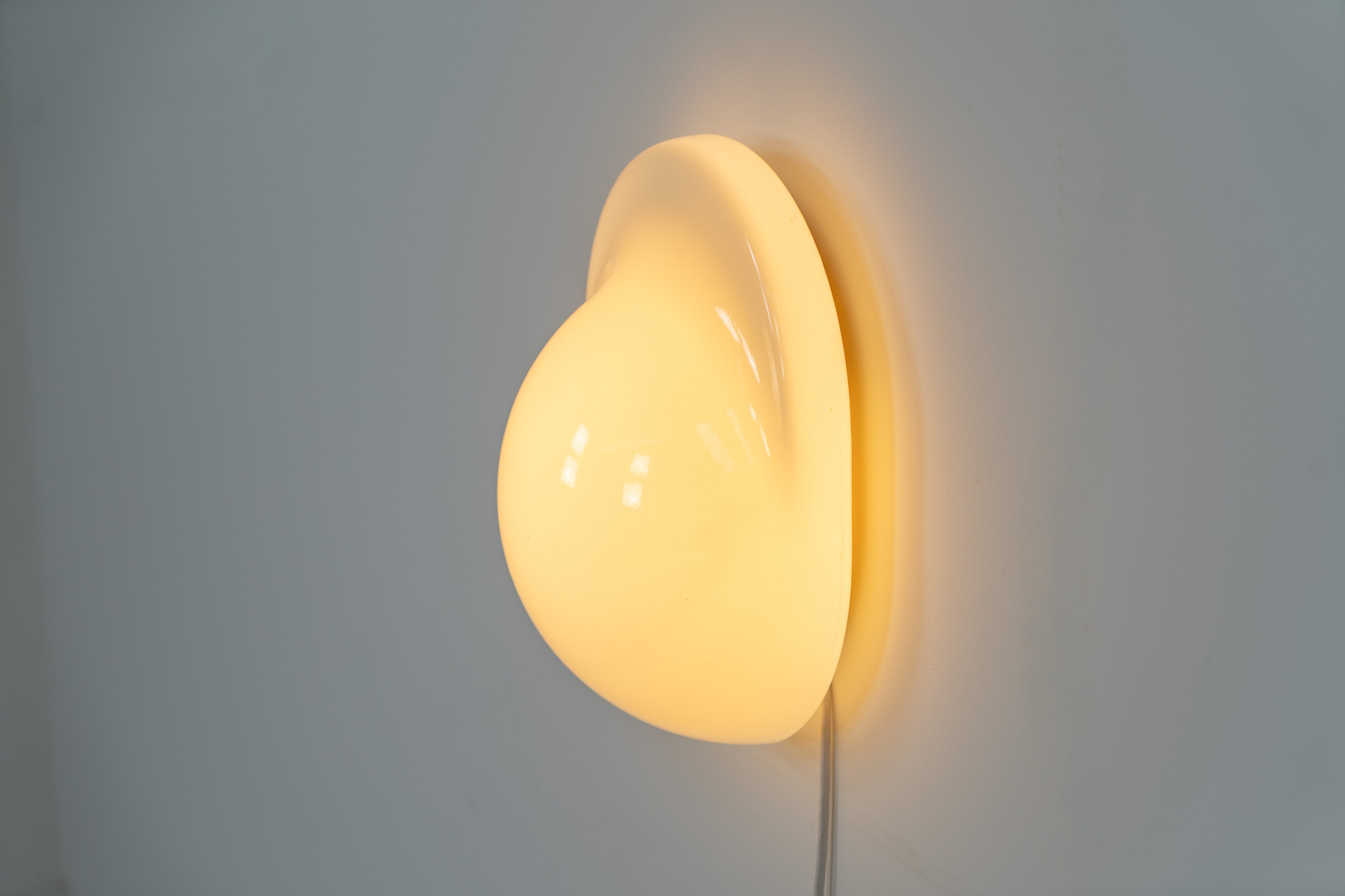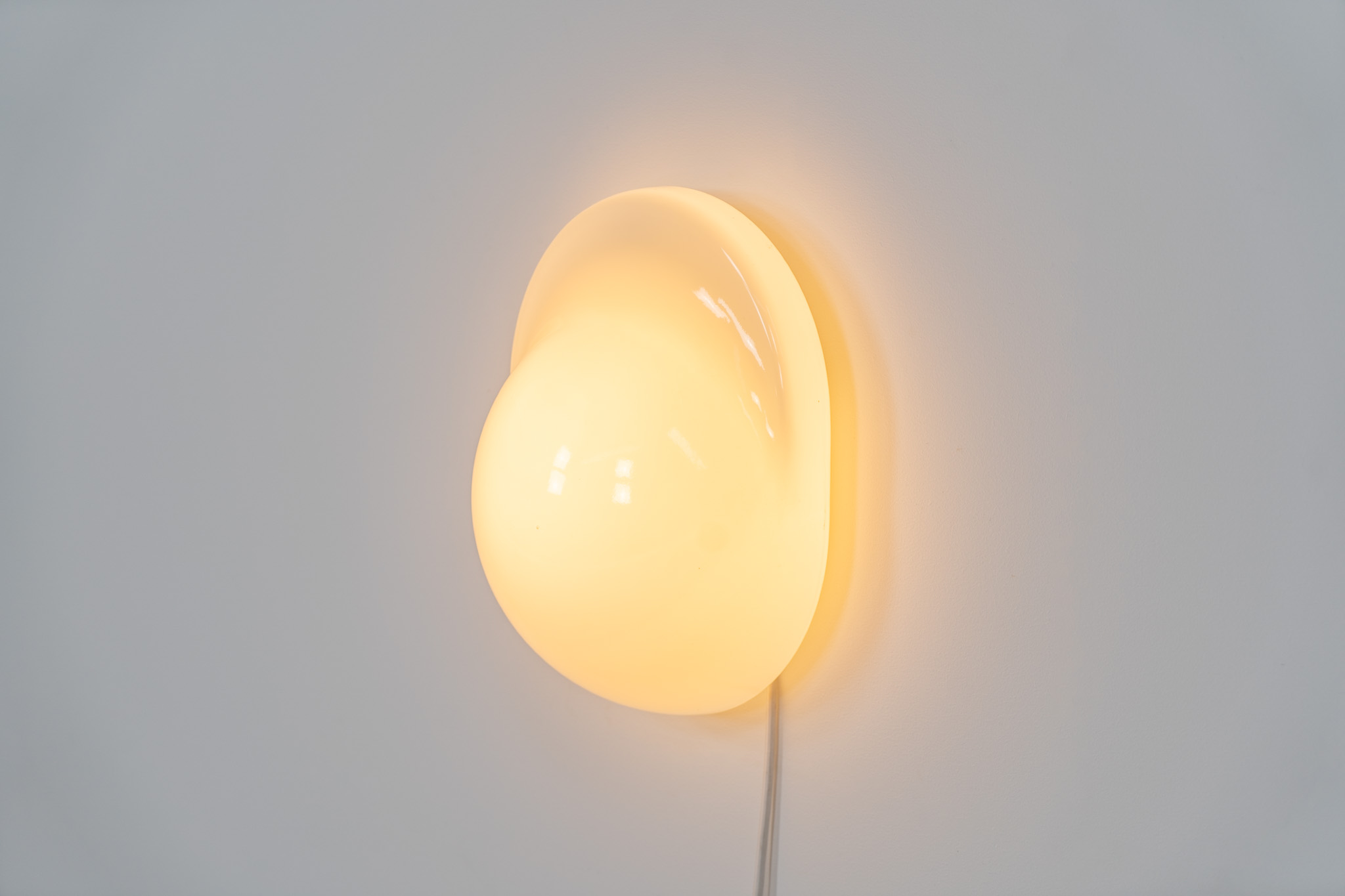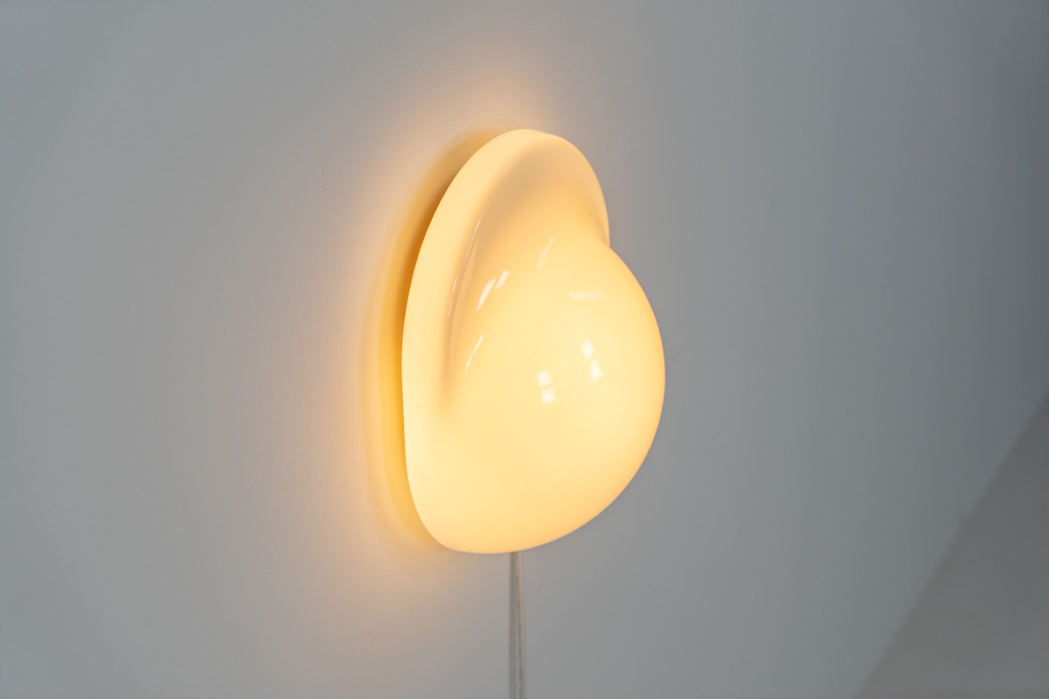 This glass wall lamp, which can also be used as a table lamp, has a remarkable design and gives a stunning light dispersion due to its shape. It can be turned on and off by pushing down the glass body.