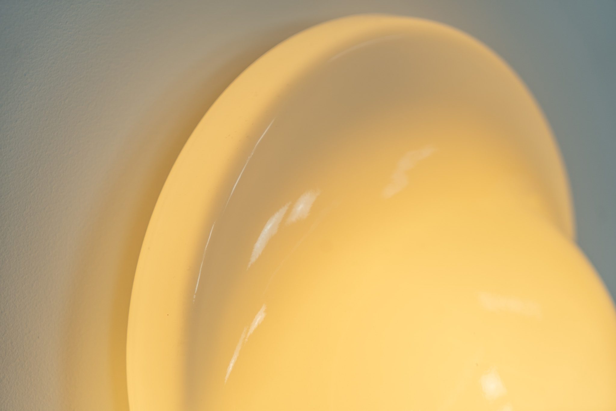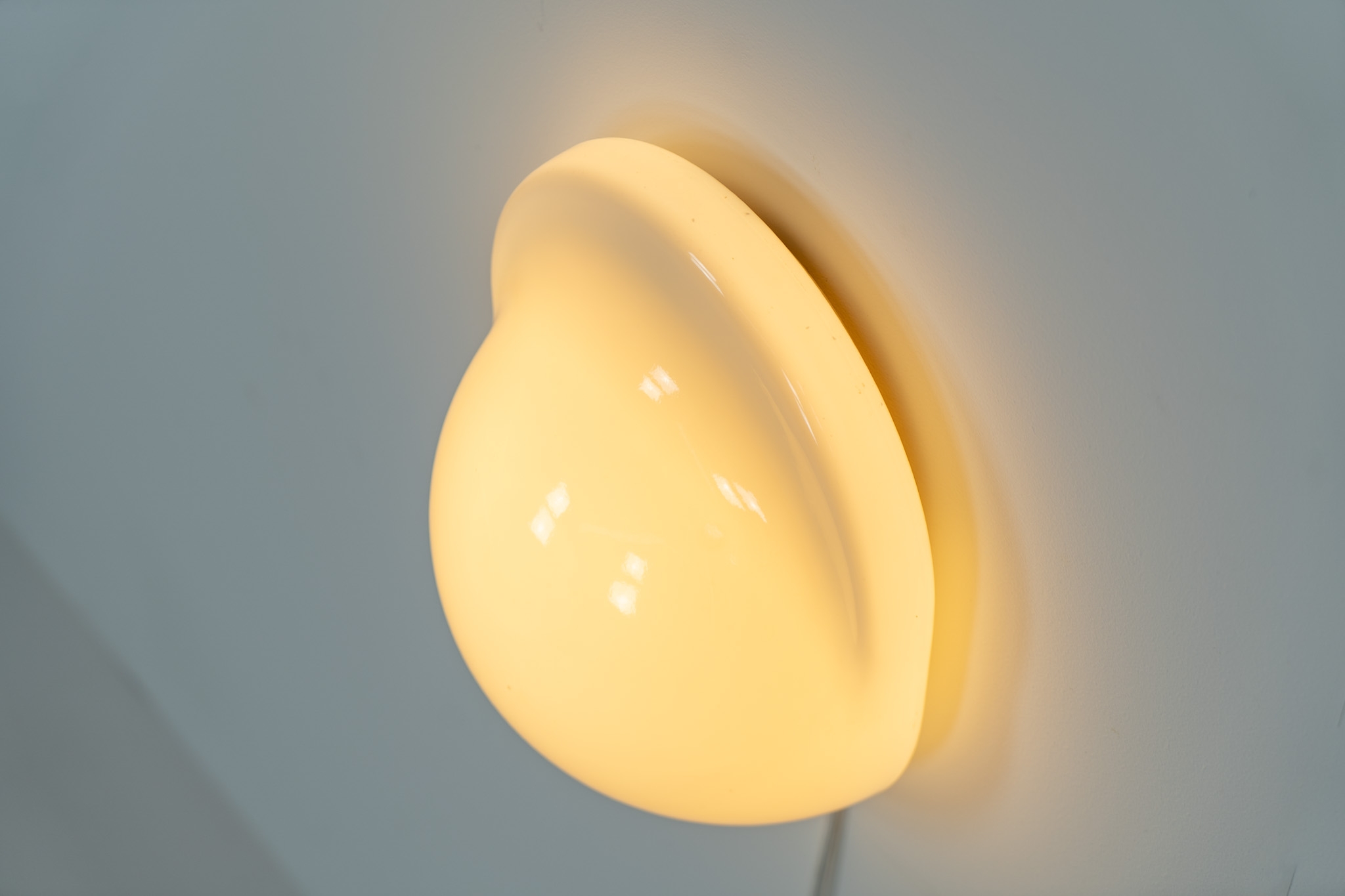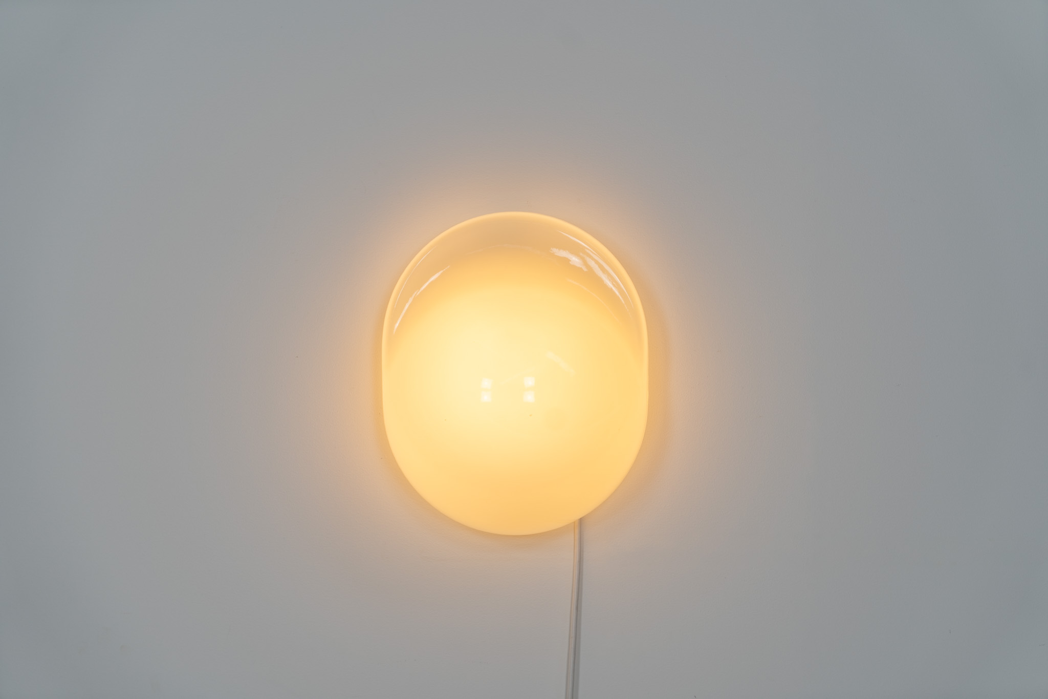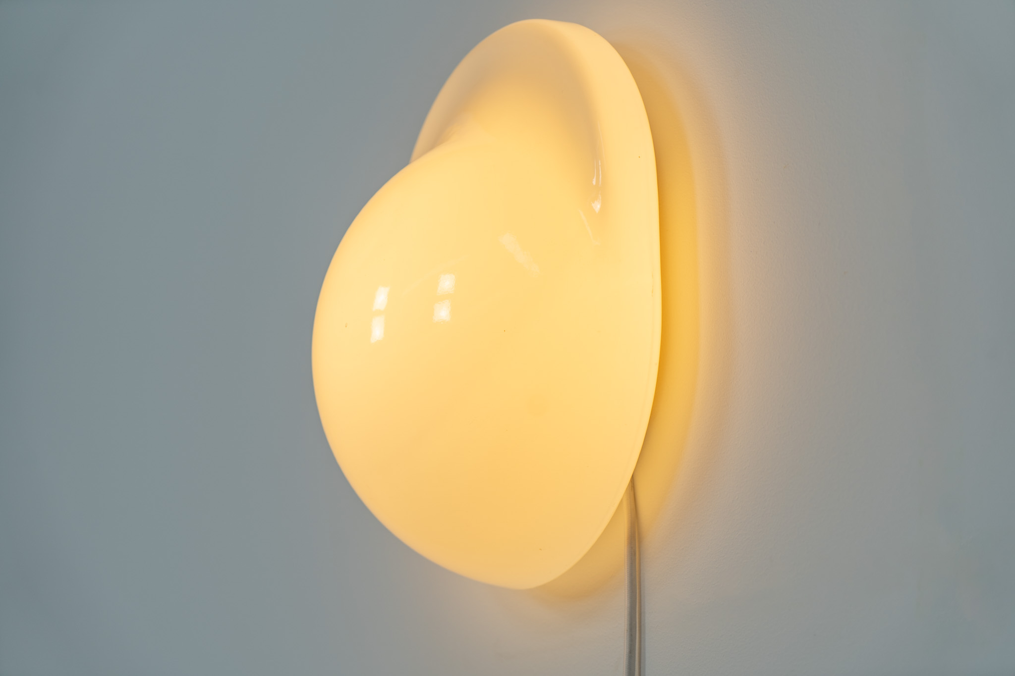 This glass wall lamp, which can also be used as a table lamp, has a remarkable design and gives a stunning light dispersion due to its shape. It can be turned on and off by pushing down the glass body.