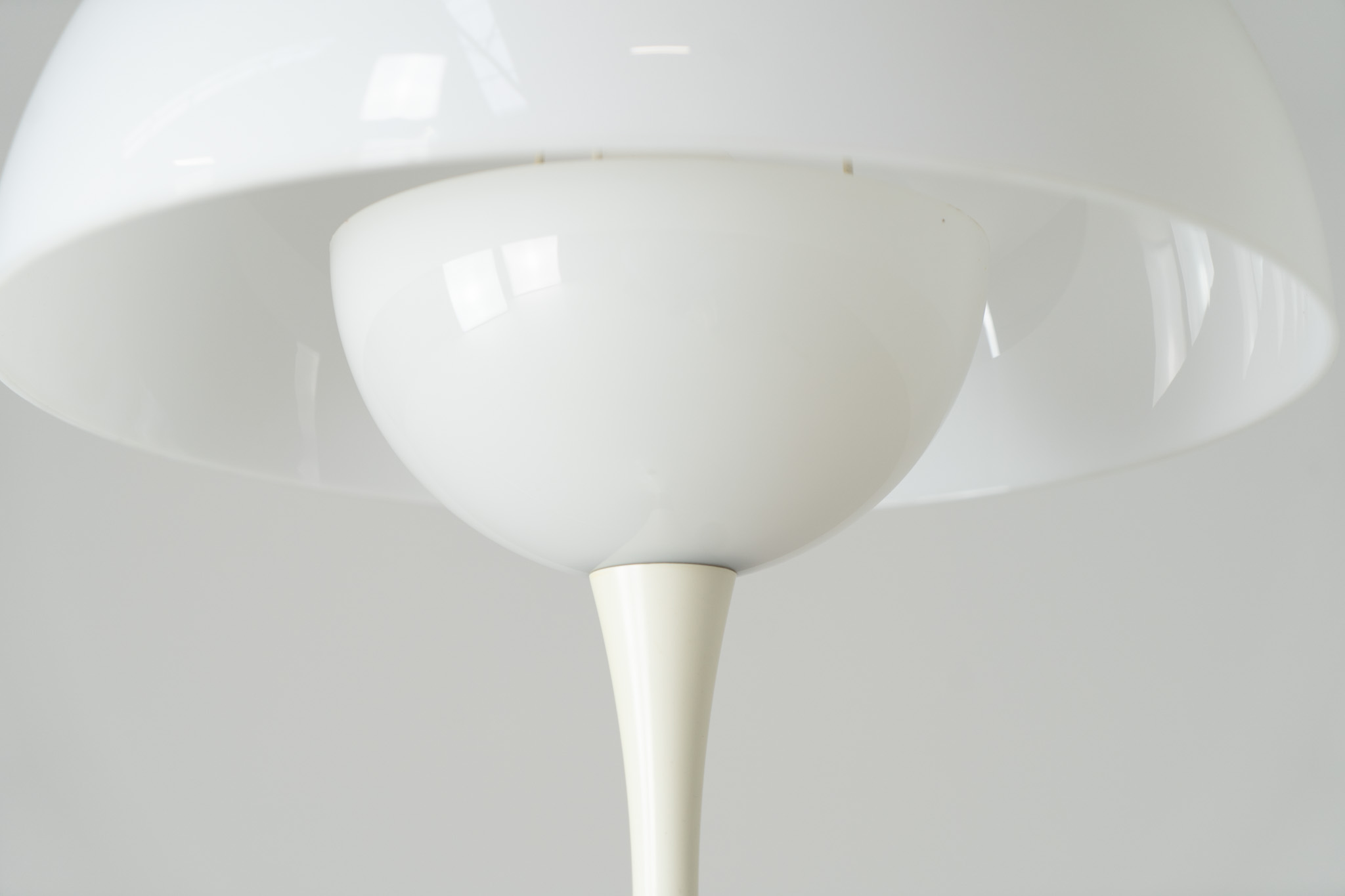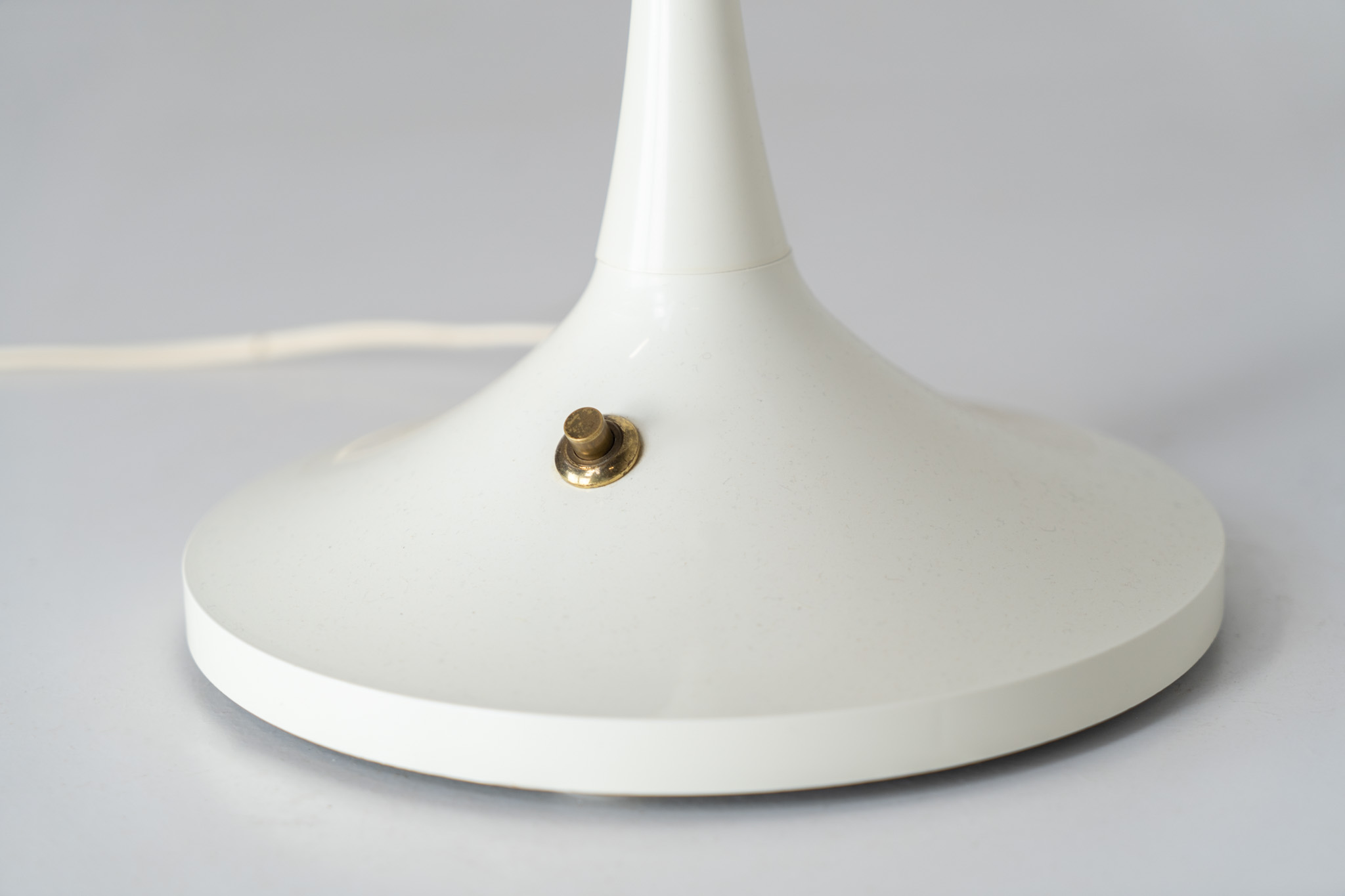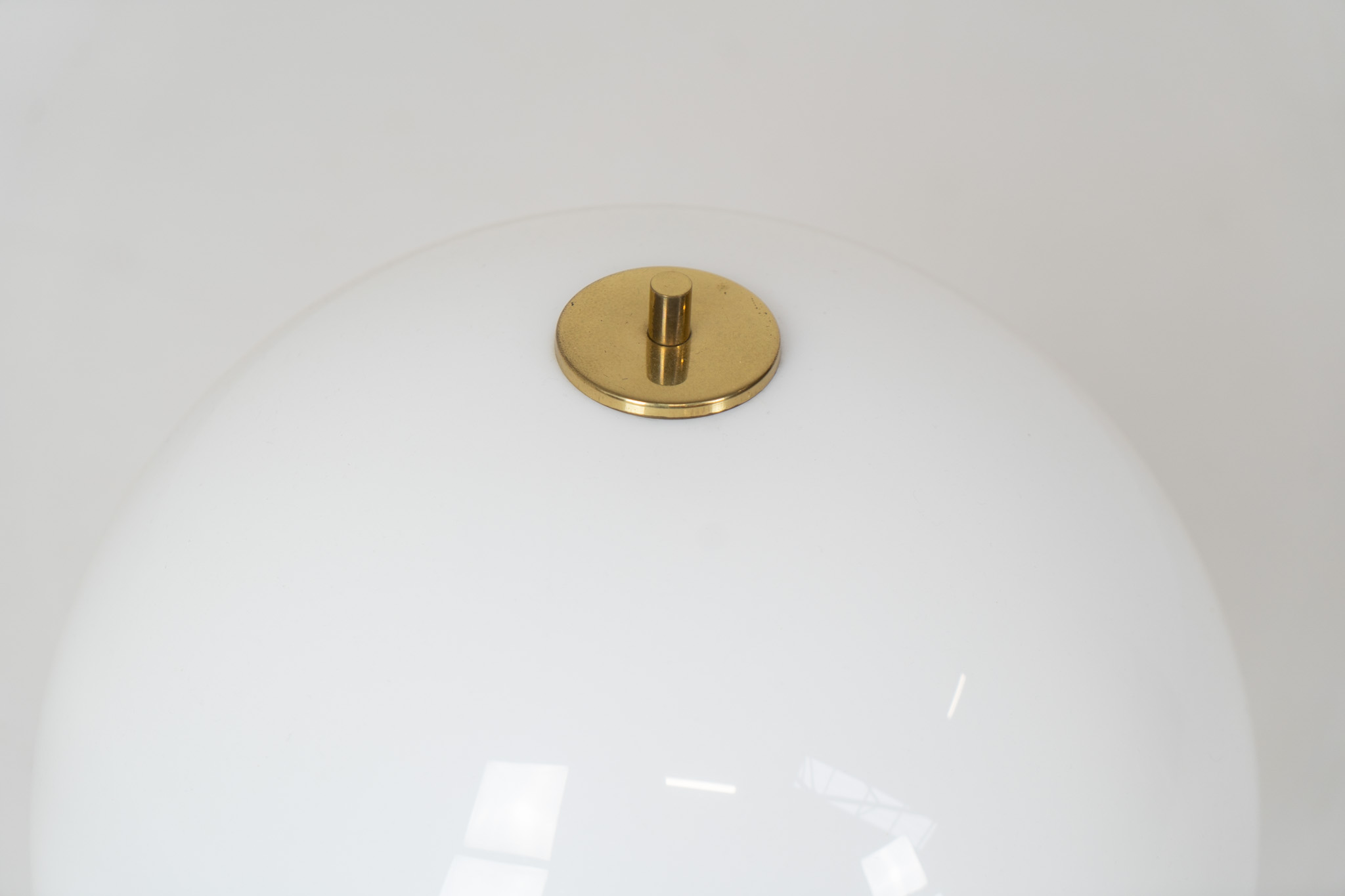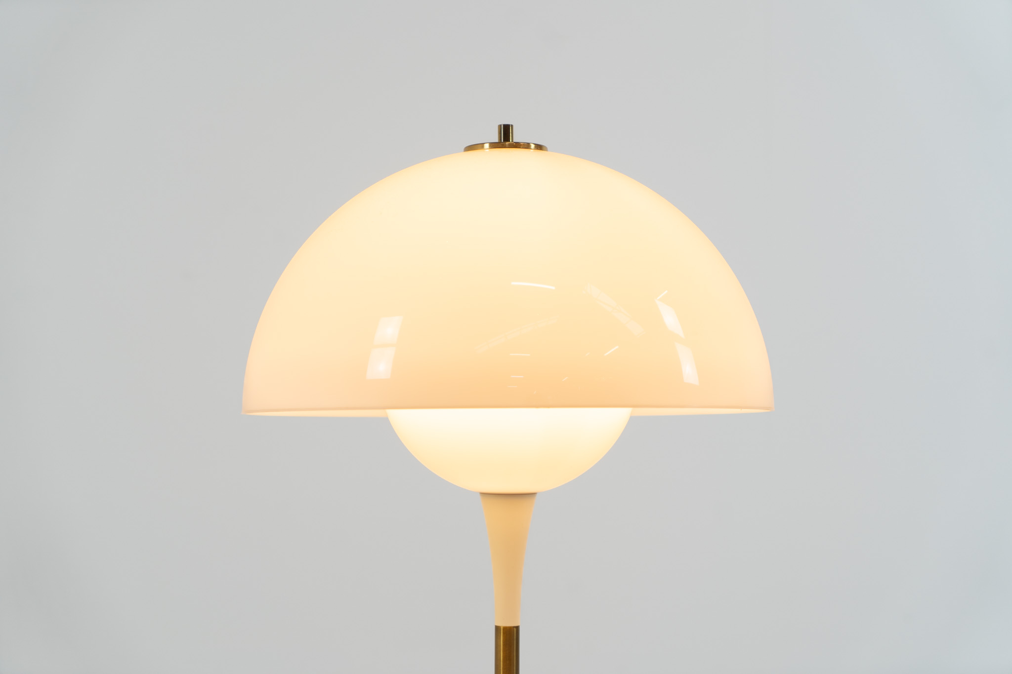 This beautiful mushroom lamp consists of two semicircular spheres that provide a soft and pleasant glow. It’s mainly white, finished with some brass details.